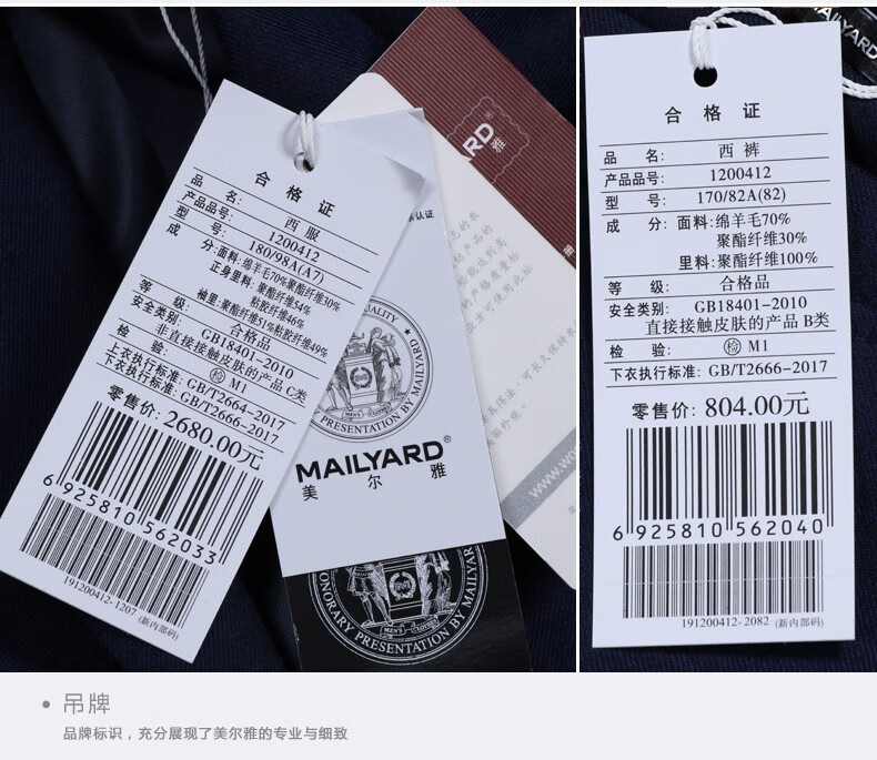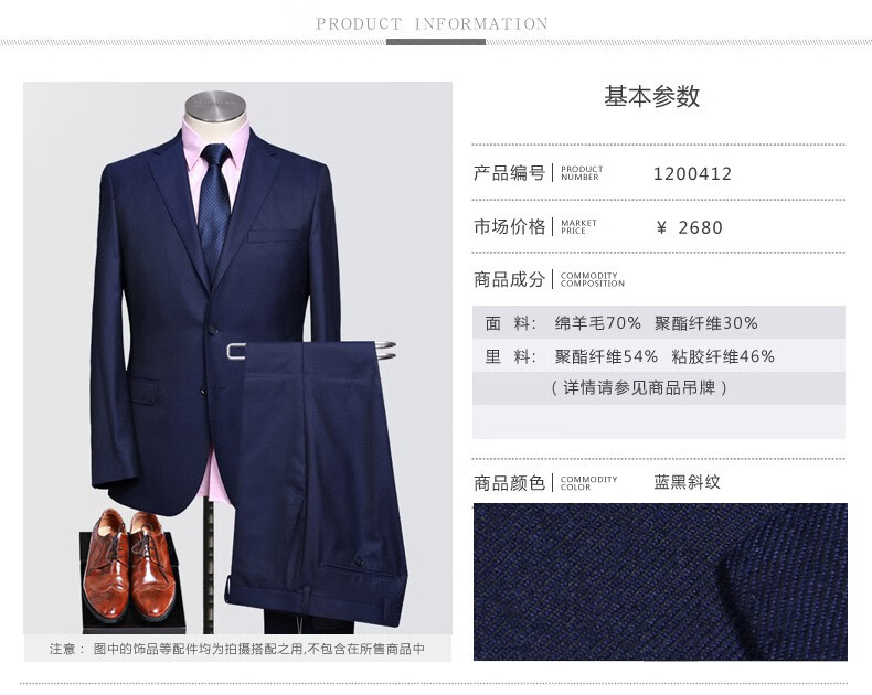 MAILYARD/Meierya suit wool business men's suit professional formal suit 412 blue and black twill 180B /AB7