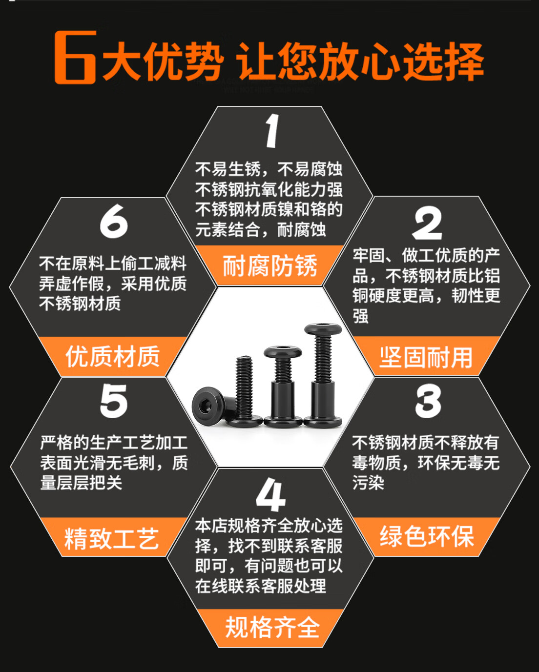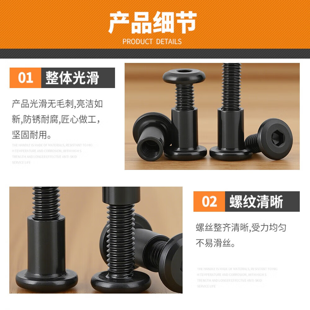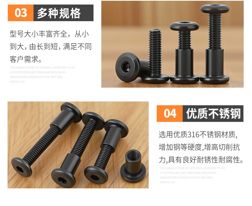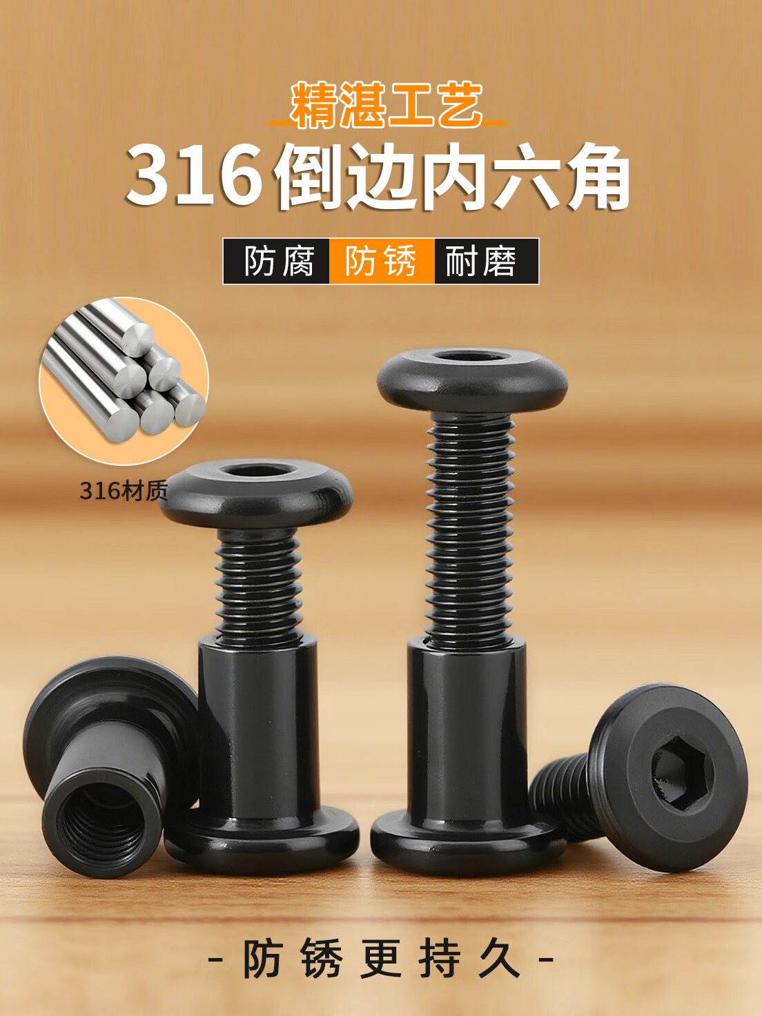 Xuanying Black 316 Stainless Steel Flat Head Beveled Hexagonal Screws Round Head Screws Bevel Bolts Nuts Furniture Screws M6*16 Screws + Nuts (2 Sets)