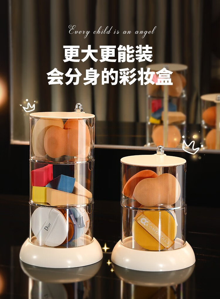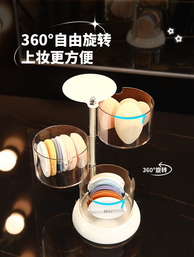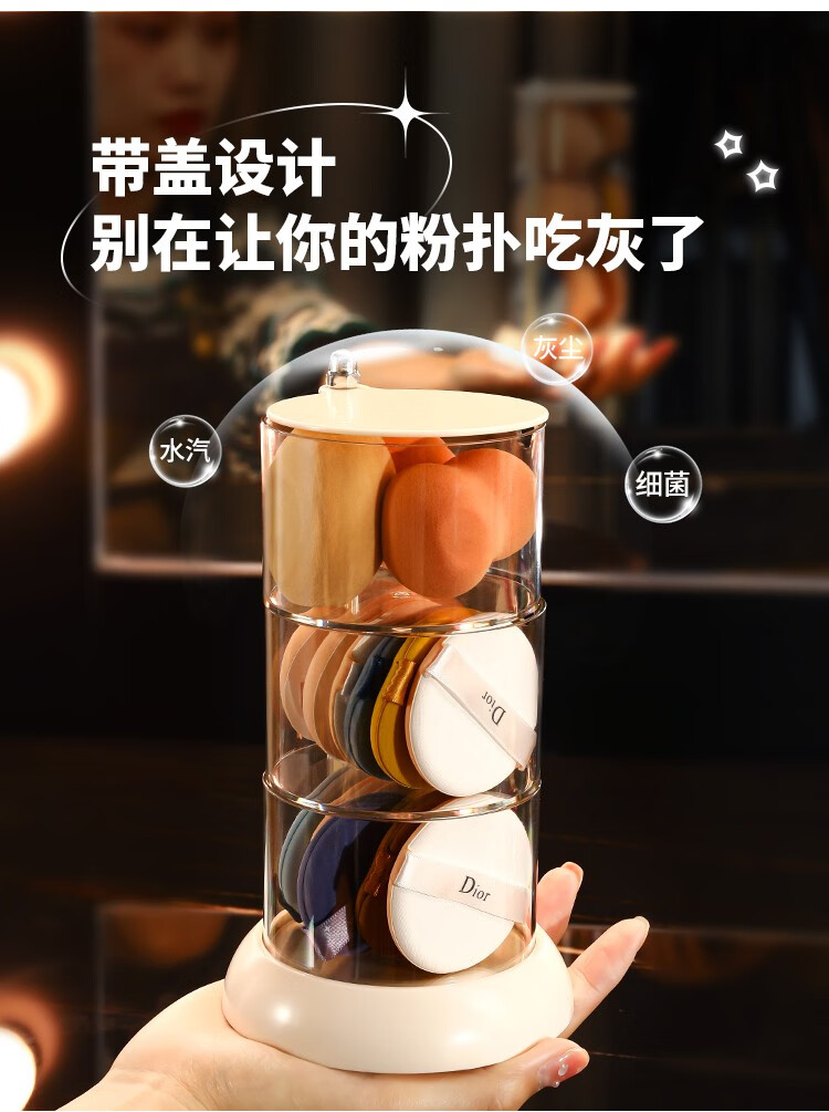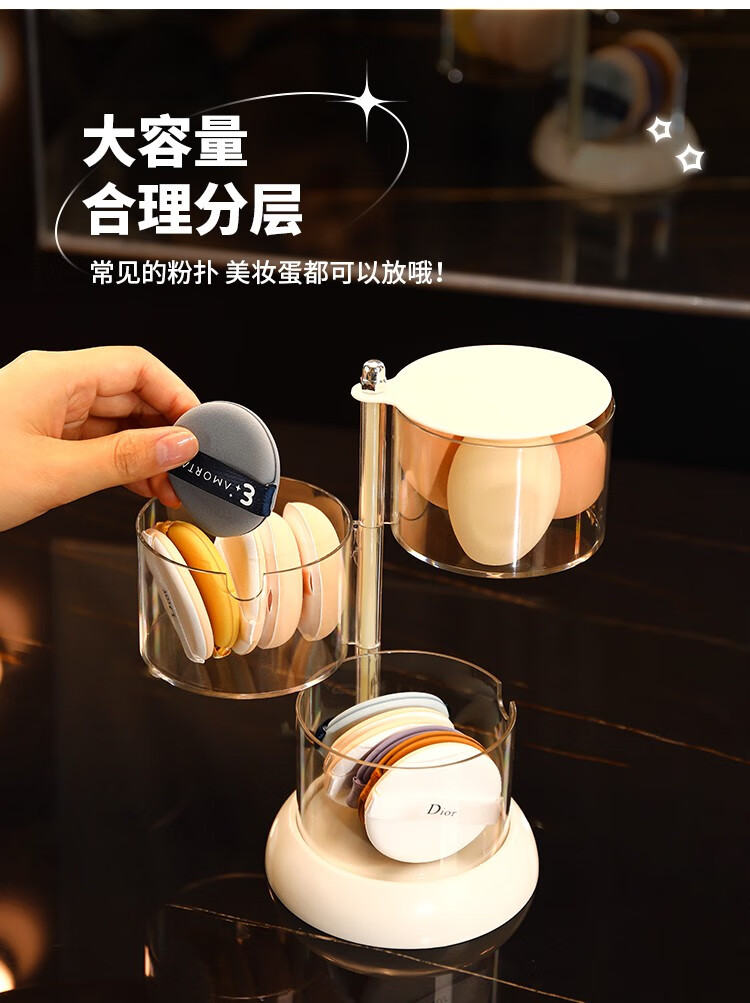 KAMAN powder puff storage box dust-proof multi-layer rotating cosmetic air cushion box makeup remover cotton transparent makeup egg storage shelf simple transparent color 360 free rotation 3 layers