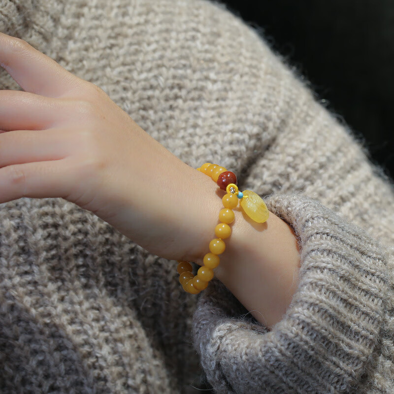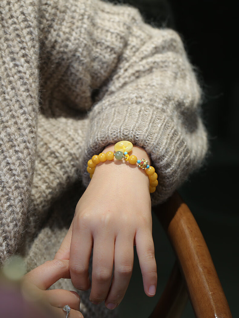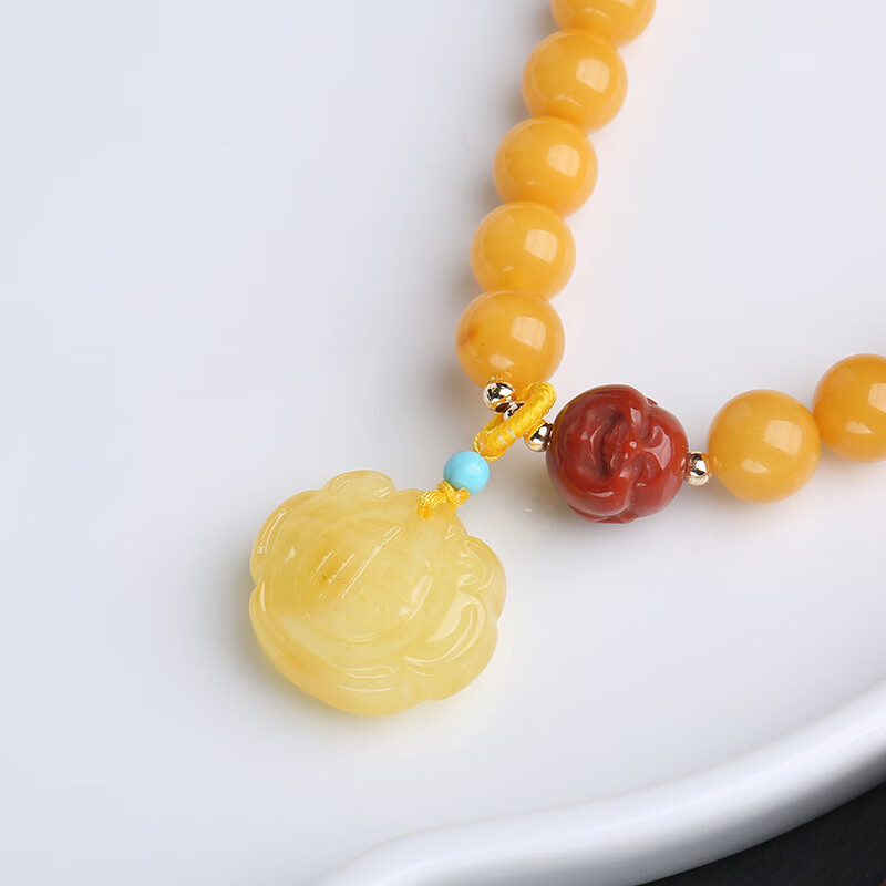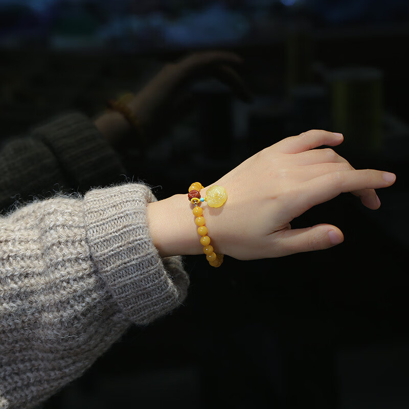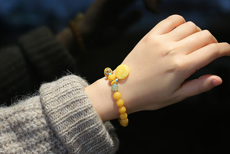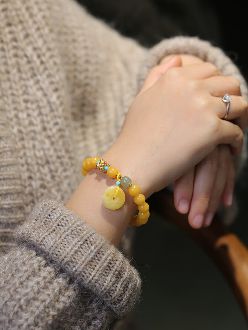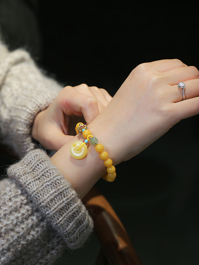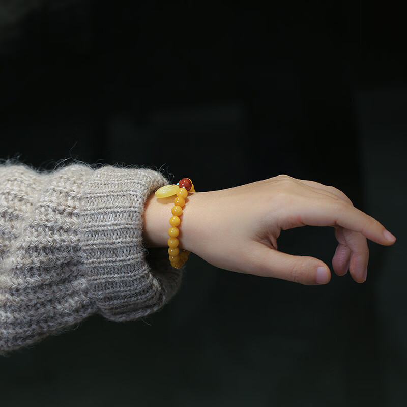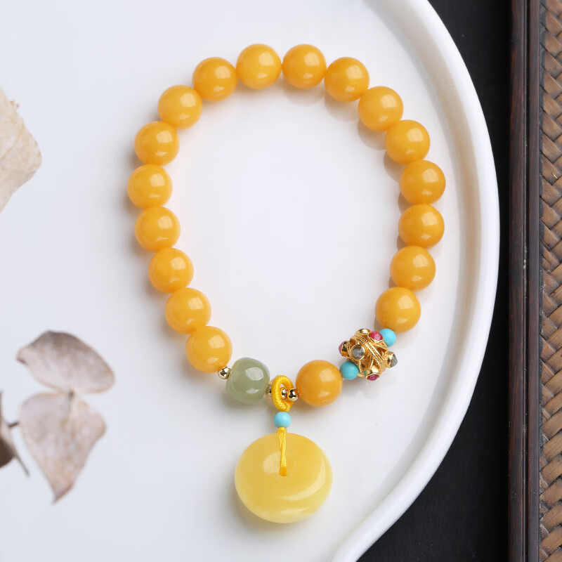 Longyin beeswax bracelet amber bracelet for women and men safety buckle turquoise with Hetian jade bucket beads birthday gift CS 8MM beeswax bracelet safety buckle