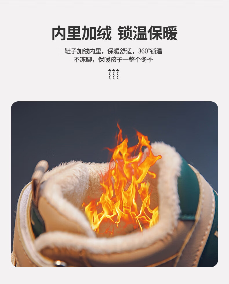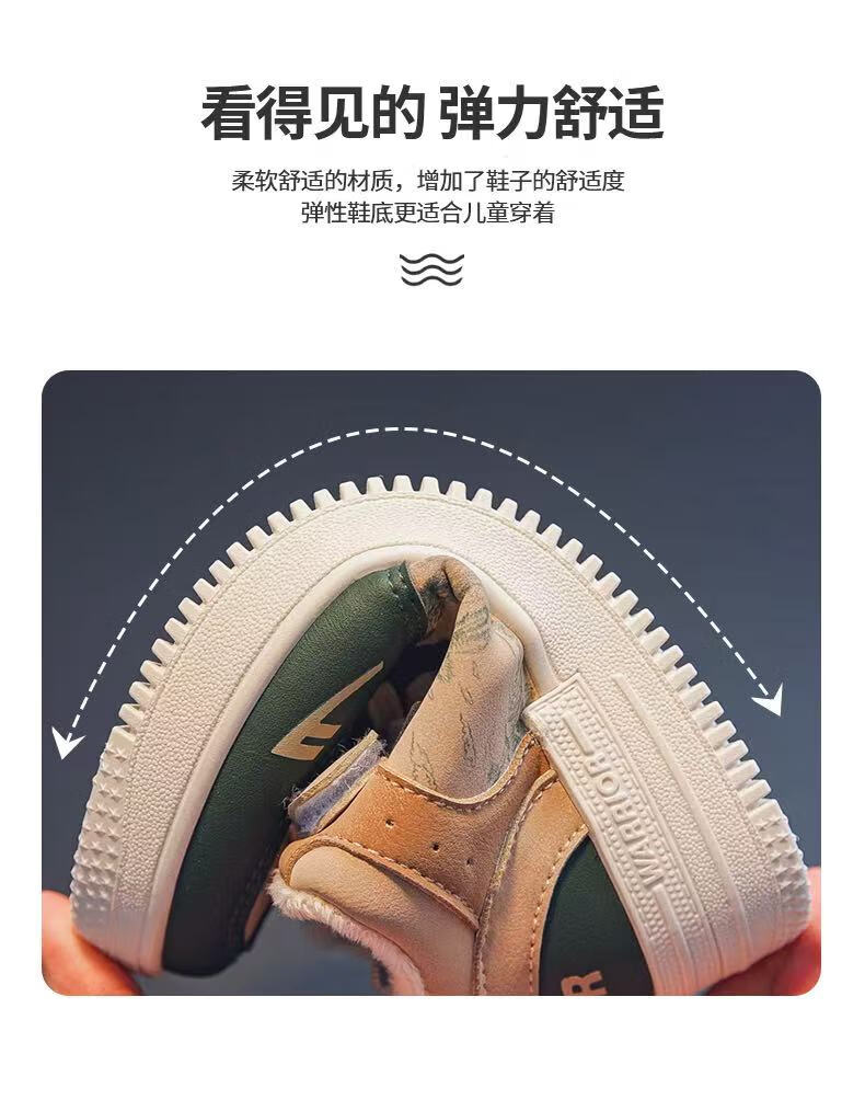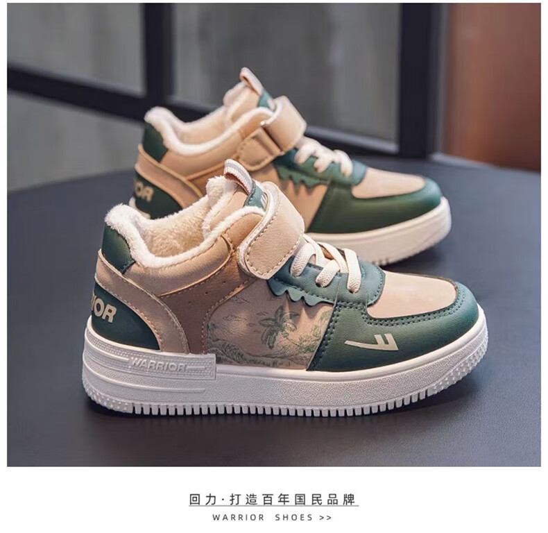 Huili children's shoes children's high-top cotton shoes 2025 winter new style boys' soft-soled warm cotton shoes plus velvet thickened cold-proof shoes plus velvet green -W552L 35 recommended foot length 21.0 inner length 22.0