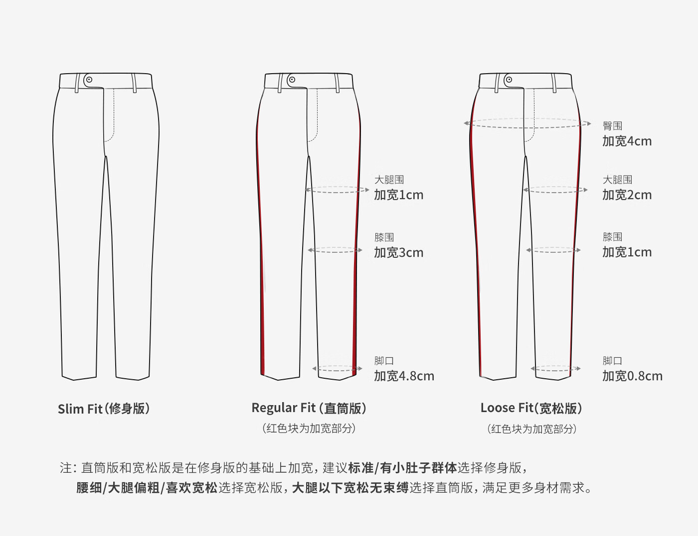 Outseam (cm) 99 cm 101.5 cm 104 cm 106.5 cm 109 cm
