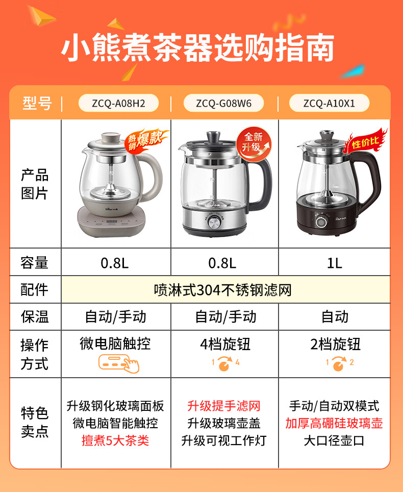 Bear tea kettle, tea kettle, health kettle, spray tea kettle, steam glass kettle, tea steamer, brewing tea, scented tea, black tea kettle, heat preservation integrated thermostatic kettle, microcomputer precise temperature control 0.8L