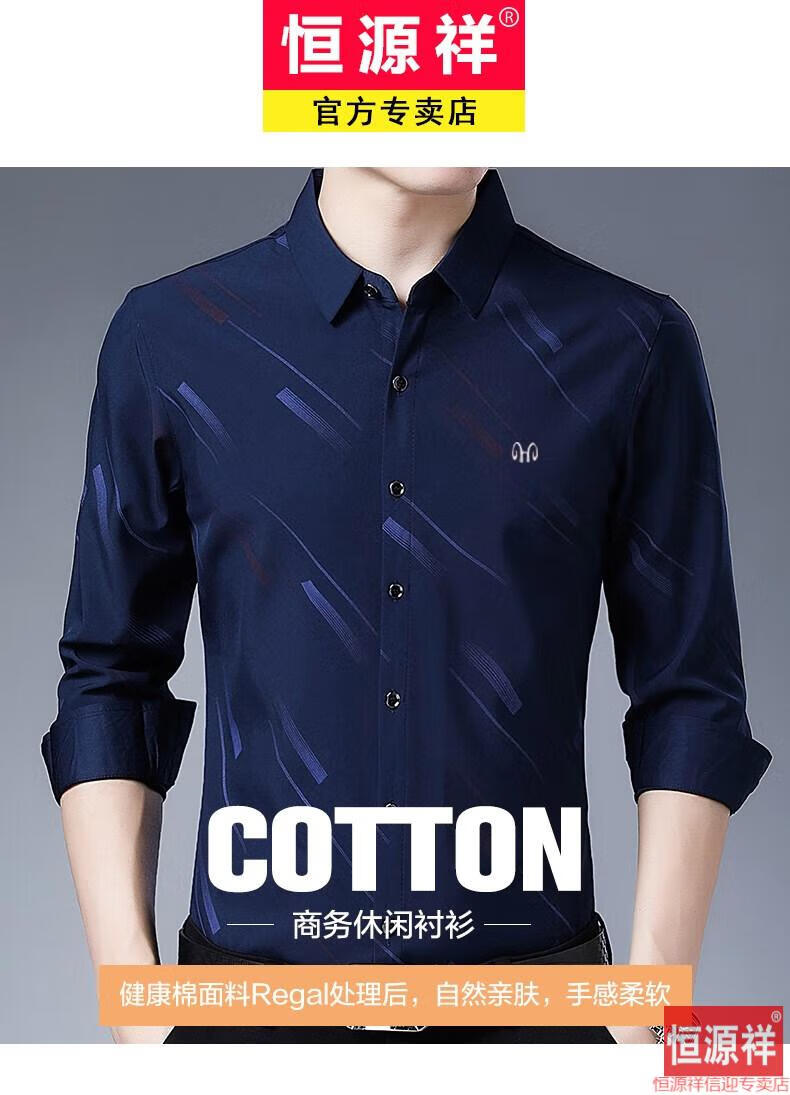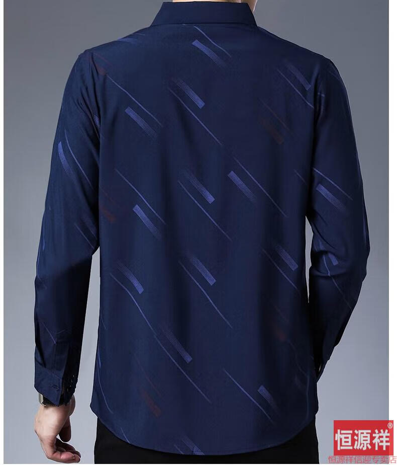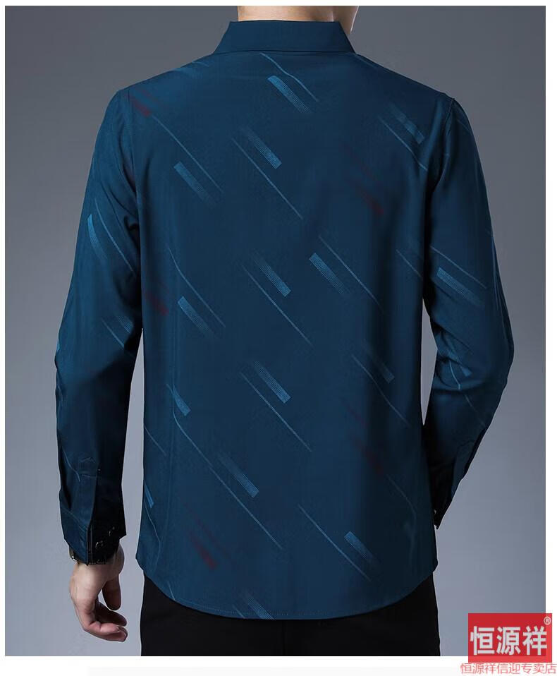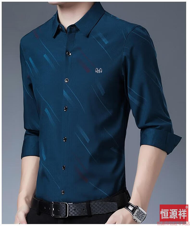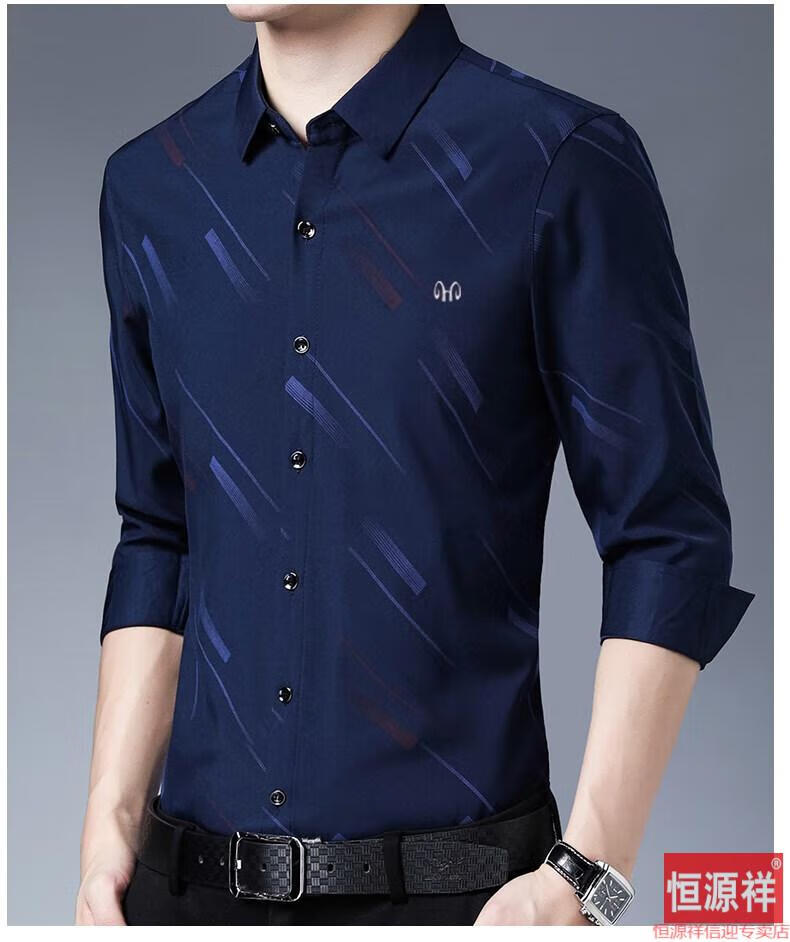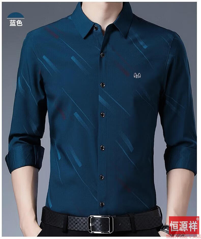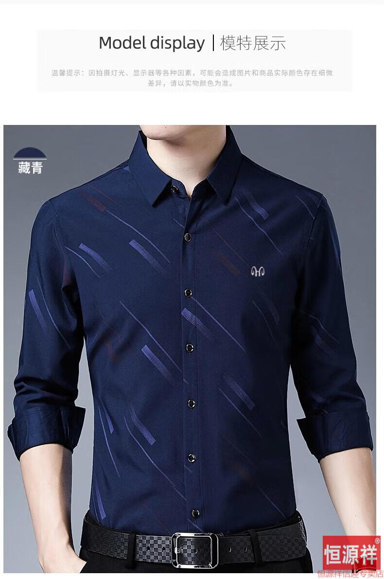 Hengyuanxiang brand high-end men's middle-long sleeve cotton shirt men's spring and autumn 2022 autumn shirt dad's warm shirt no ironing 170 Haqing thin section XH 175/XL recommended 135-150Jin Jin equals 0.5 kg