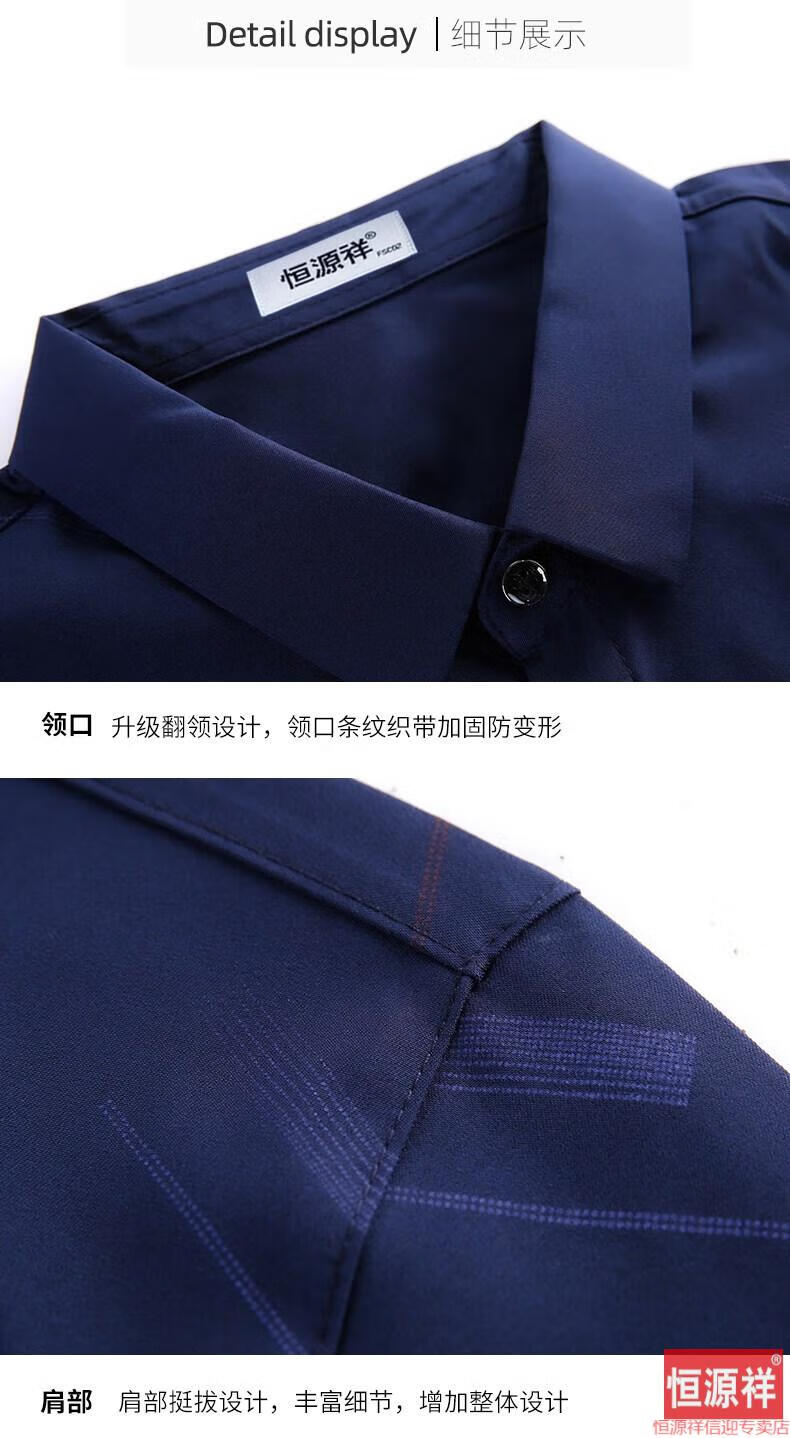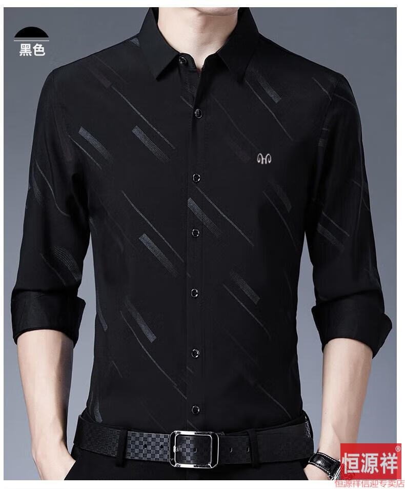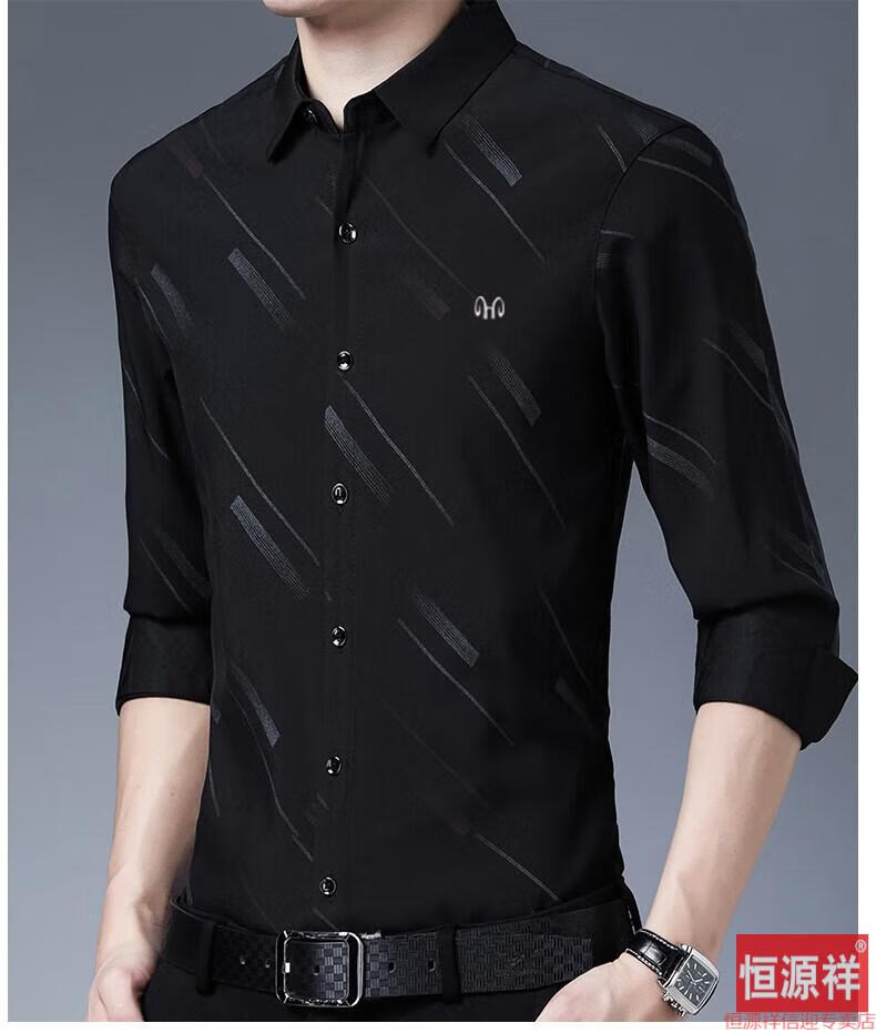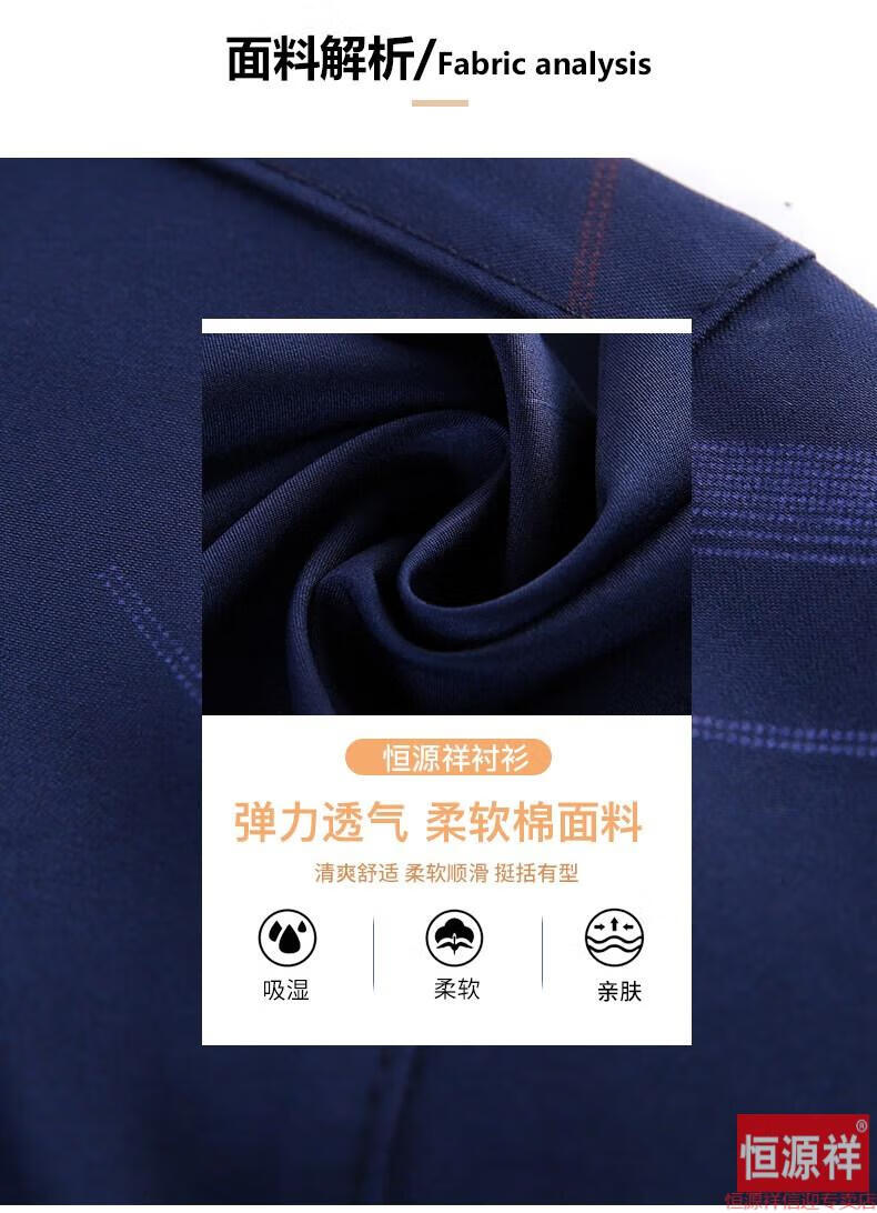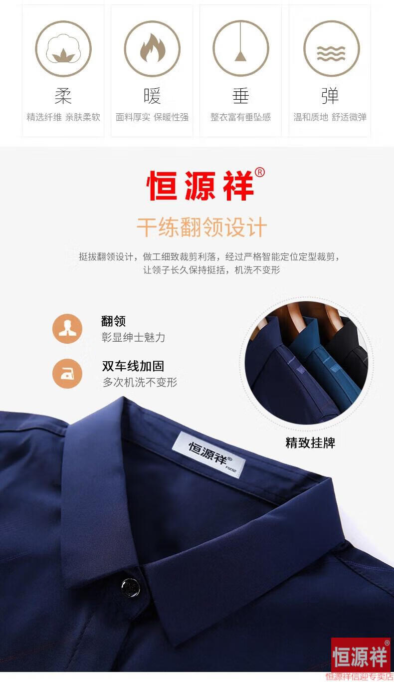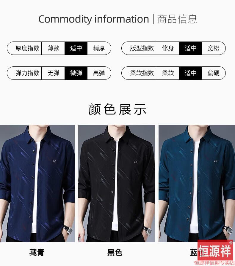 Hengyuanxiang brand high-end men's middle-long sleeve cotton shirt men's spring and autumn 2022 autumn shirt dad's warm shirt no ironing 170 Haqing thin section XH 175/XL recommended 135-150Jin Jin equals 0.5 kg