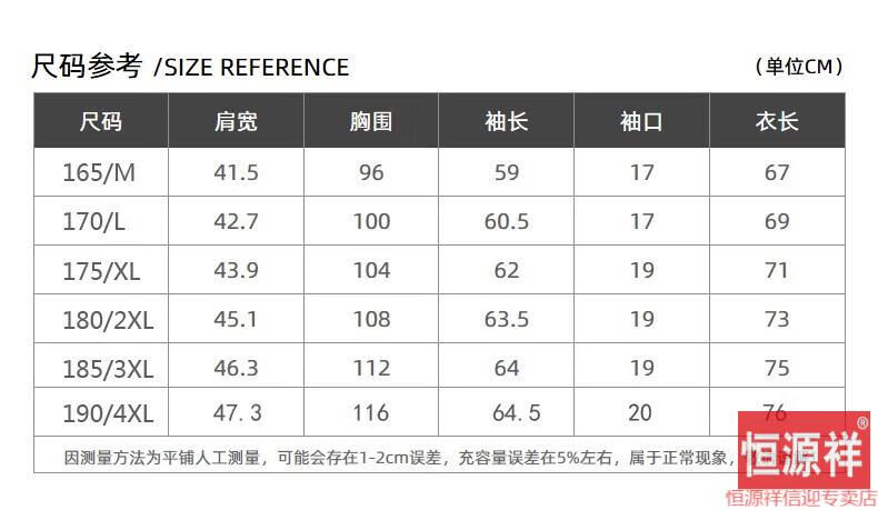 China (cm) 165 / 88-90 170 / 96-98 175 / 108-110 180 / 118-122 185 / 126-130