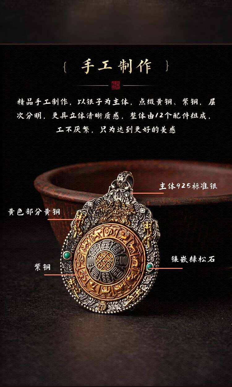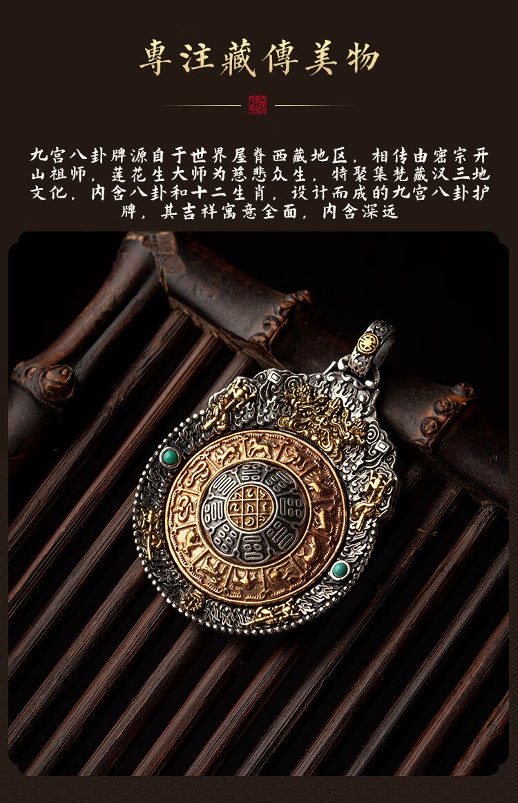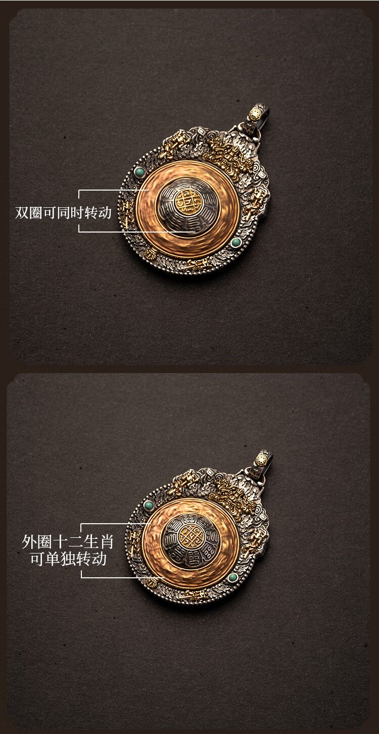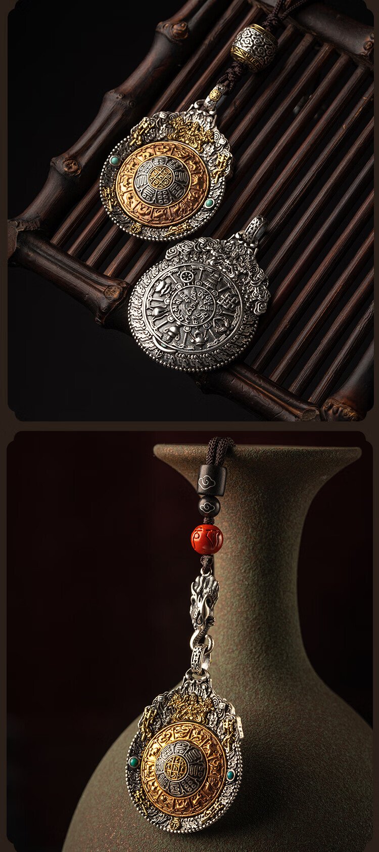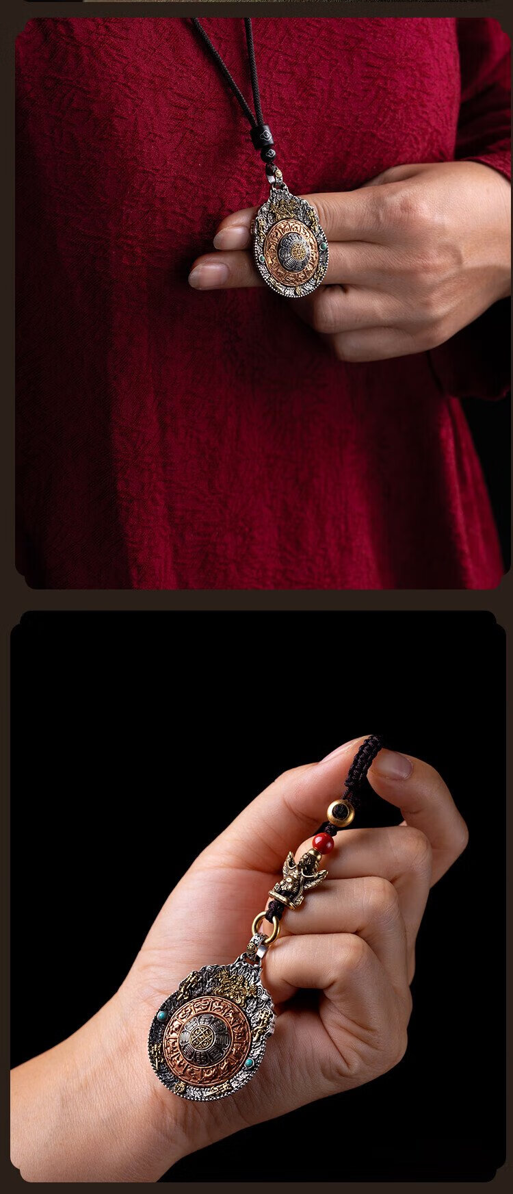 Tibetan Hanwu Tibetan Anemone Master Manjusri Nine Palaces Bagua Card Zodiac Year Necklace Pendant Good Luck Key Pendant Rotating Men and Women Dapeng Garuda Keychain (ZT)