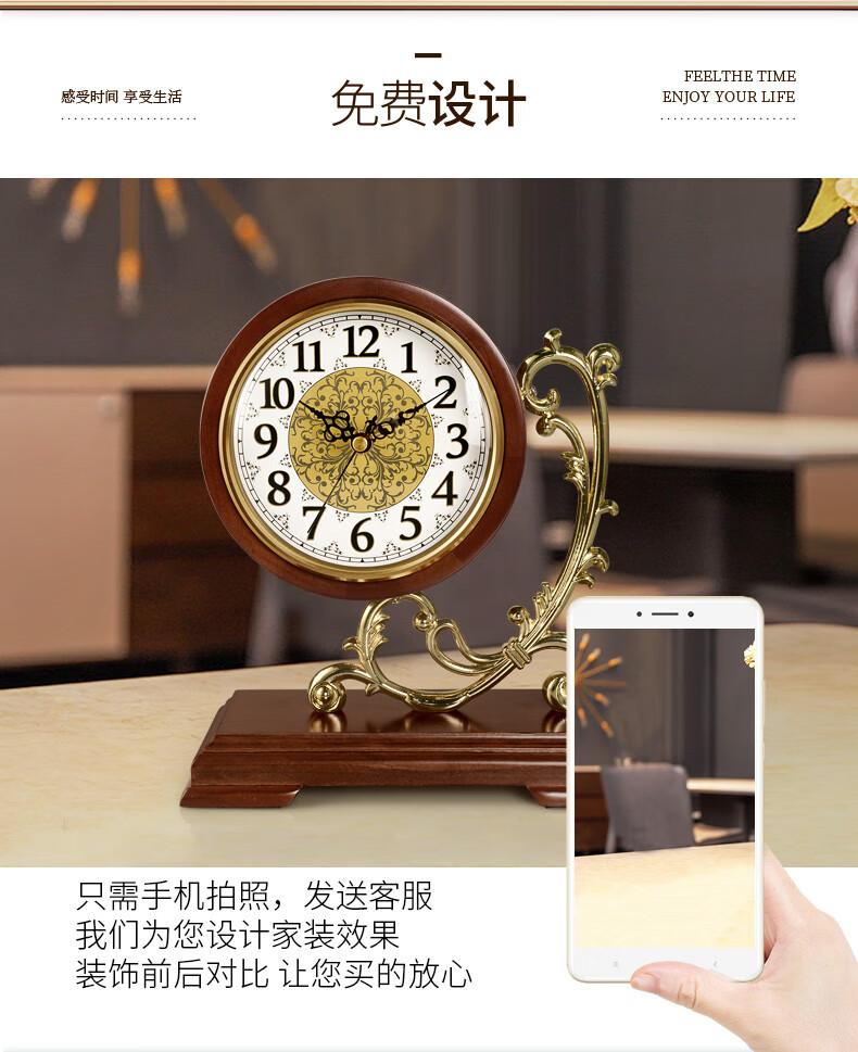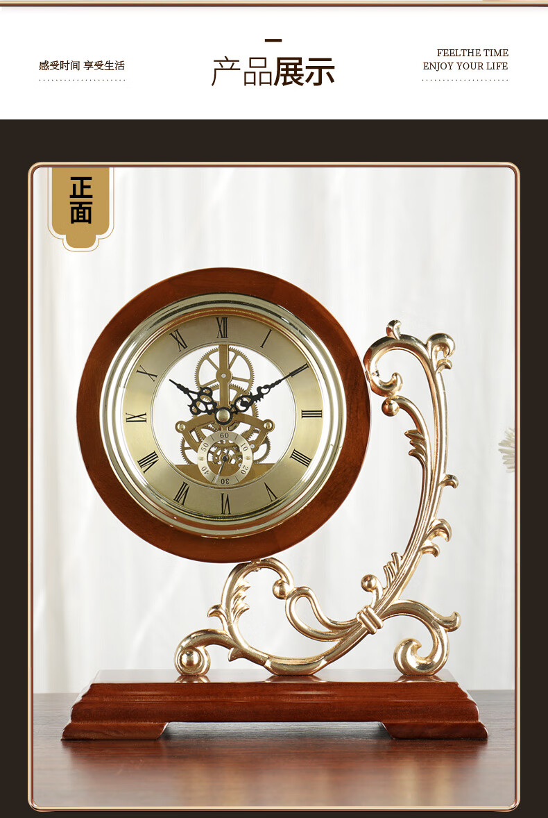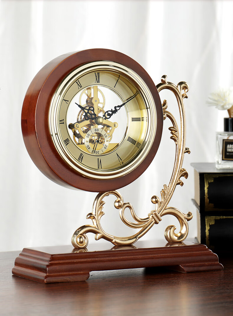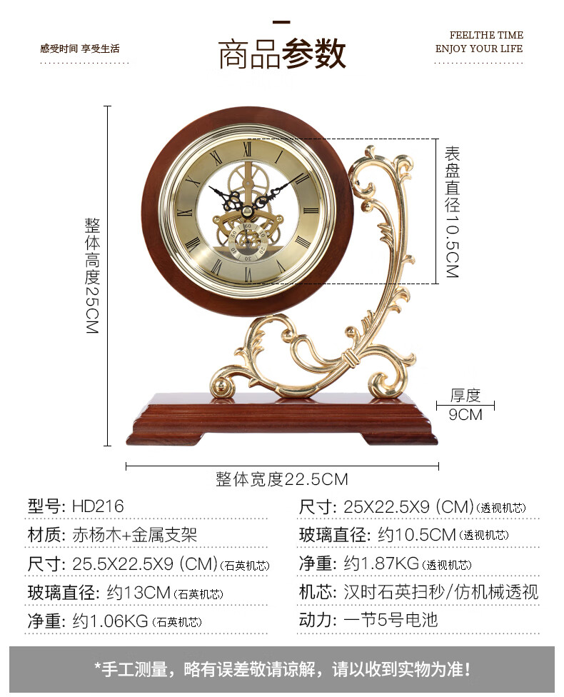 Hanshi (Hense) Living Room Desktop Clock Classical Creative Decoration Quartz Clock Study Desktop Clock Solid Wood Ornament Desk Clock HD216 Solid Wood + Perspective Movement