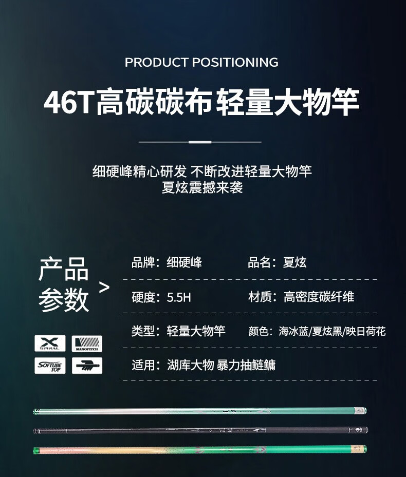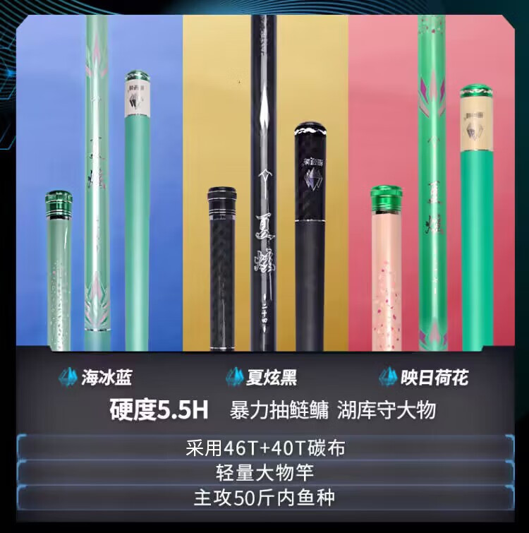 Thin Hard Peak Xia Xuan lightweight large fishing rod silver carp and bighead carp large comprehensive rod 46T high carbon ultra-light ultra-hard hand rod 6.3m (sea ice blue)