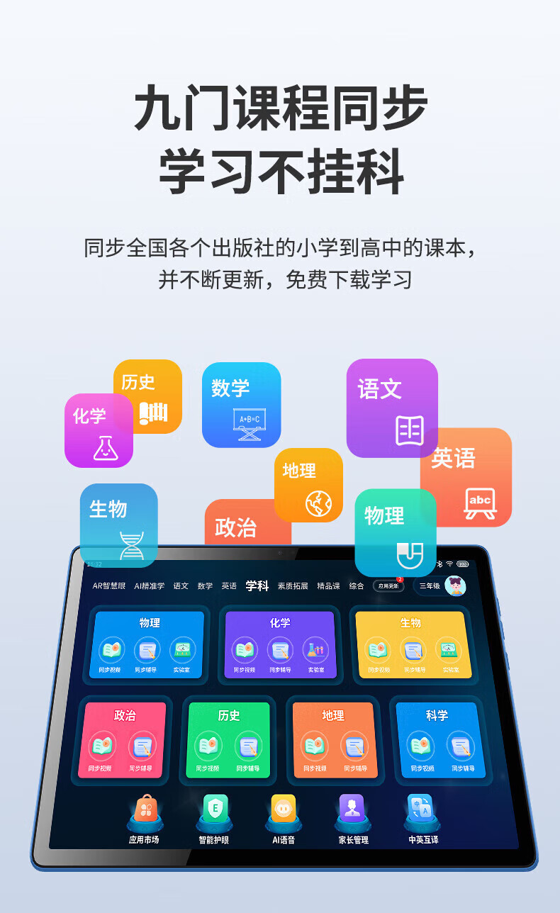 Love 100% resources for free learning, eye-protecting learning machine, student tablet, English reading for elementary school, junior high school and high school synchronous textbook, children's early education reading machine, tutoring machine, eye-protecting large screen, 10.36 inches, true eight-core + dual system + full subject synchronization + controllable