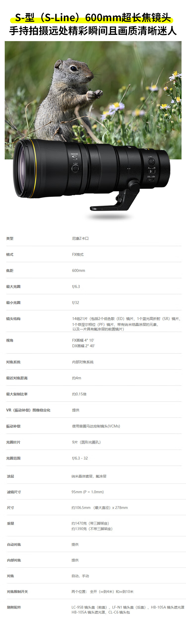 Nikon NIKKOR Z mount telephoto lens Z 600 f 4 TC VR S official standard