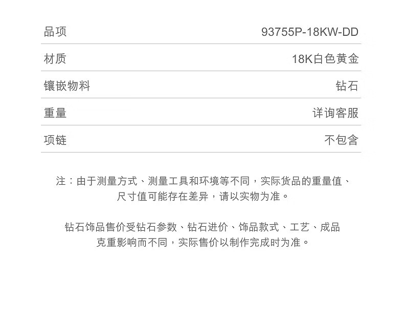 Chow Sang Sang Diamond Pendant Ode to Diamond Series 18K Gold Ode to Eternity Pendant without Chain 93755P 18K/Main Stone 14 Points/H Color/VS Clarity
