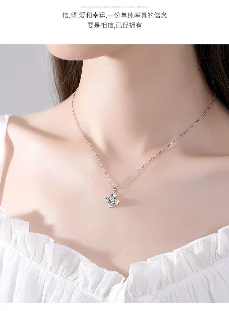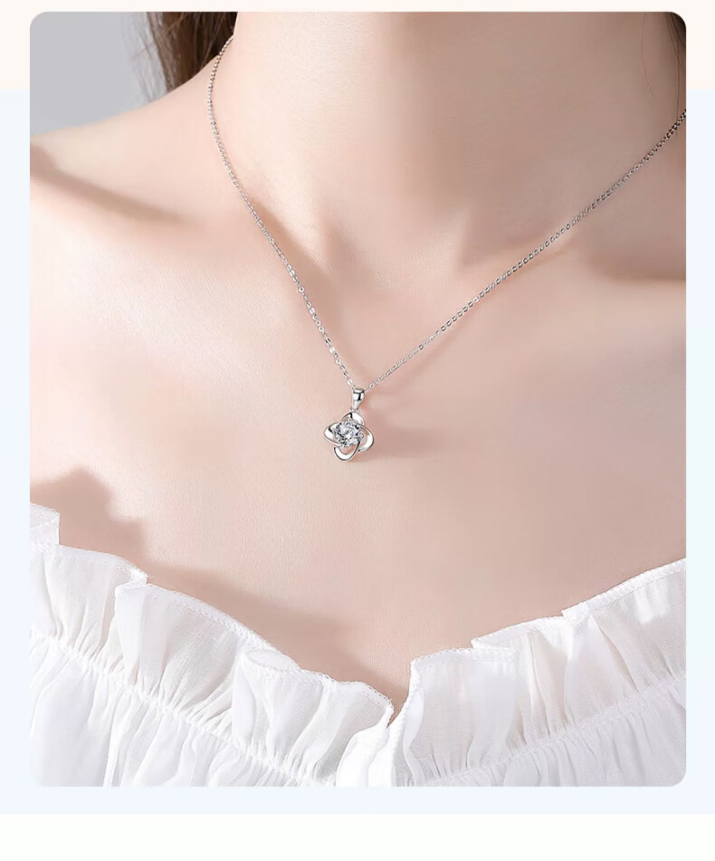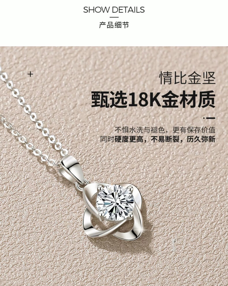 CHINA GOLD 18K gold four-leaf clover necklace for women platinum diamond pendant clavicle chain Valentine's Day practical birthday gift for wife 18K gold pendant free silver snowflake chain