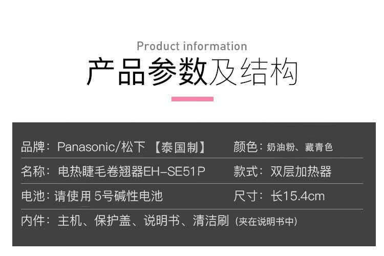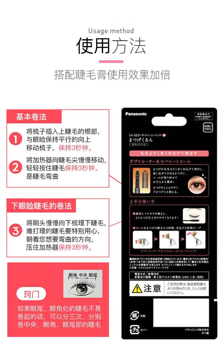 Panasonic Japan Direct Mail Electric Eyelash Curler EH-SE Series Electric Perm Eyelash Curler Styling Eyelashes Natural Curl Electric Perm Styling Sticky Eyelash Curler Cream Powder EH-SE51-P Individual Curl
