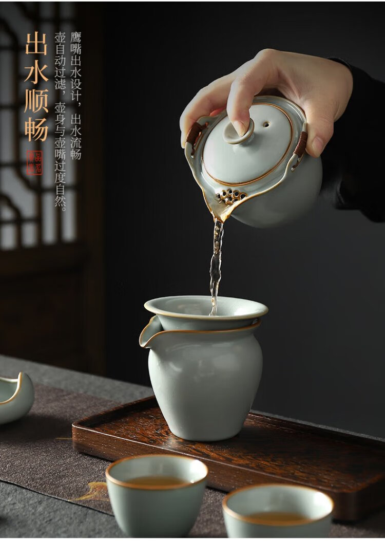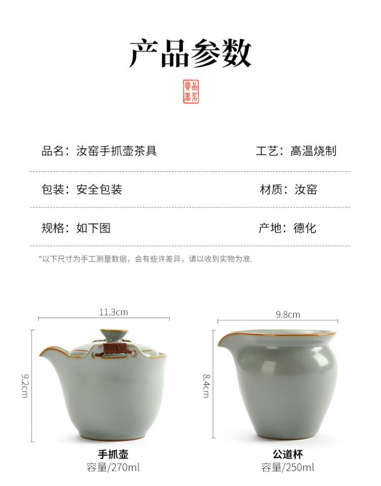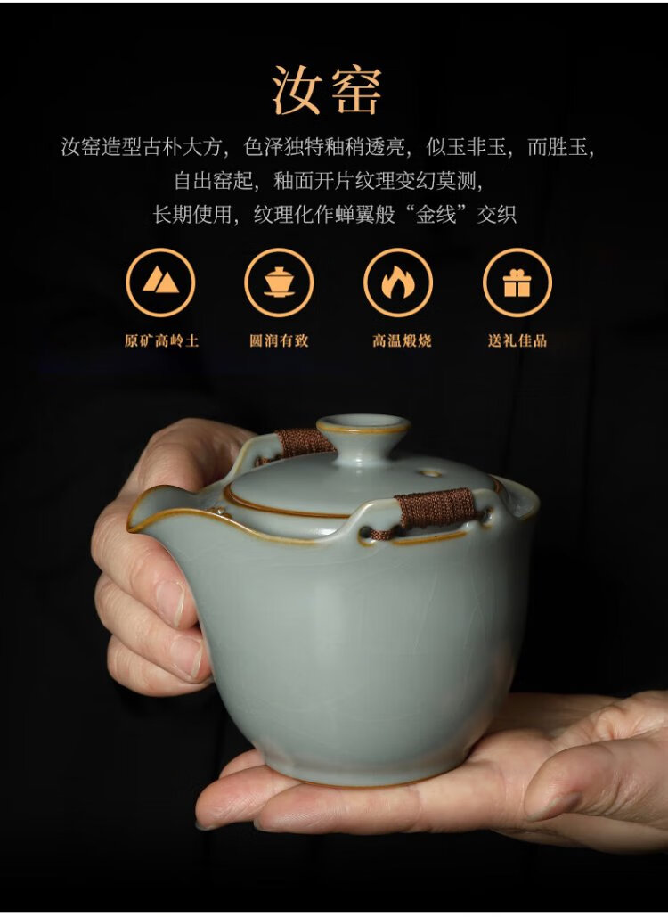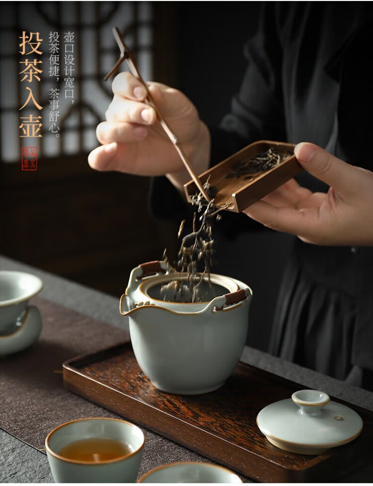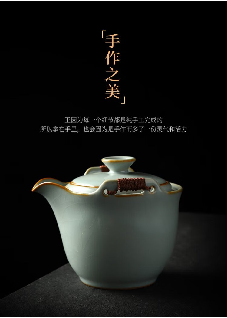 Dongmingtang Ru kiln hand holding pot anti-scalding ceramic teapot single pot large capacity kung fu tea set teacup set teapot for home use Ru kiln hand holding pot (single pot 1) simple package 270ml