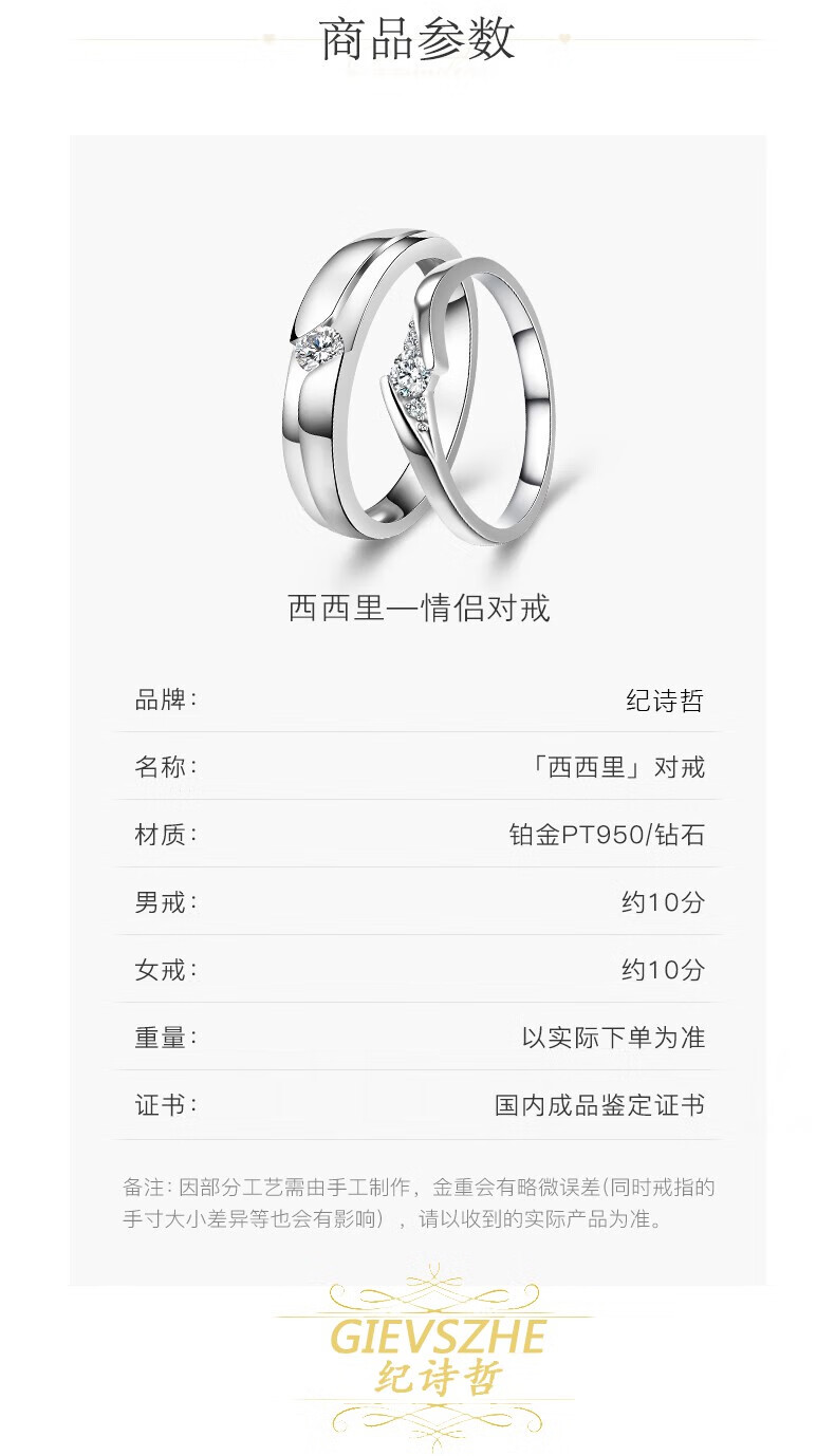 Ji Shizhe Pt950 platinum diamond ring platinum diamond ring for a couple, birthday and Valentine's Day gift for wife, a pair of platinum rings, please note the ring number or contact customer service