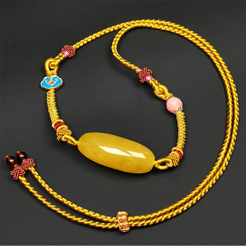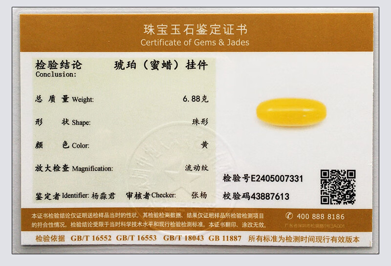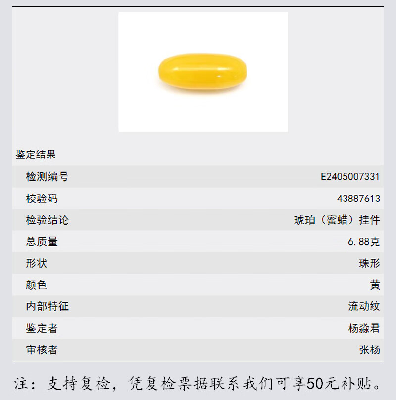 Amber School, one object, one picture, one certificate, beeswax pendant bucket beads, natural amber pendant, Russian chicken fat yellow, no cracks, pendant 6.88g 39*16mm