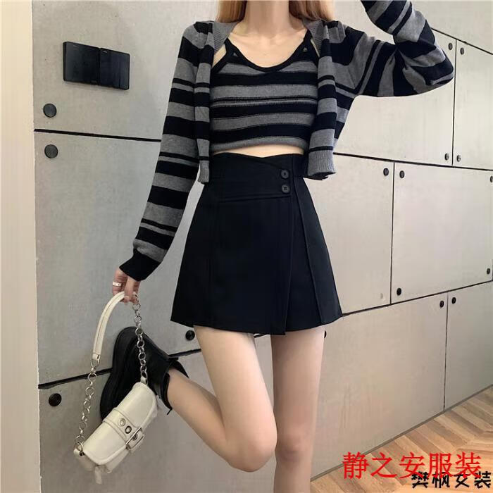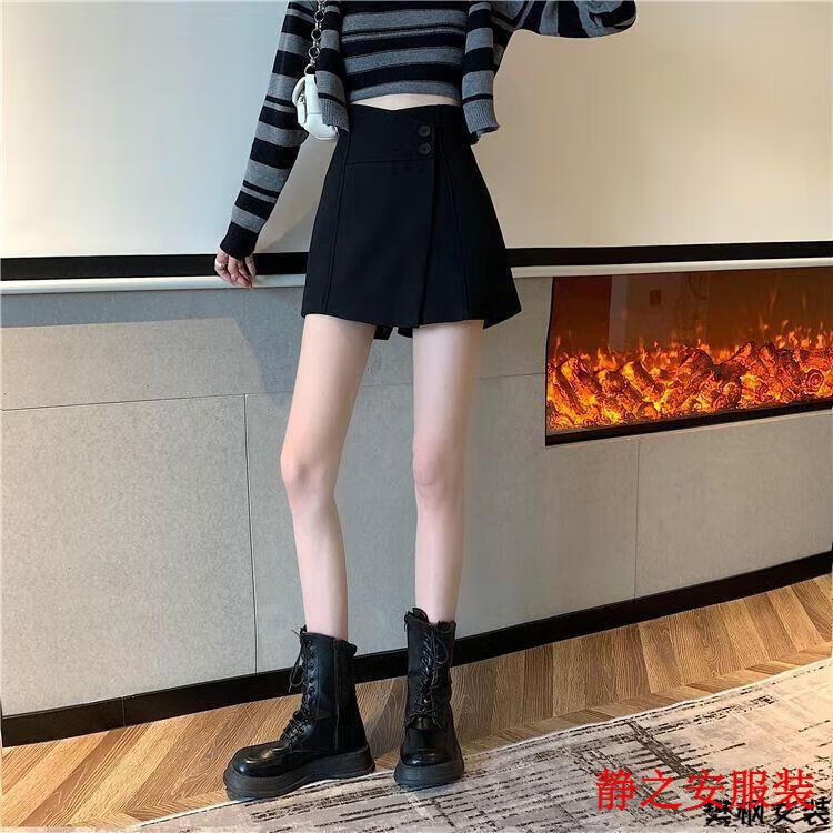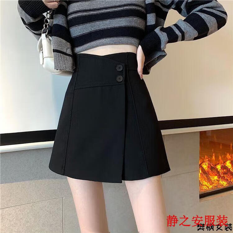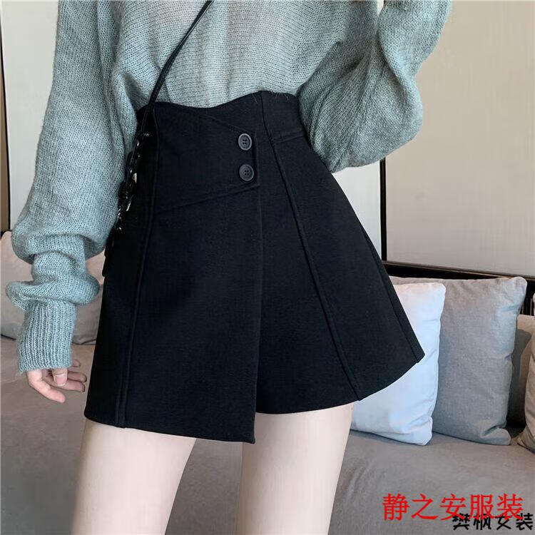 Ma Feixuan Shorts Women's Autumn and Winter New High Waisted Wide Legs A-line Outer Wear Versatile Slim Bottoming Boot Pants Bottoming Outer Wearing Skirts Shorts (6215 Black) M 90-100Jin Jin is equal to 0.5 kg