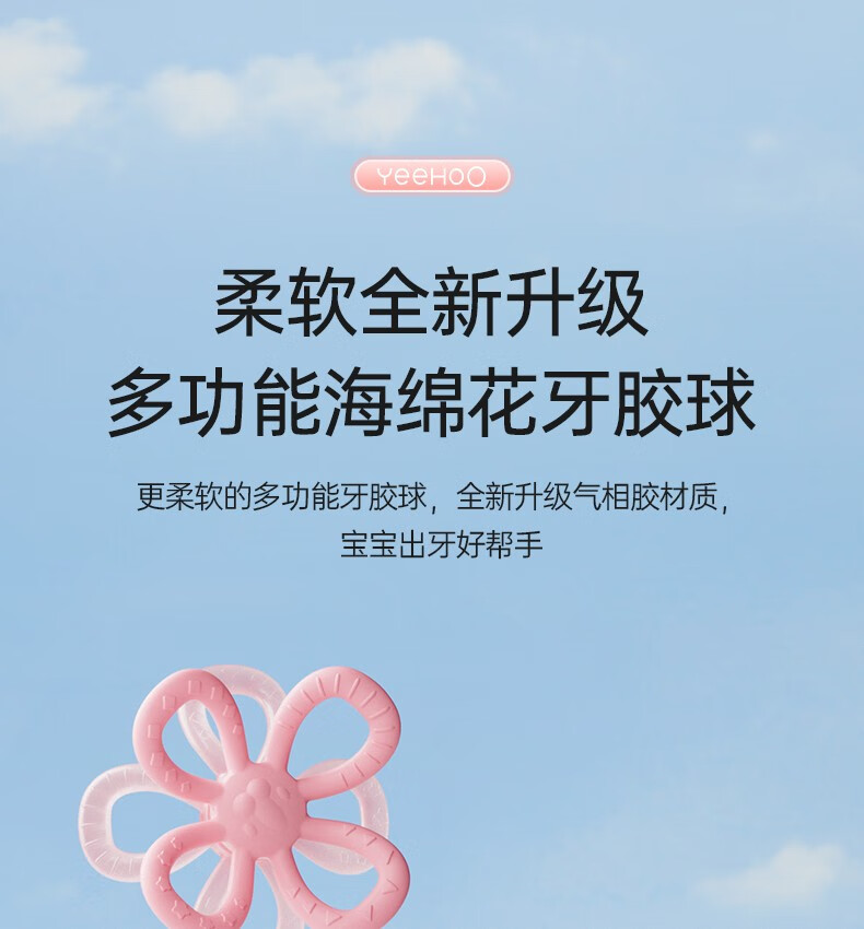 YEEHOO teether baby anti-eating hand artifact baby can chew teether oral baby can chew silicone rubber baby toy pink (single)