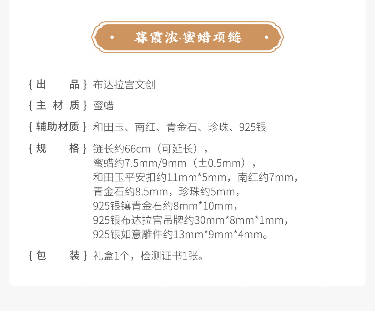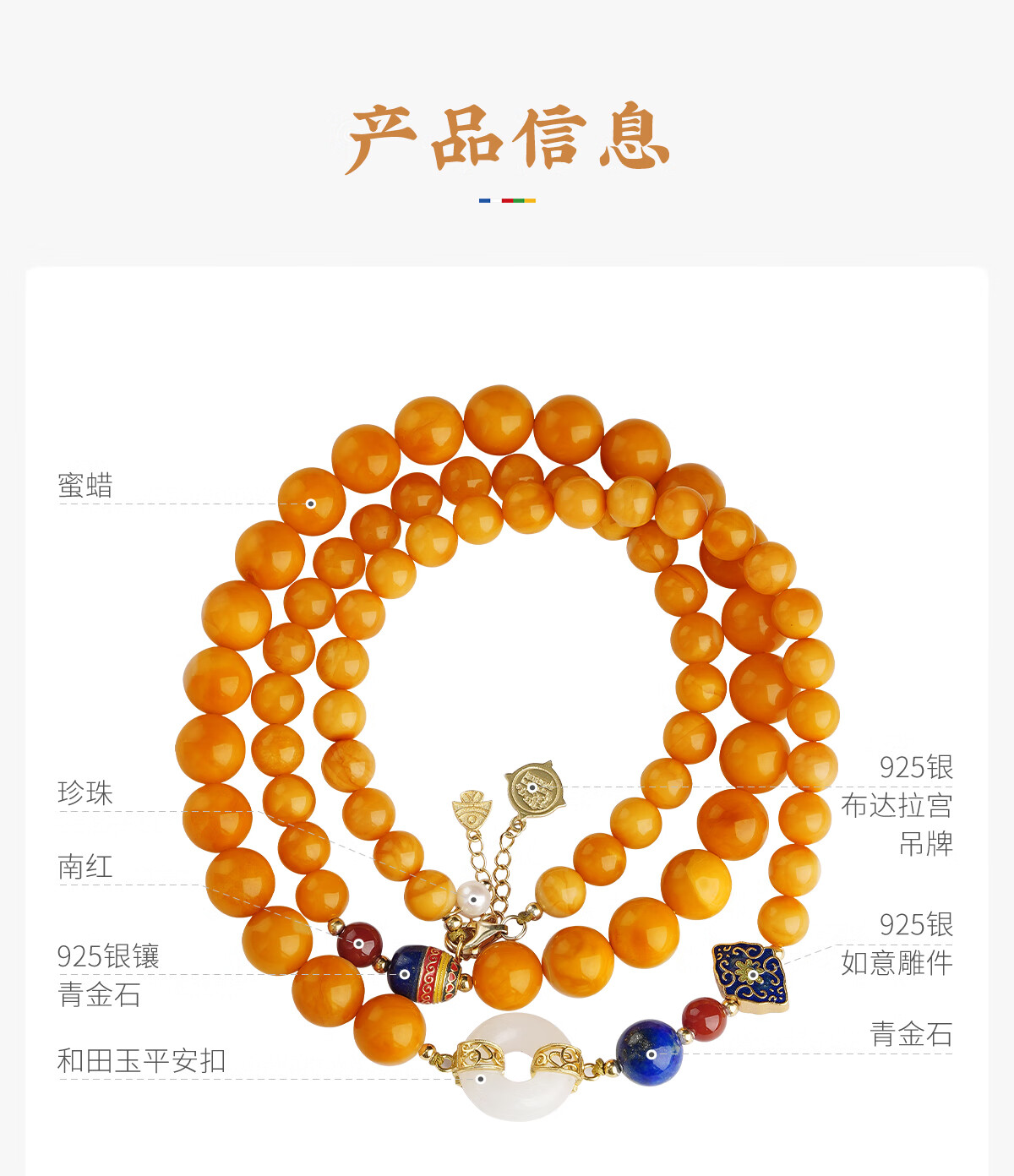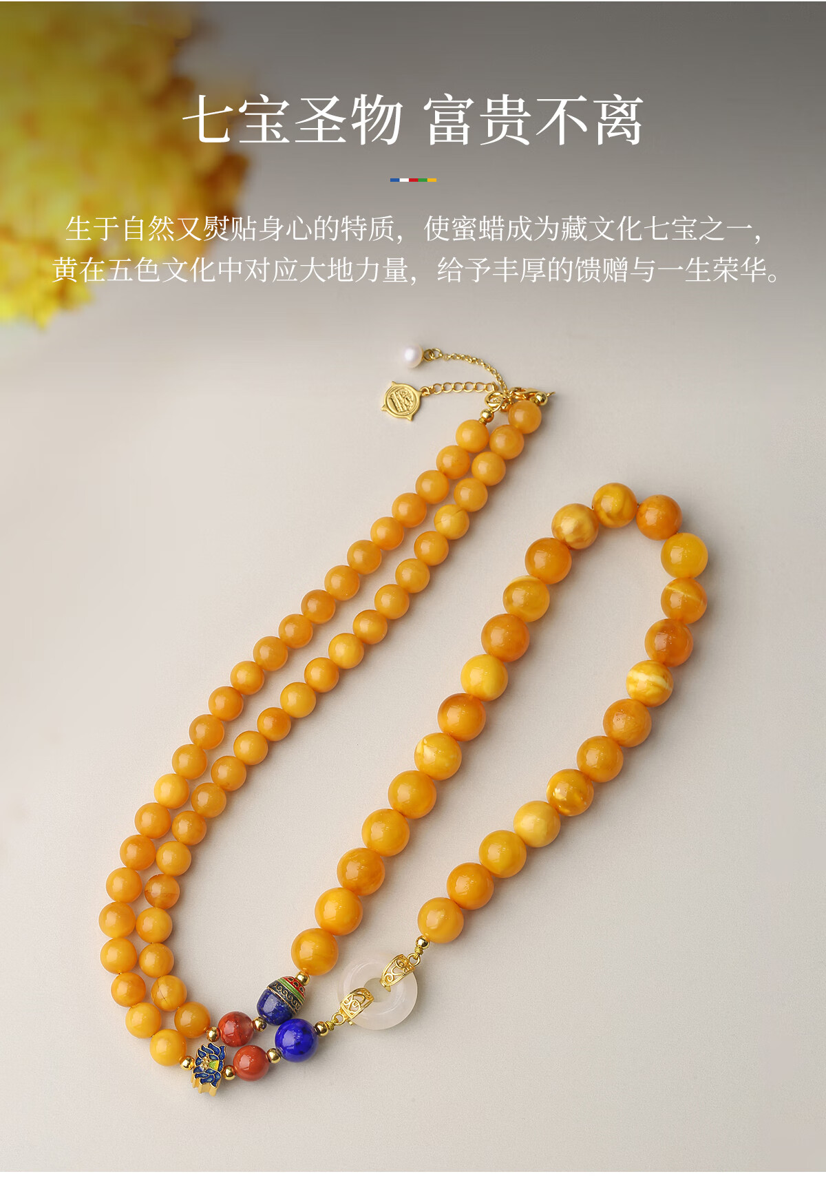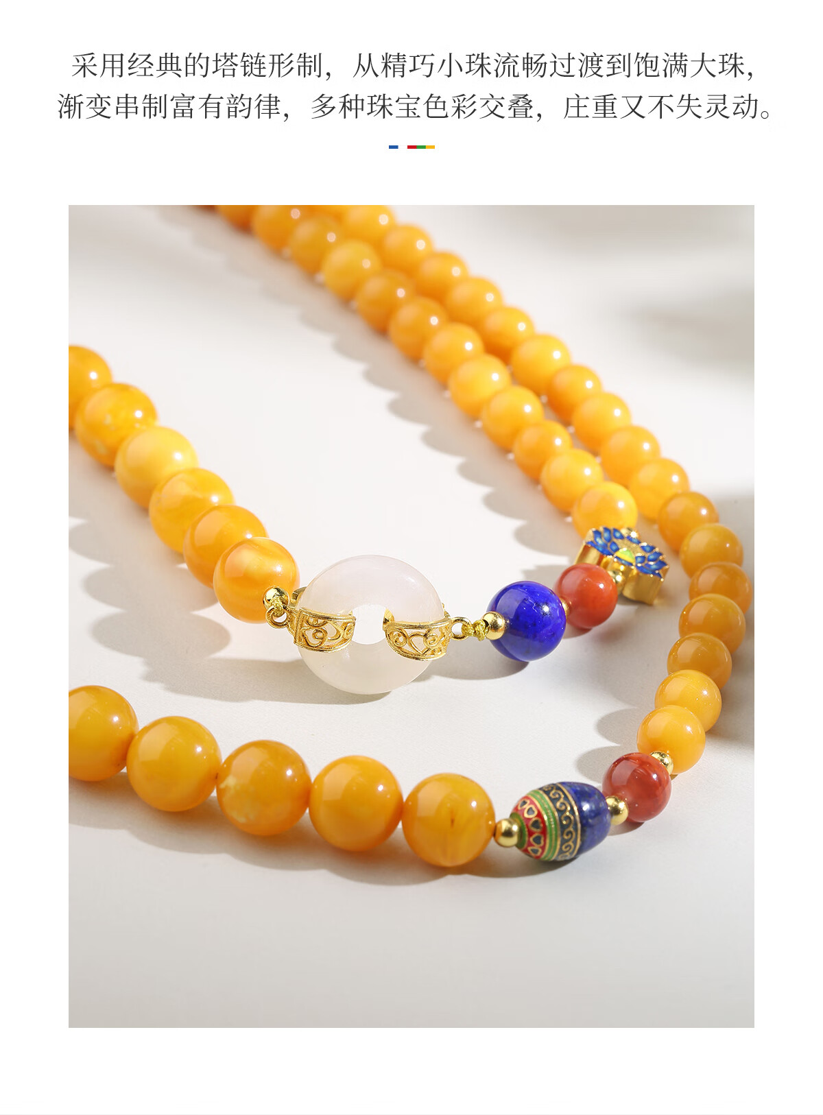 Potala Palace Beeswax Necklace, Hetian Jade Peace Buckle, Lapis Lazuli, Heather Beads, Birthday Gifts for Men and Women, Mu Xia Nong Beeswax Necklace