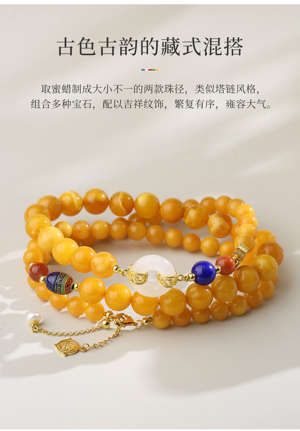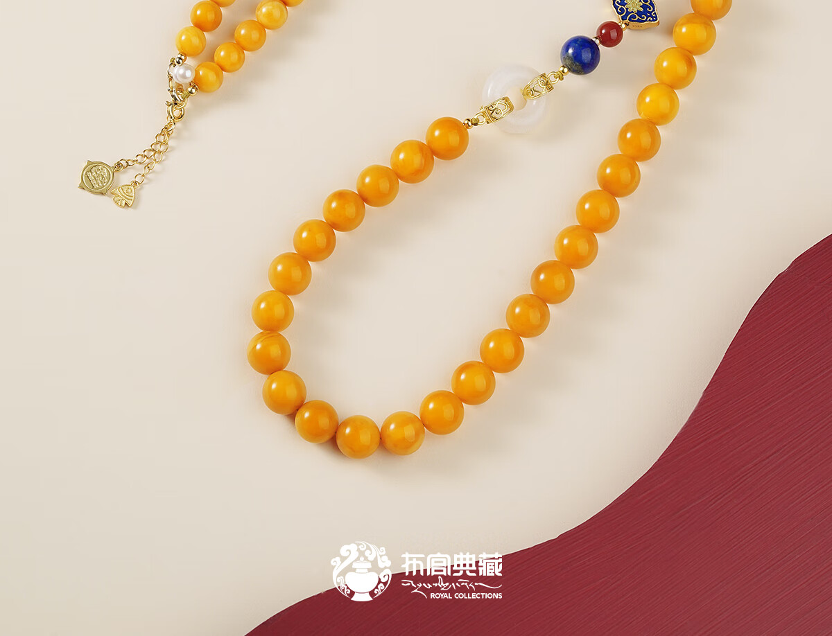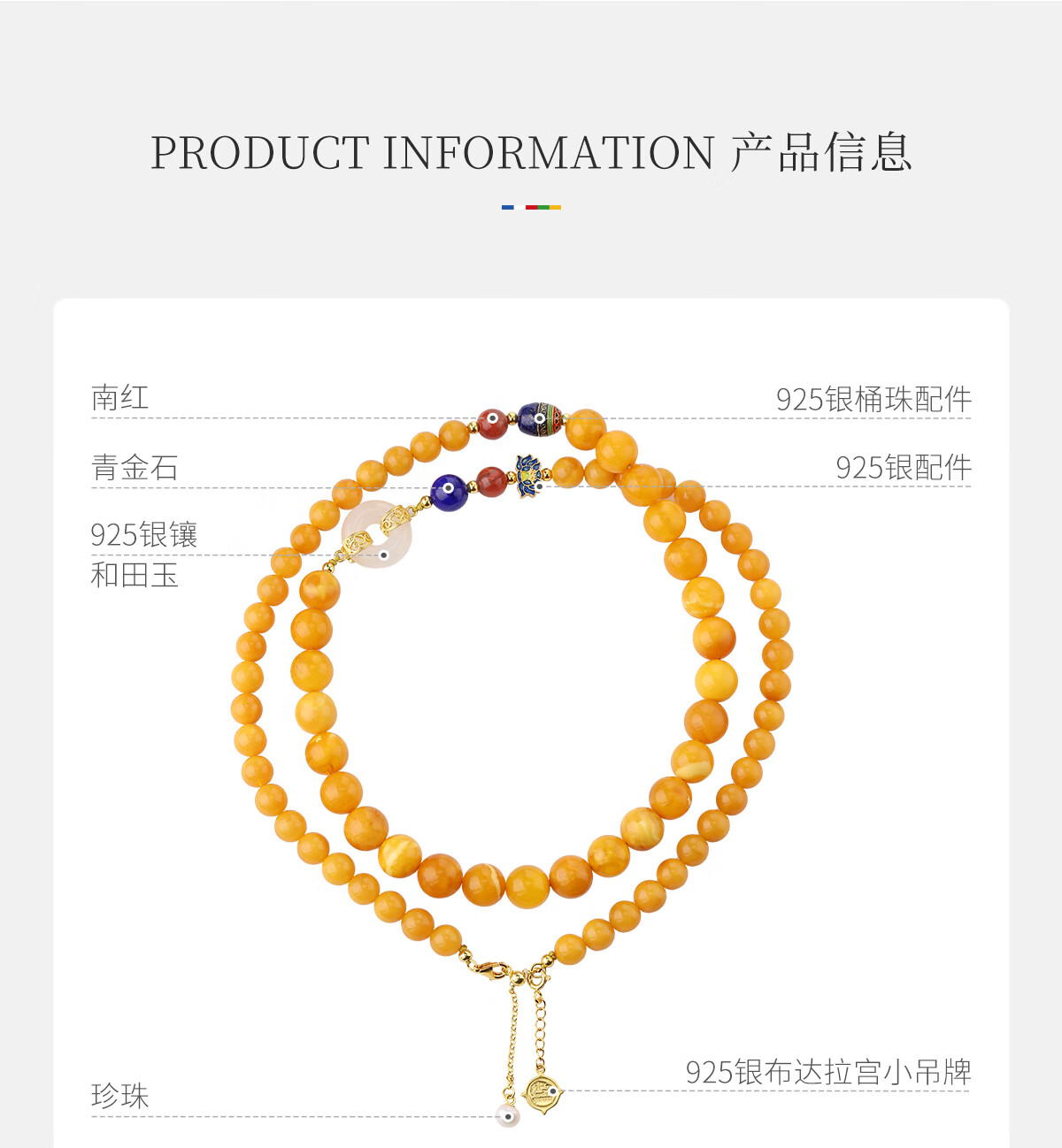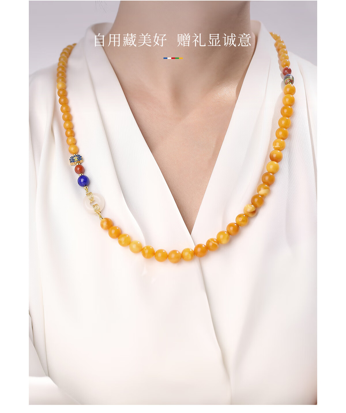Potala Palace Beeswax Necklace, Hetian Jade Peace Buckle, Lapis Lazuli, Heather Beads, Birthday Gifts for Men and Women, Mu Xia Nong Beeswax Necklace