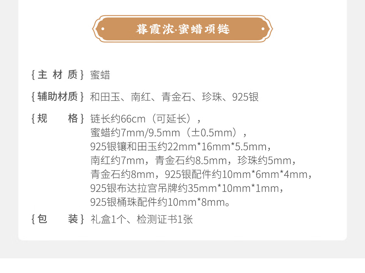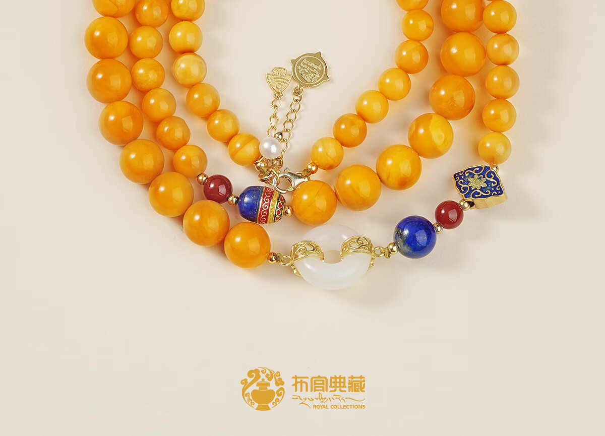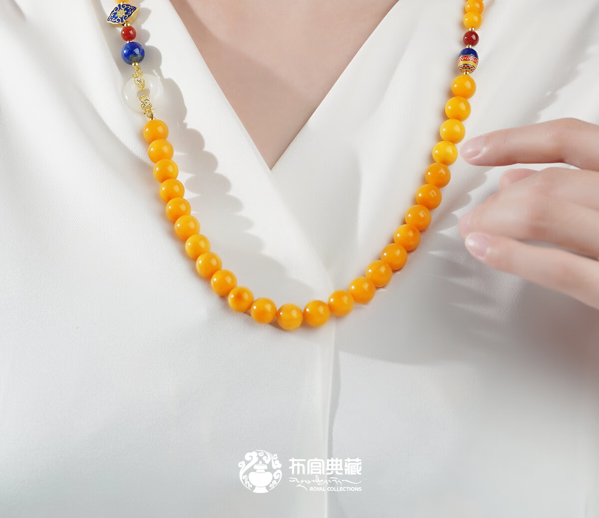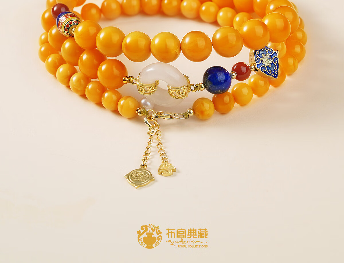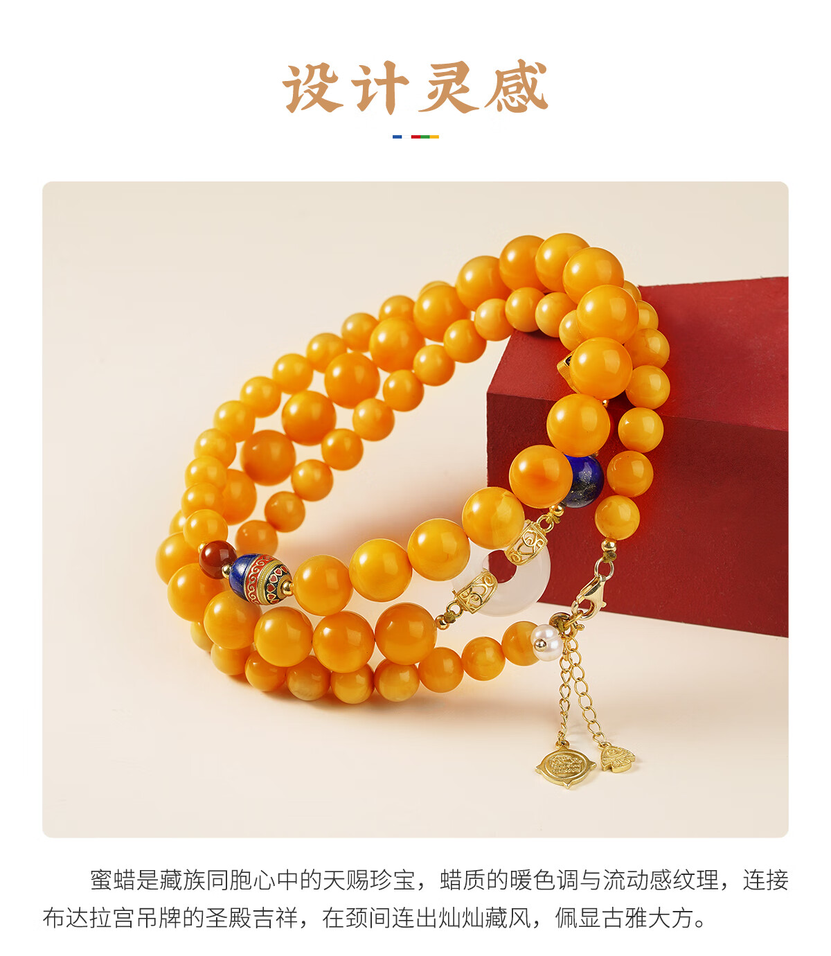 Potala Palace Beeswax Necklace, Hetian Jade Peace Buckle, Lapis Lazuli, Heather Beads, Birthday Gifts for Men and Women, Mu Xia Nong Beeswax Necklace
