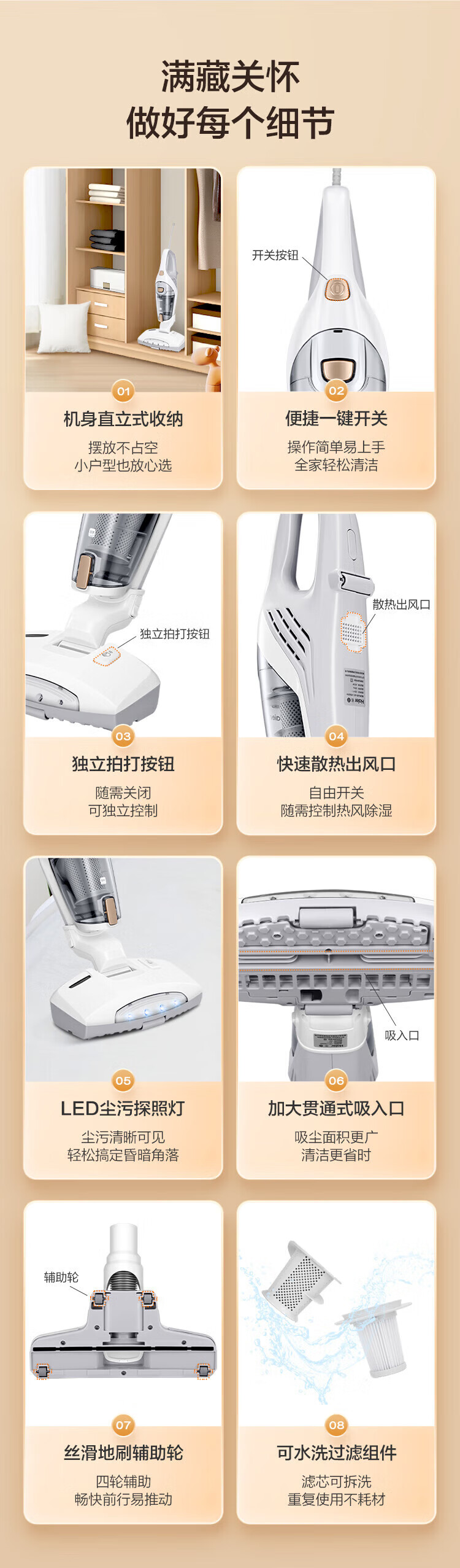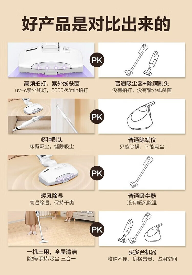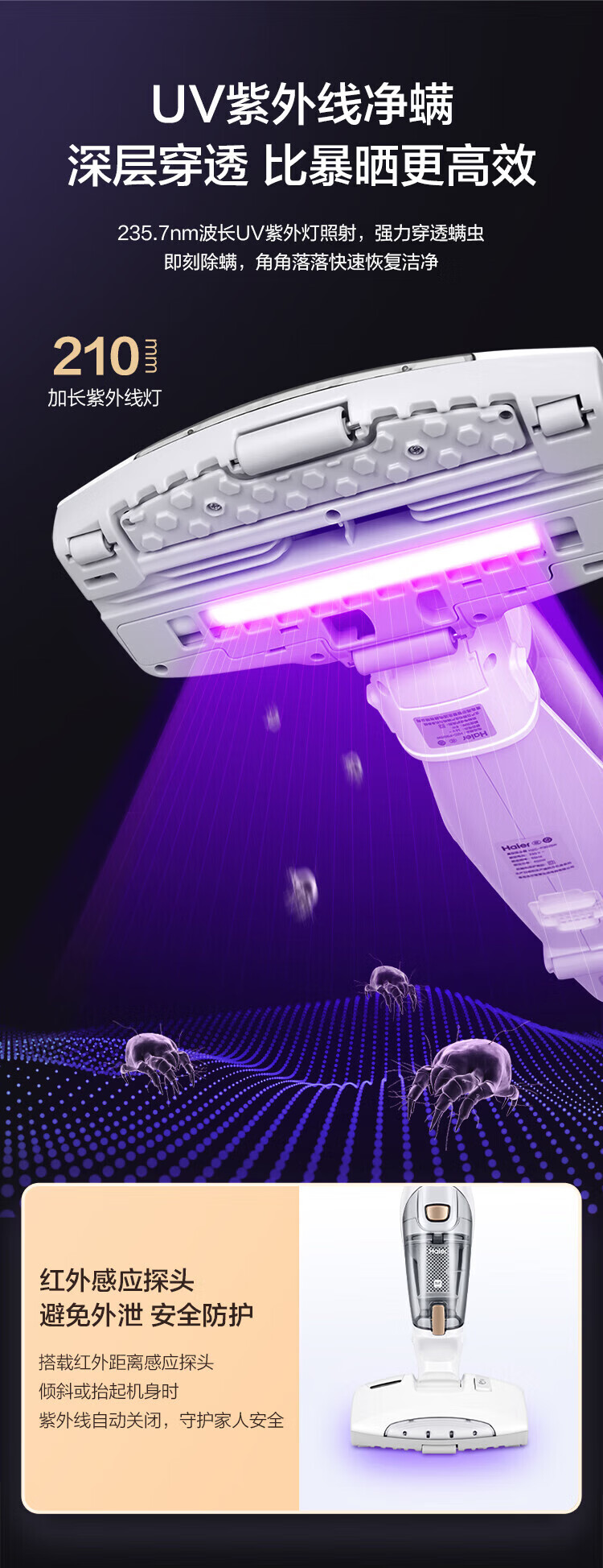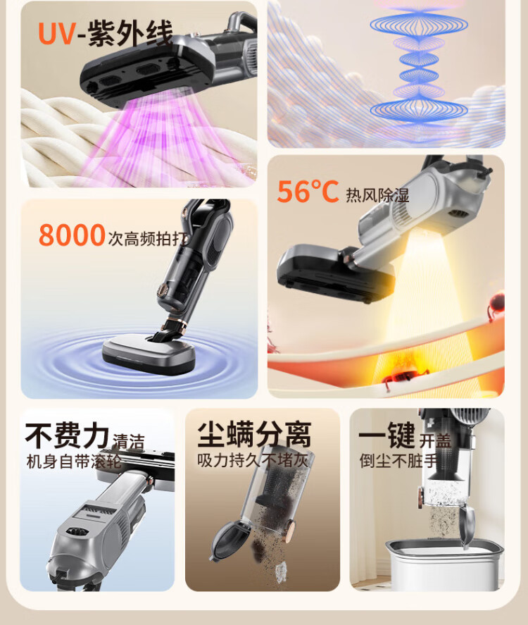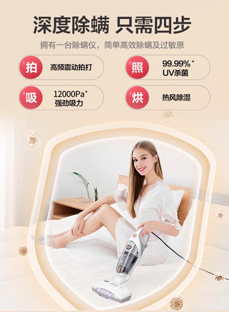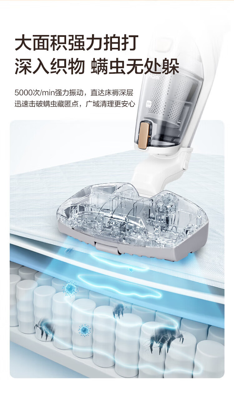Haier mite removal instrument household high-suction handheld vacuum cleaner 3-in-1 bed high temperature sterilization and mite removal all-in-one machine sofa ultraviolet mite removal sterilization hair suction wired model 3-in-1 vacuum/ultraviolet mite removal/hot air dehumidification 3025