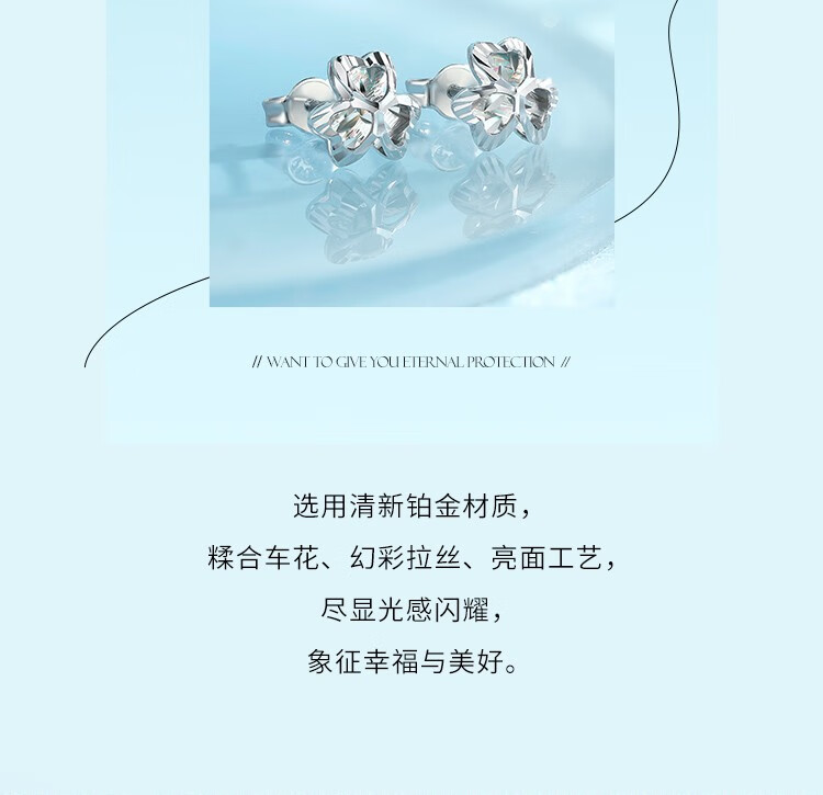 ZLF (ZLF) PT950 platinum earrings for women, platinum illusion three-dimensional hollow sparkling clover earrings 1.69g