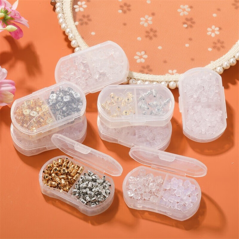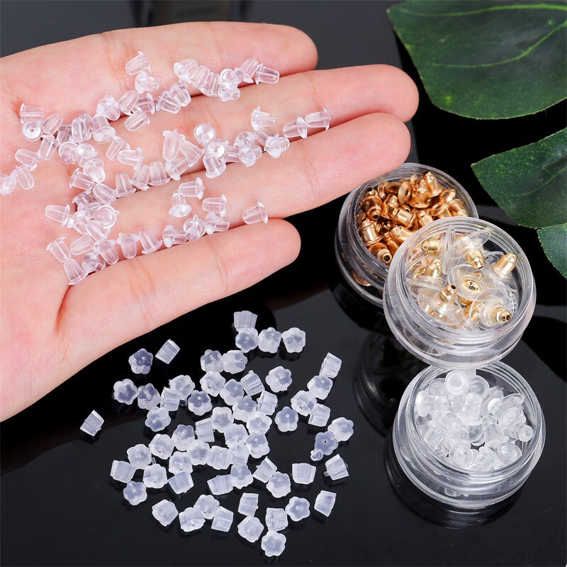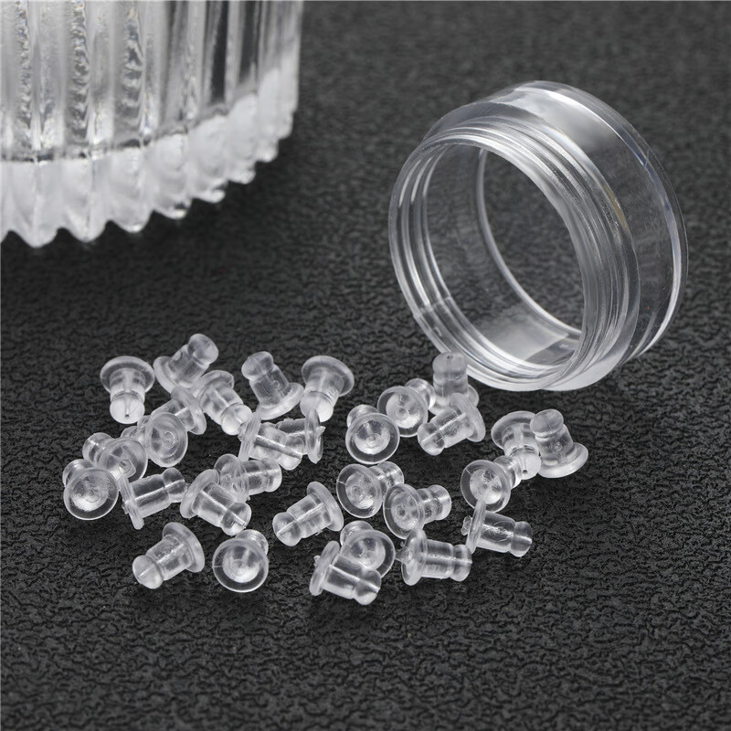 Su Shiliu silicone ear plugs, ear plugs, ear studs, ear plugs, ear cap accessories, transparent plastic anti-fall plugs, plugs behind earrings, transparent ear plugs, small size (100 pieces per box)