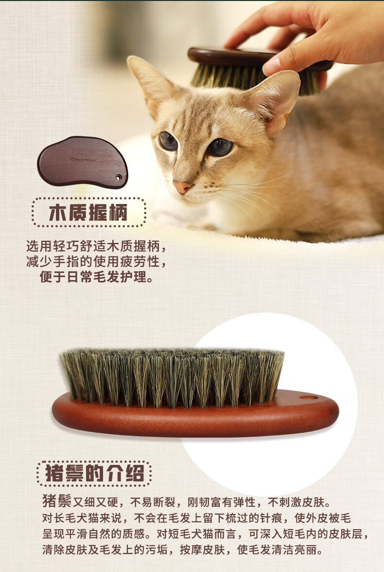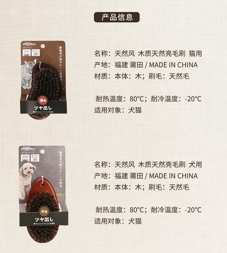 DoggyMand pet bright hair brush NS natural wind cat pig bristle comb pig bristle brush for cats