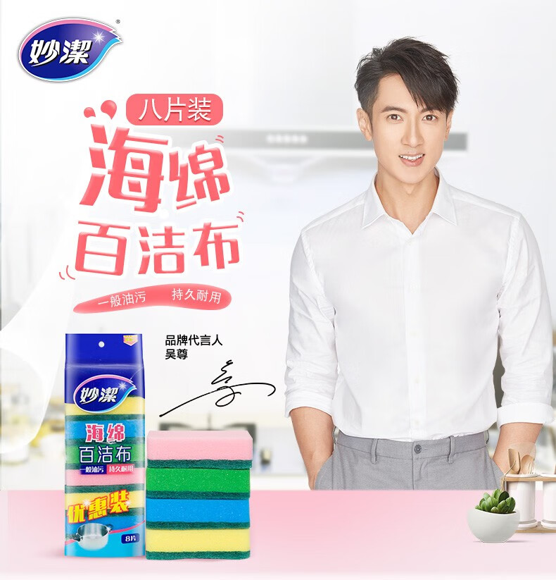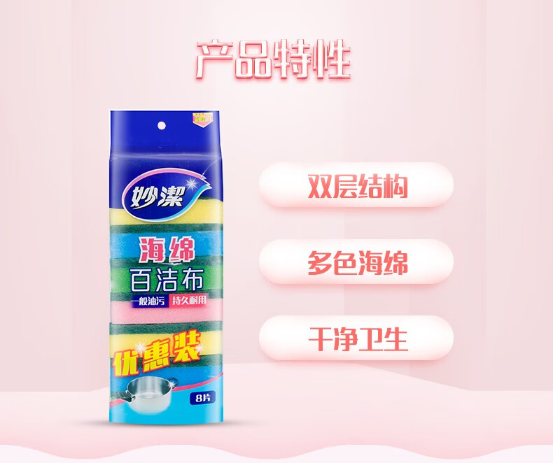 Miaojie sponge scouring pad kitchen cleaning dishcloth sponge scouring dishcloth 2 pieces