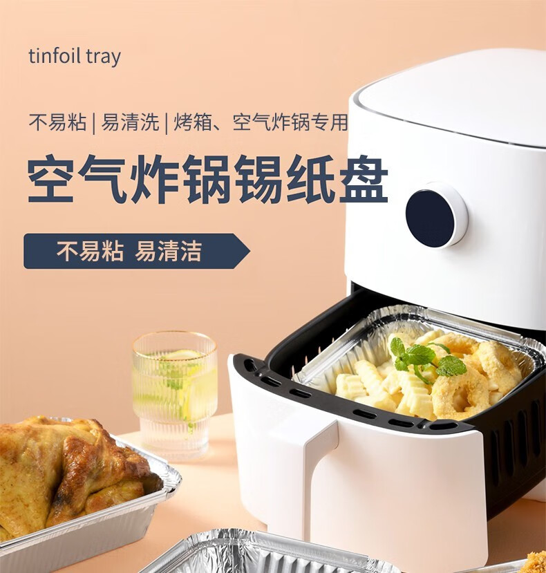 Jidaocook air fryer special paper tinfoil tray box fryer special tinfoil paper high temperature resistant barbecue baking pan baking oil-absorbing paper 50 pieces thickened tinfoil lunch box 5-8L fryer