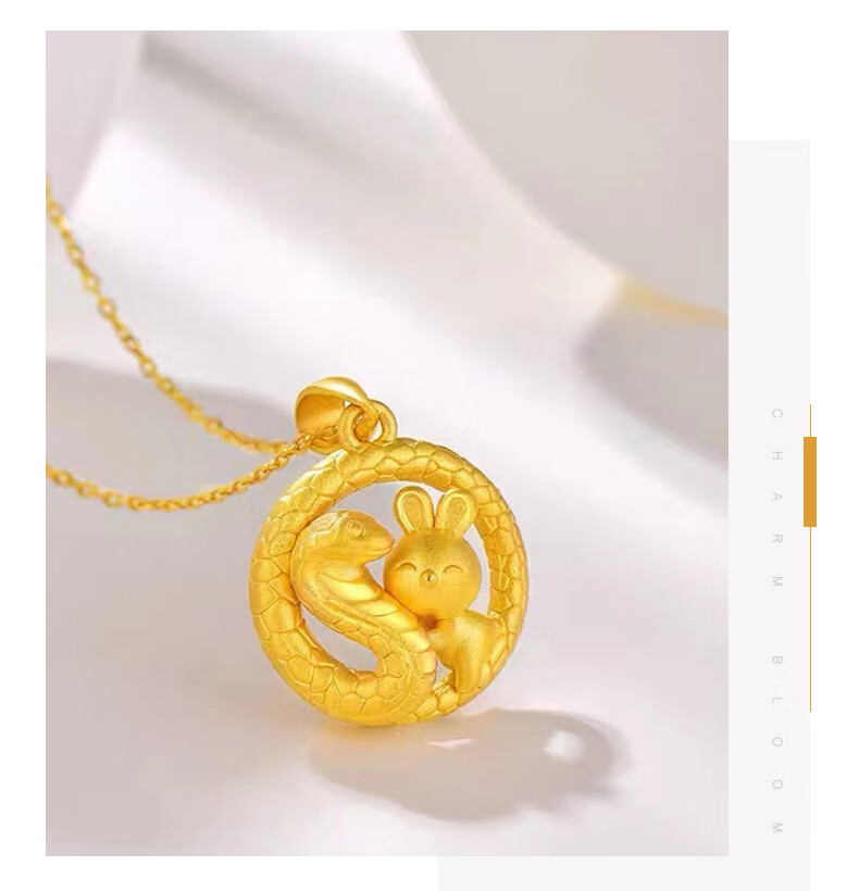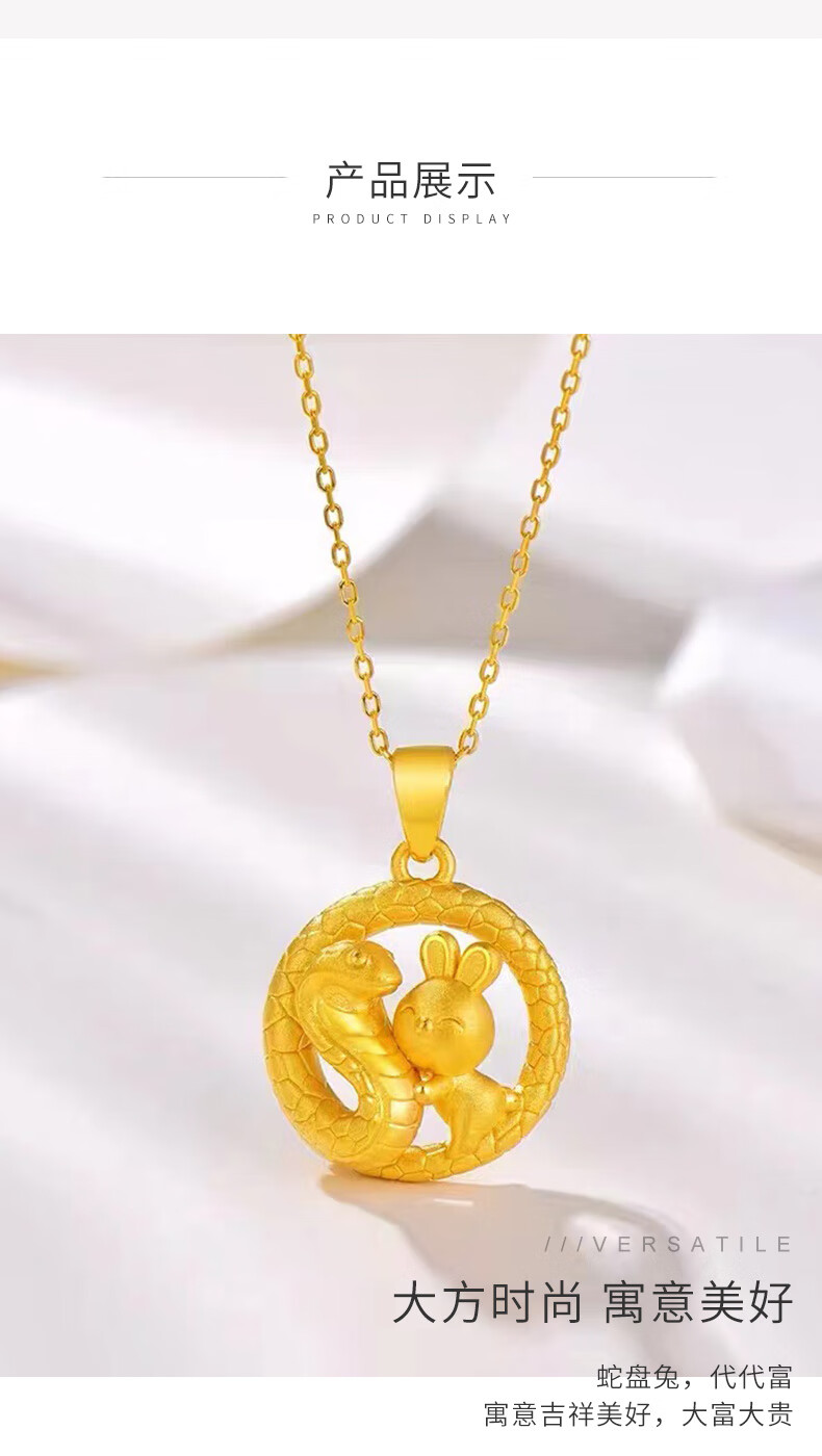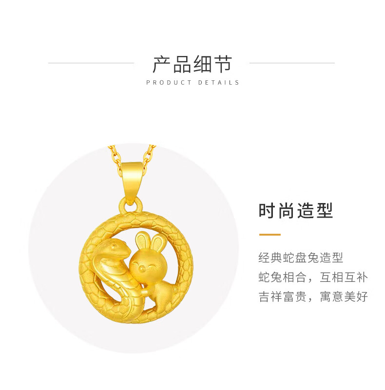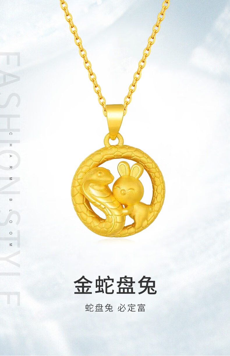 China Gold (CHINA GOLD) Snake Pan Rabbit Gold Pendant Pure Gold Zodiac Snake Necklace Zodiac Snake Necklace Zodiac Year Gold Snake Year Female Commemorative Wedding Gift for Girlfriend Melon Seed Buckle Snake Pan Rabbit Pendant About 2.4g Free Silver Chain