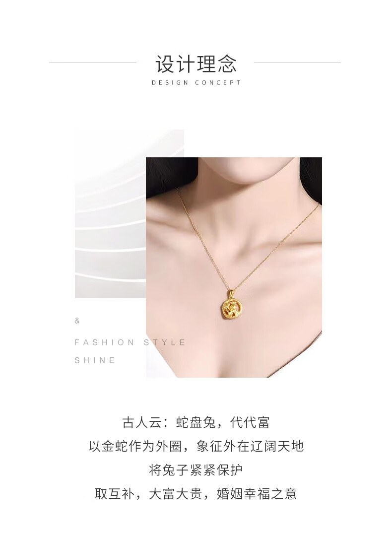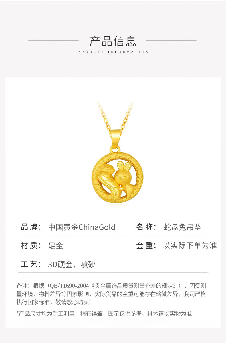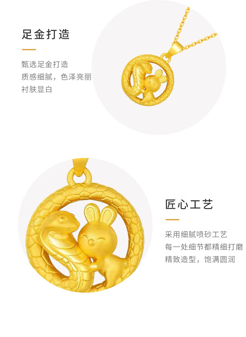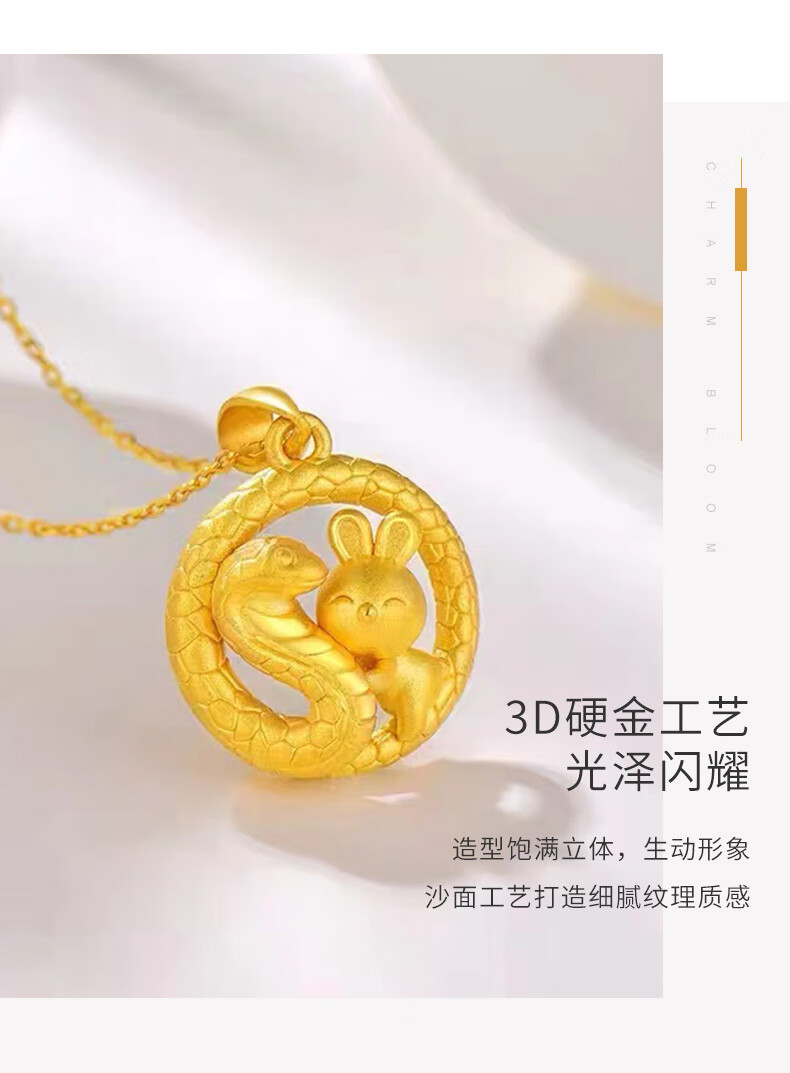 China Gold (CHINA GOLD) Snake Pan Rabbit Gold Pendant Pure Gold Zodiac Snake Necklace Zodiac Snake Necklace Zodiac Year Gold Snake Year Female Commemorative Wedding Gift for Girlfriend Melon Seed Buckle Snake Pan Rabbit Pendant About 2.4g Free Silver Chain