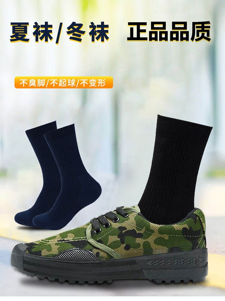 Jihua 3576 military training socks zero-sock training sports socks deodorant wear-resistant breathable mid-tube socks winter socks (black 10 pairs) S-level deodorant socks medium size (38 to 42)