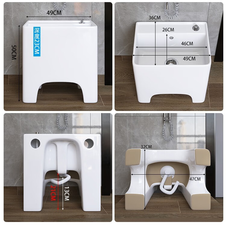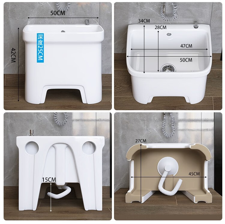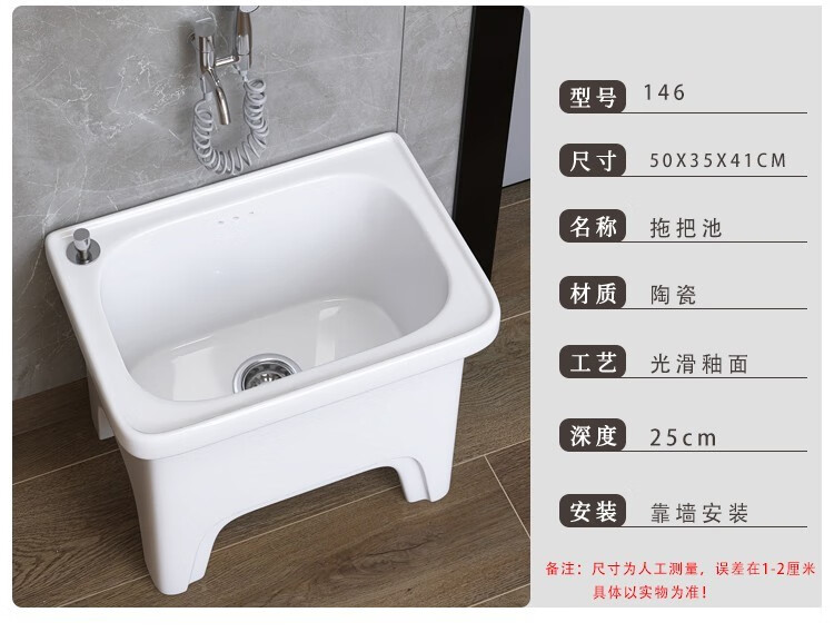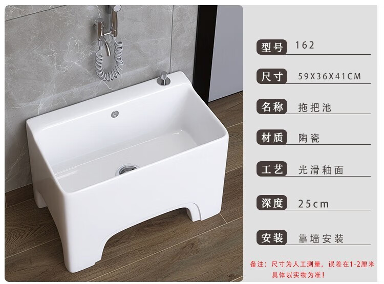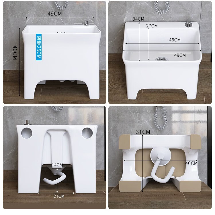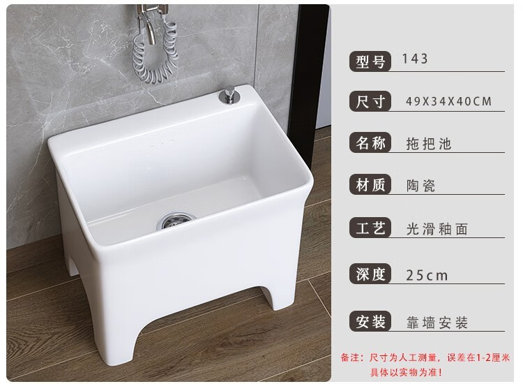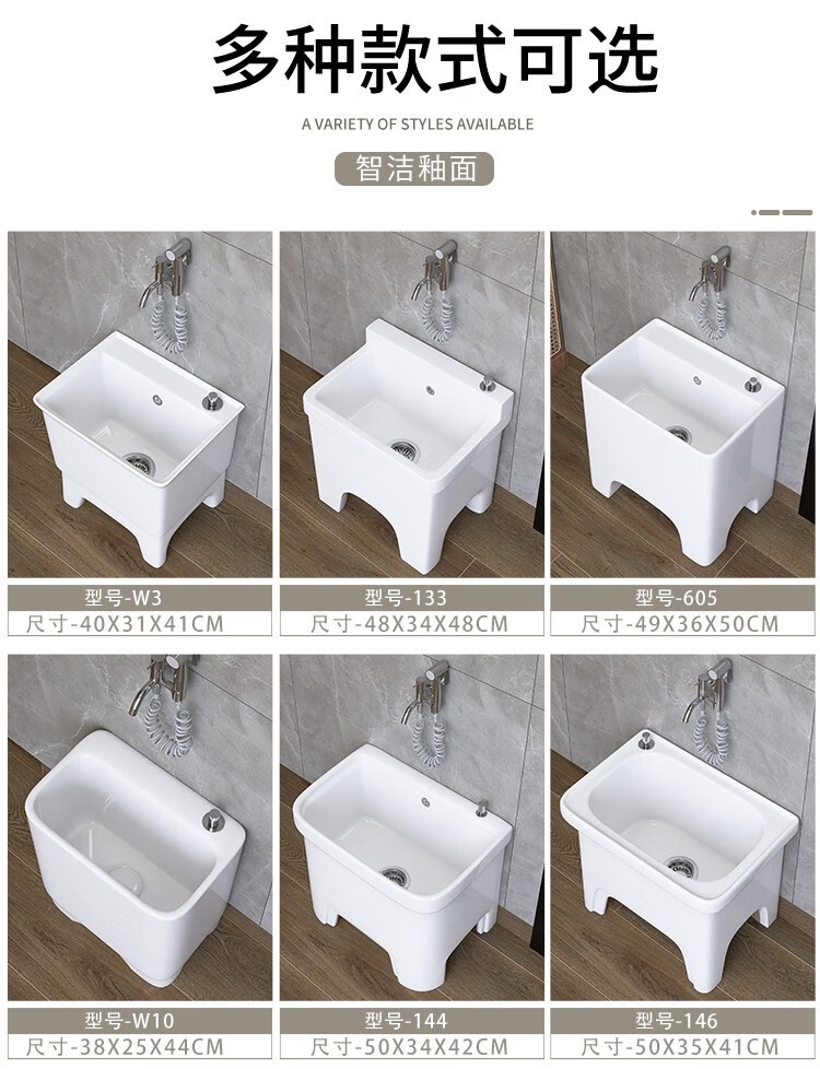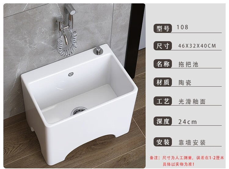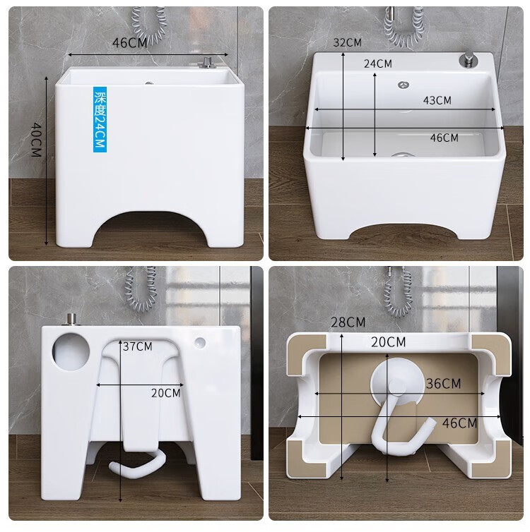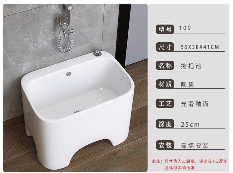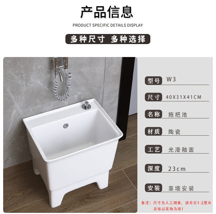 Dallv balcony high-foot ceramic mop pool with leg mop pool faucet floor-standing home bathroom small washing mop pool W3 small model length 40