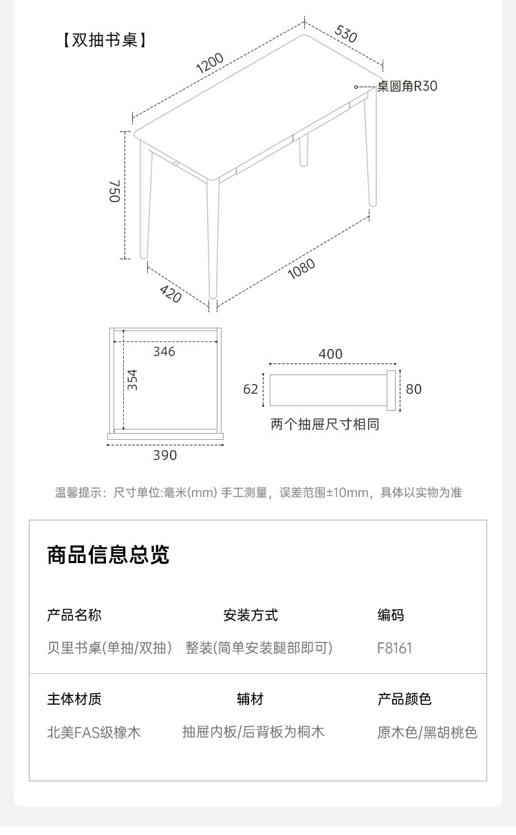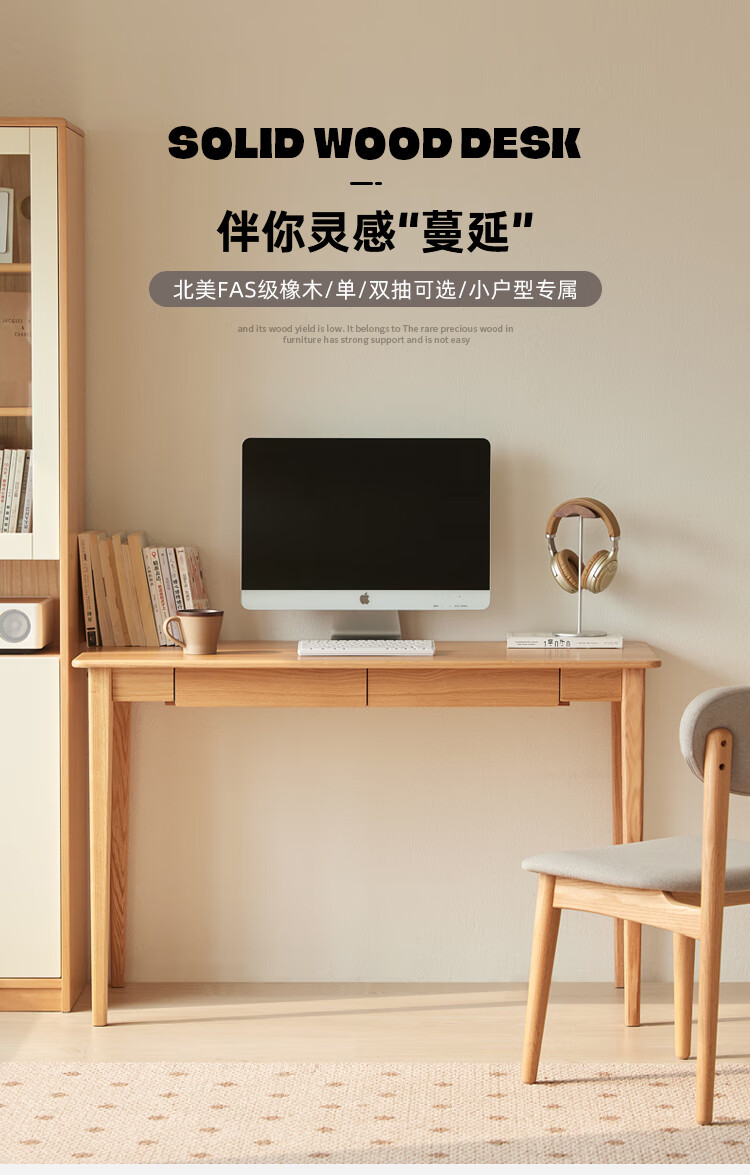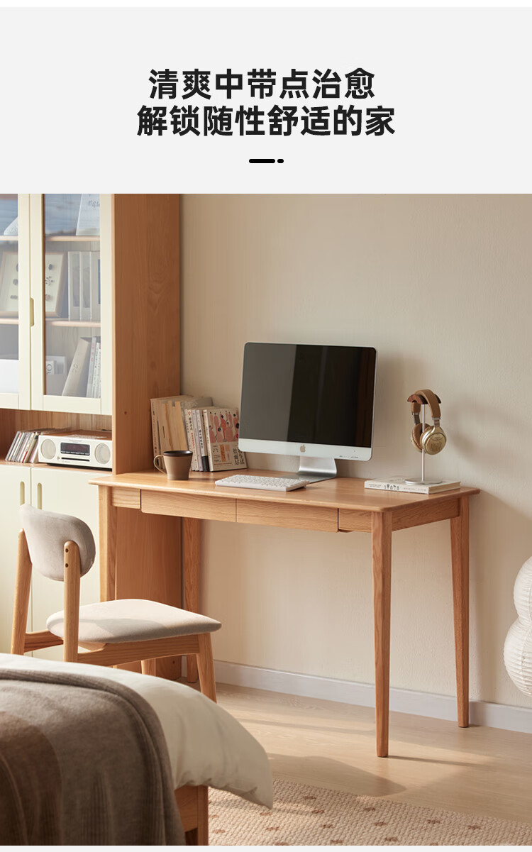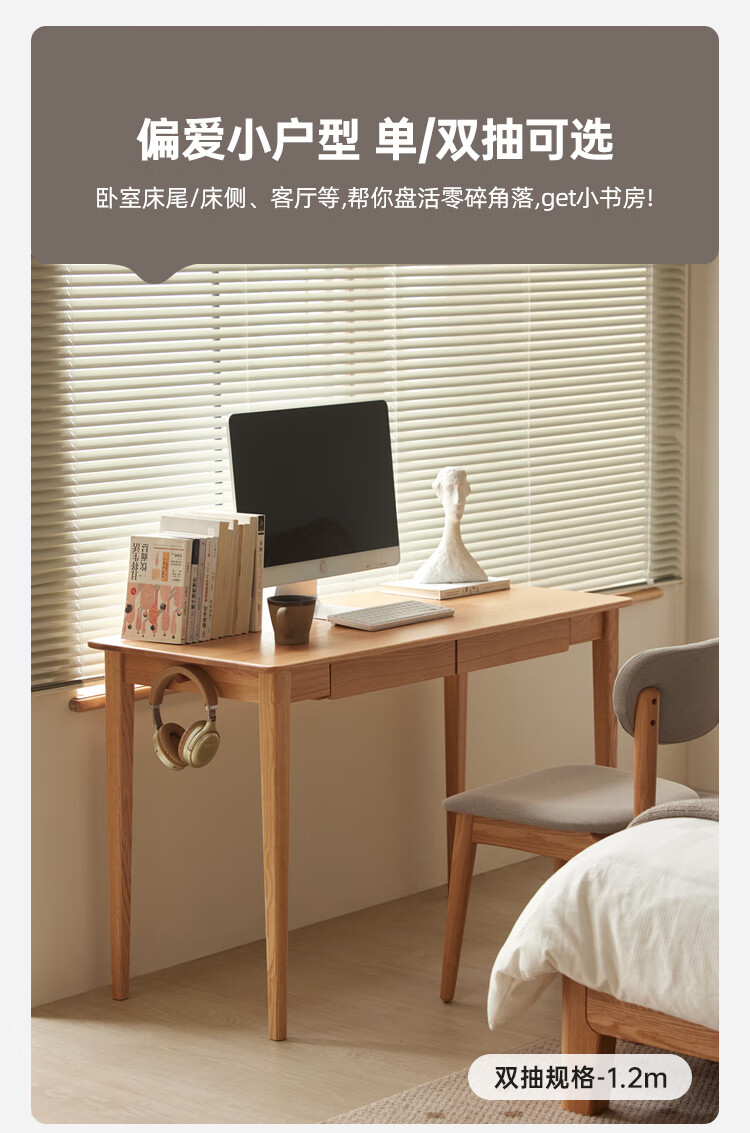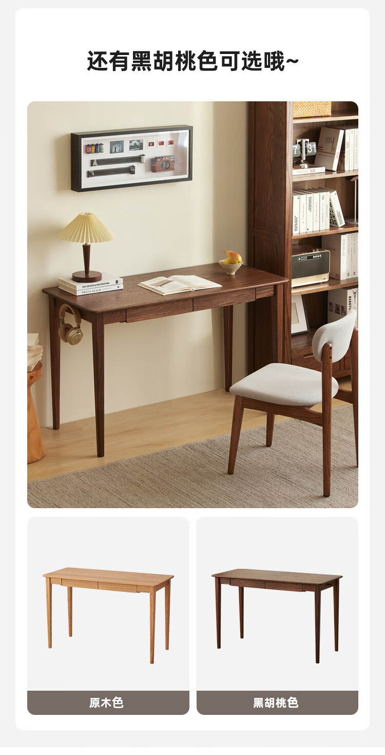 Original solid wood desk, simple office desk, small apartment desk, living room, study table, work table, dressing table F8161 1.2 meters - 2 drawers - solid wood color desk