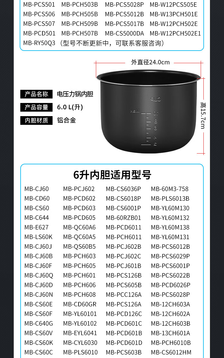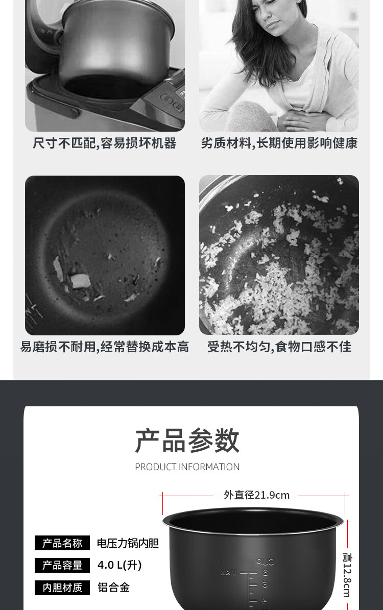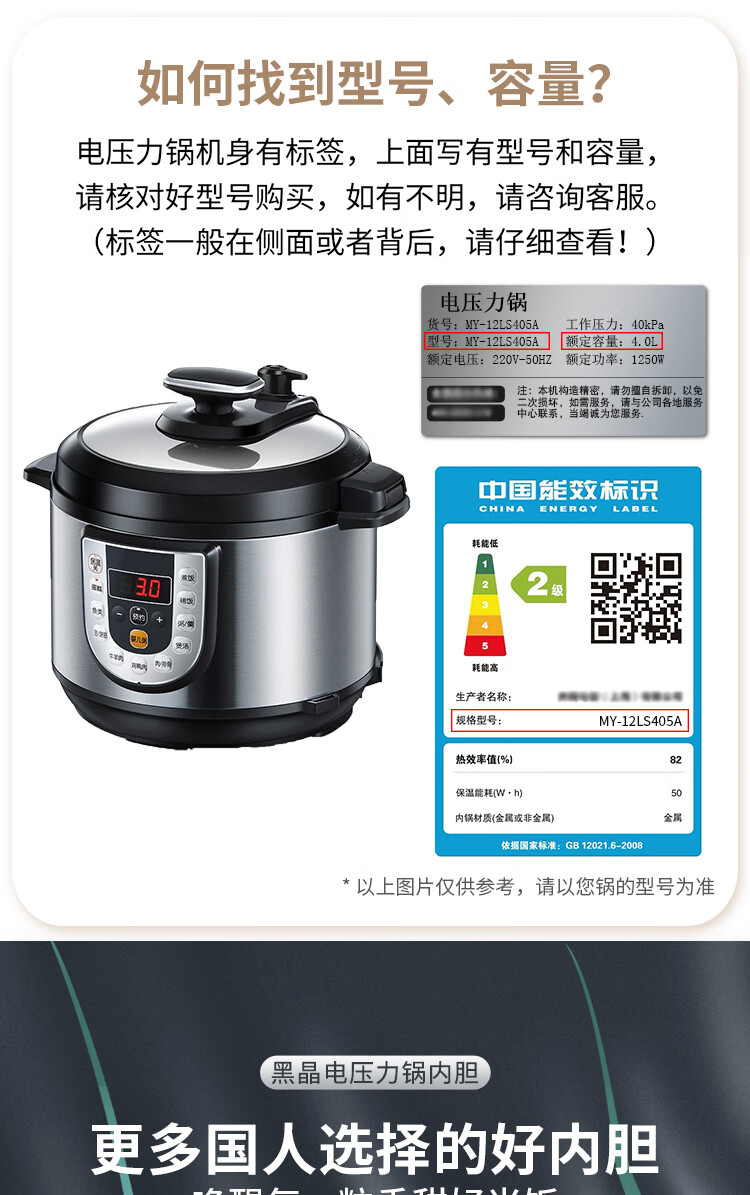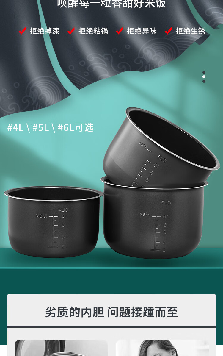 Ruiwen Midea electric pressure cooker 4L/5L/6L liter electric pressure cooker pot non-stick accessories inner pot core liner Midea 5L black crystal liner