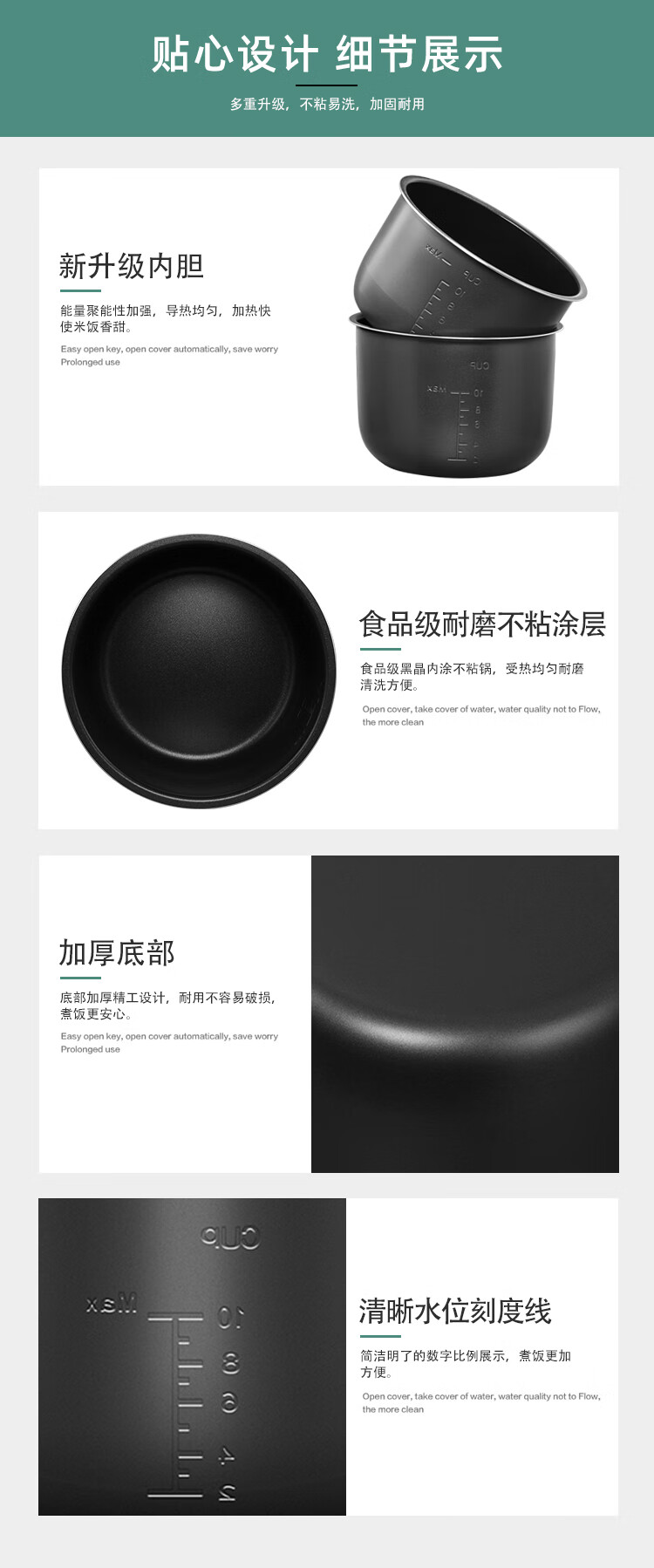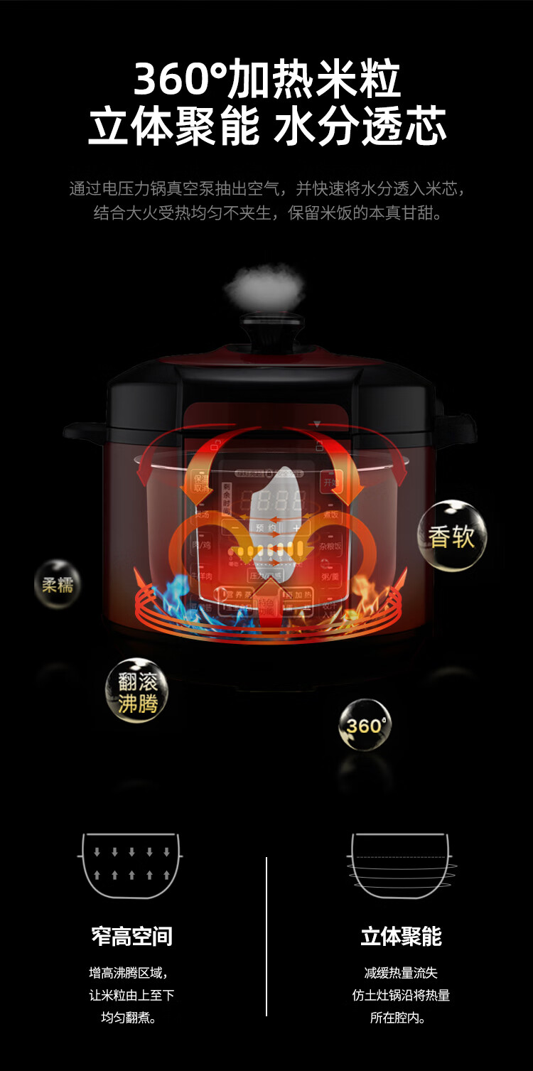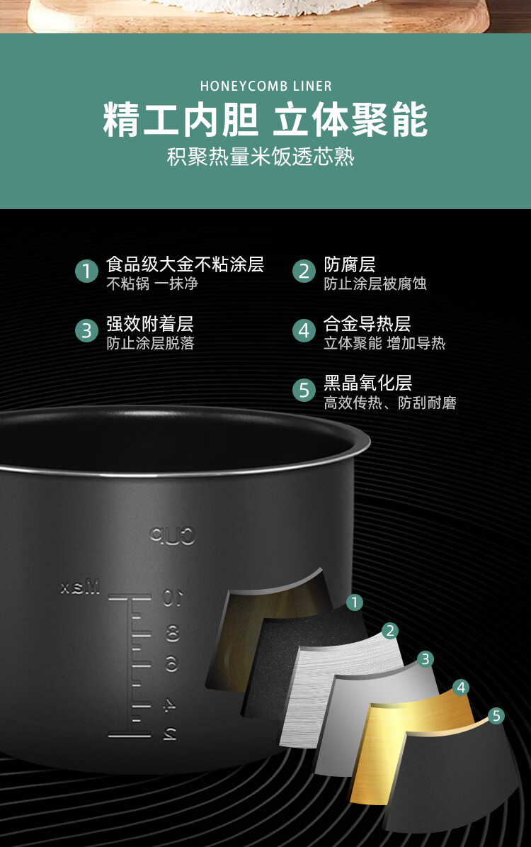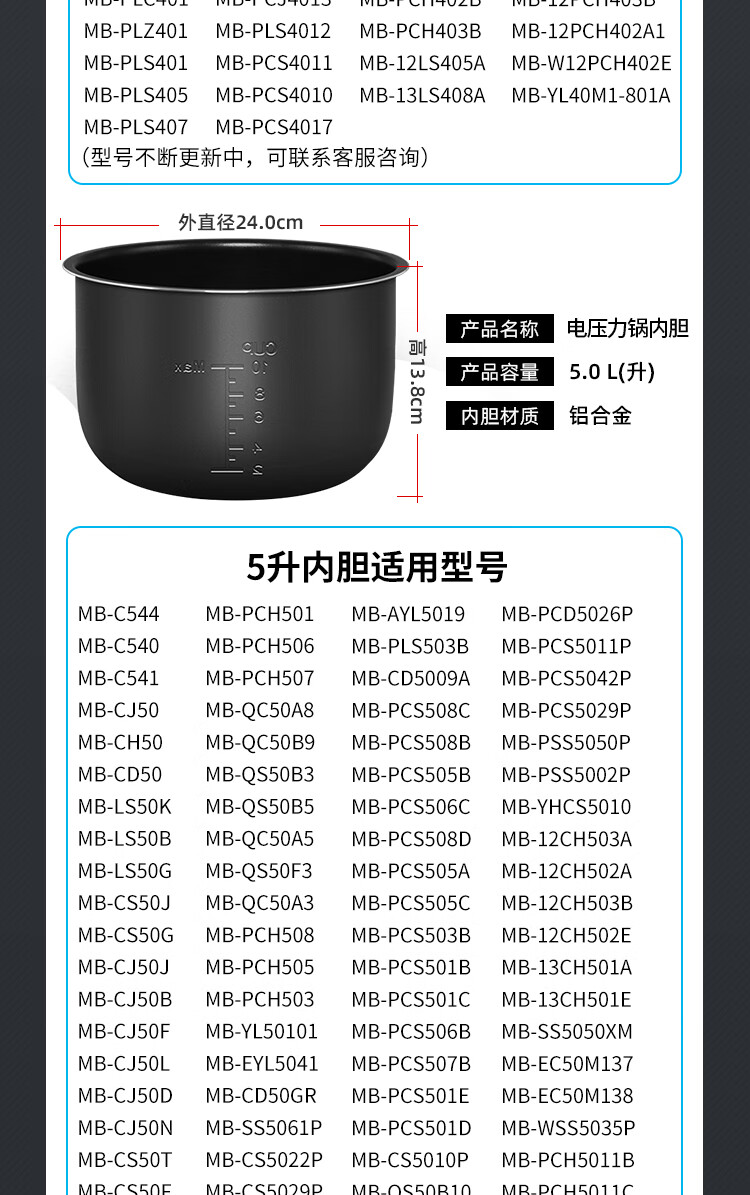 Ruiwen Midea electric pressure cooker 4L/5L/6L liter electric pressure cooker pot non-stick accessories inner pot core liner Midea 5L black crystal liner