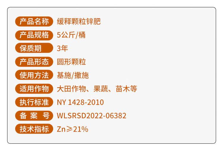 Schmet slow-release granular zinc fertilizer to prevent small leaf yellow leaf virus vegetable and fruit trees field base spreading fertilizer granular zinc 5 kg * 1 barrel