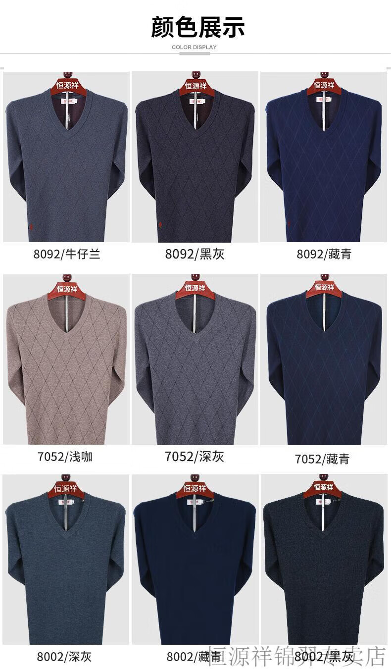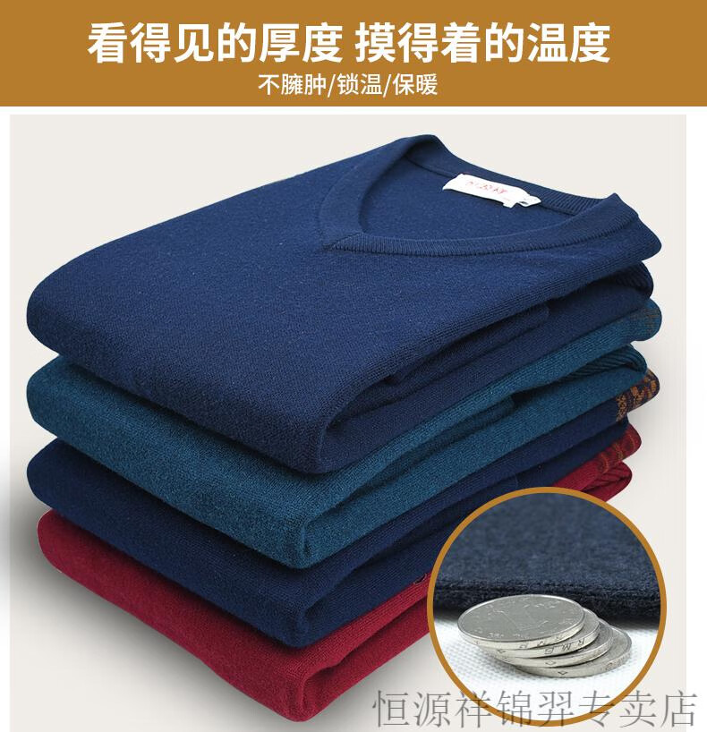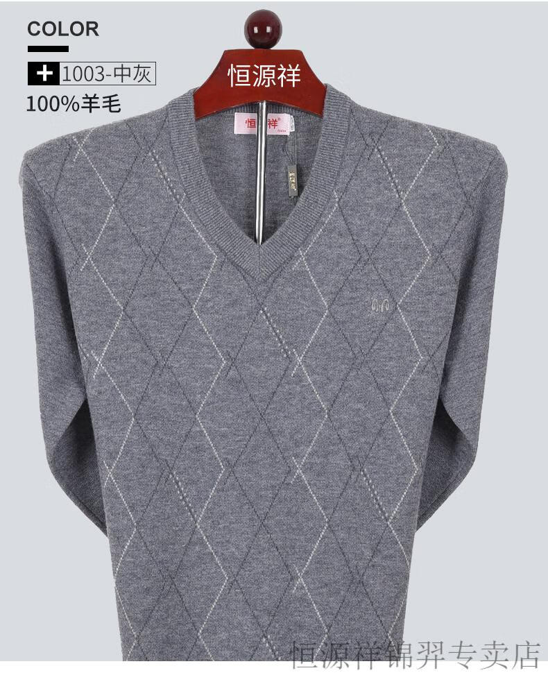 Hengyuanxiang high-end brand v-neck pure wool sweater for middle-aged and elderly men in autumn and winter sweetheart neck thickened warm dad knitted sweater 8002 dark gray (solid color) L 175