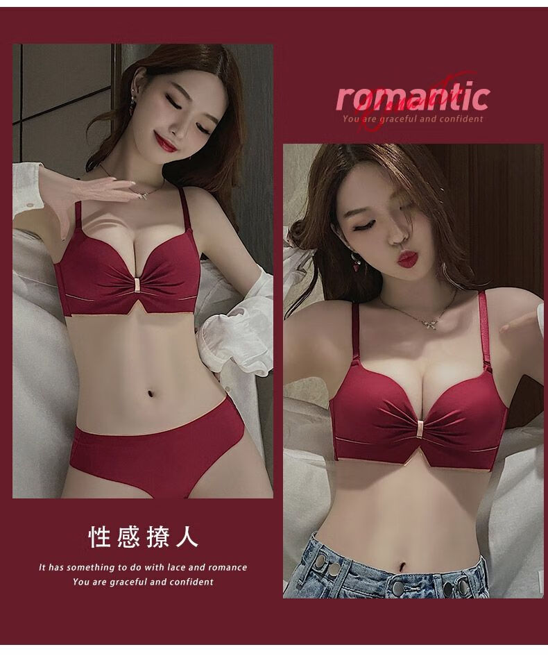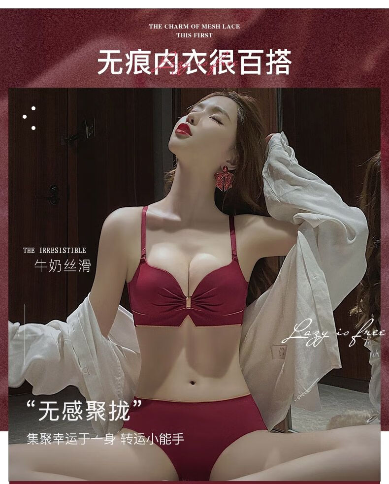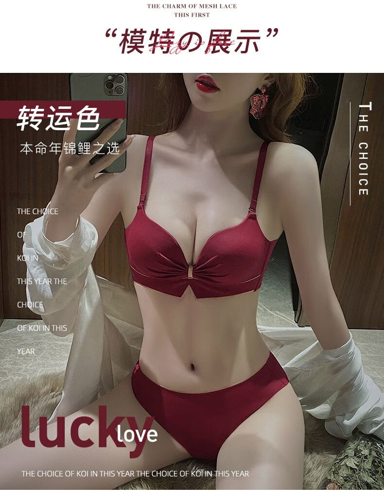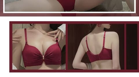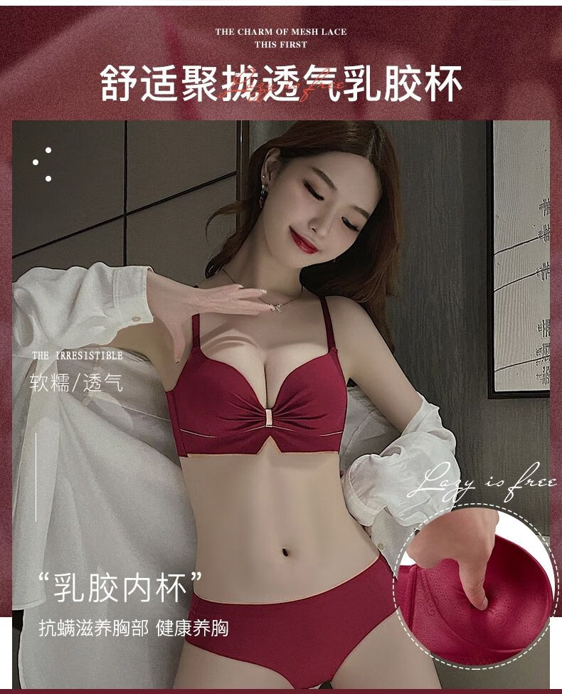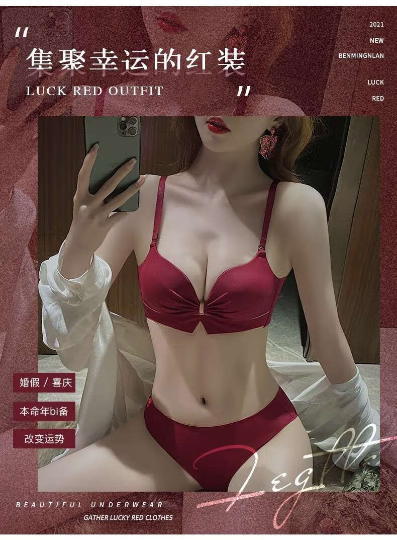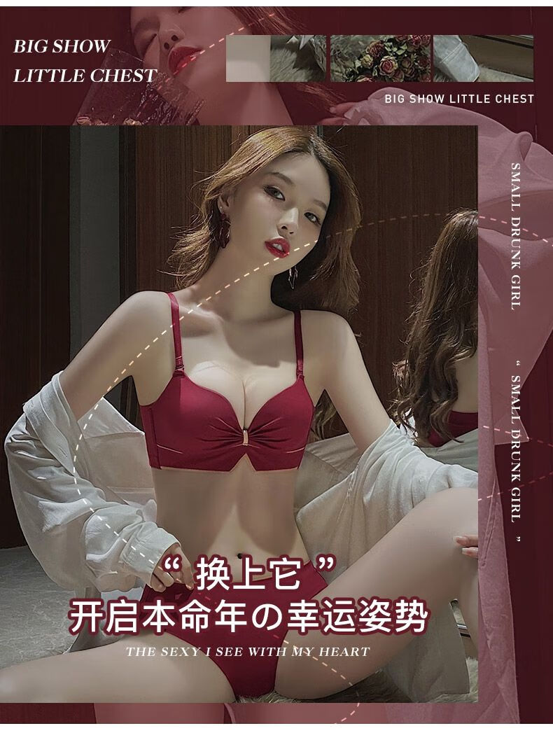 Victoria's elegant new underwear women's small breasts are gathered together to show the size of the secondary breasts. Zodiac year red latex bra set for wedding. Burgundy set 34B=75B (set + exquisite packaging)