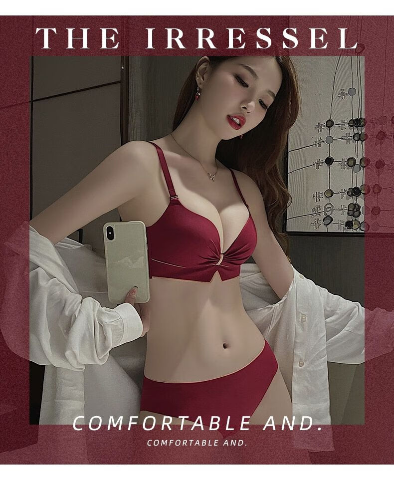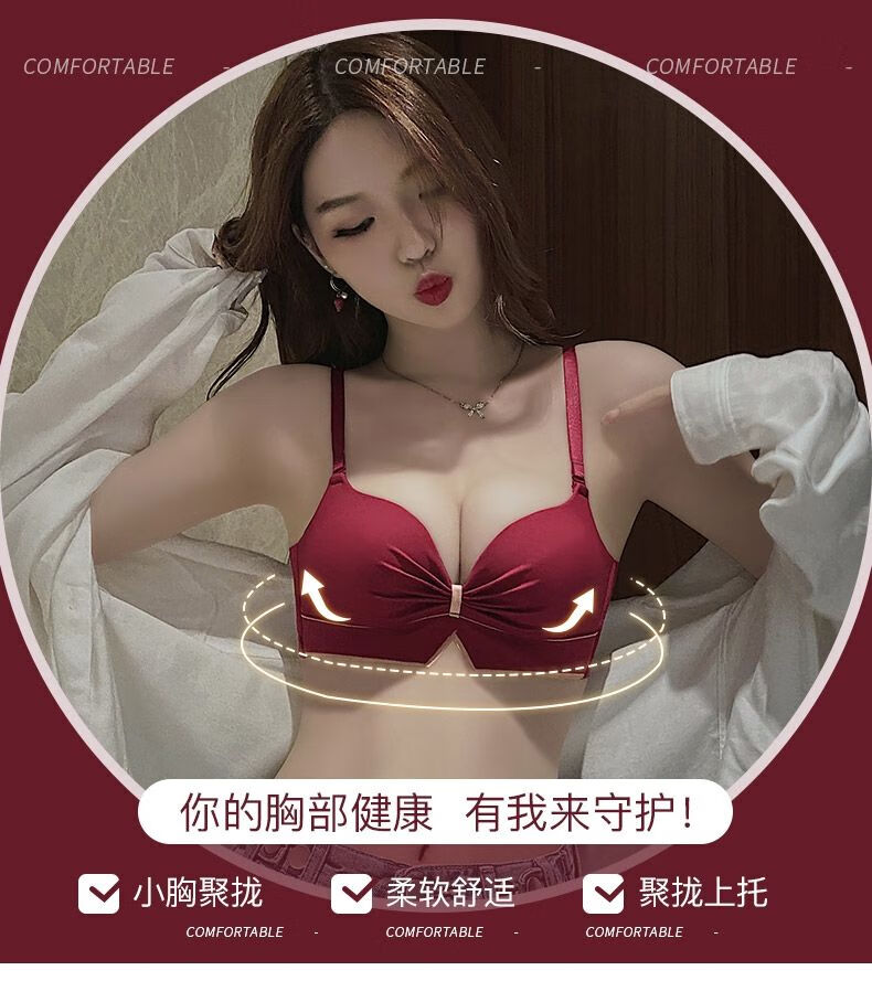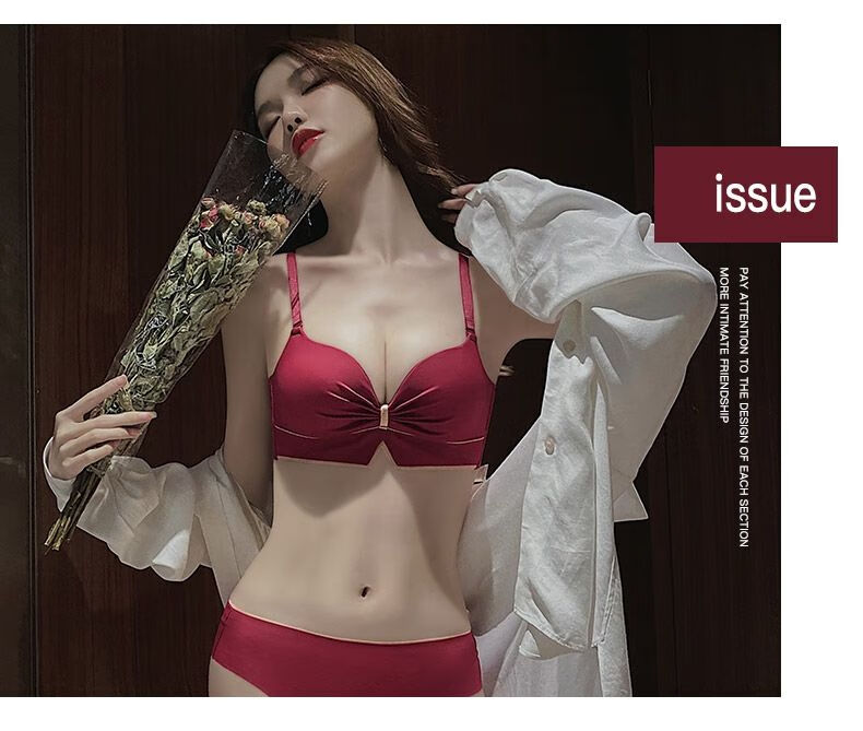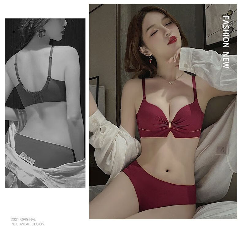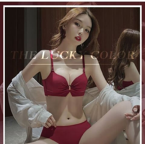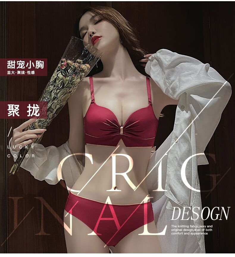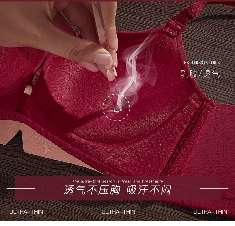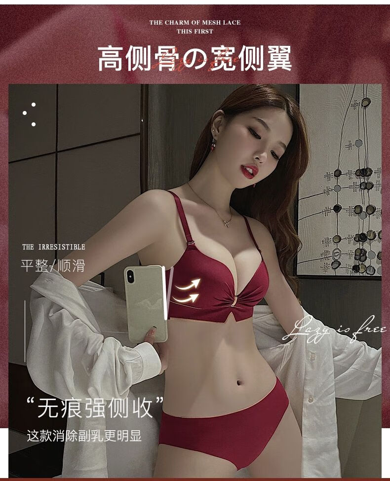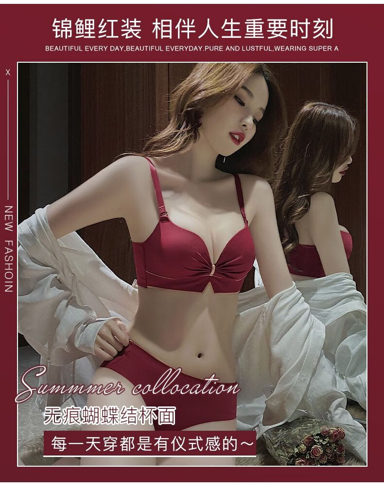 Victoria's elegant new underwear women's small breasts are gathered together to show the size of the secondary breasts. Zodiac year red latex bra set for wedding. Burgundy set 34B=75B (set + exquisite packaging)