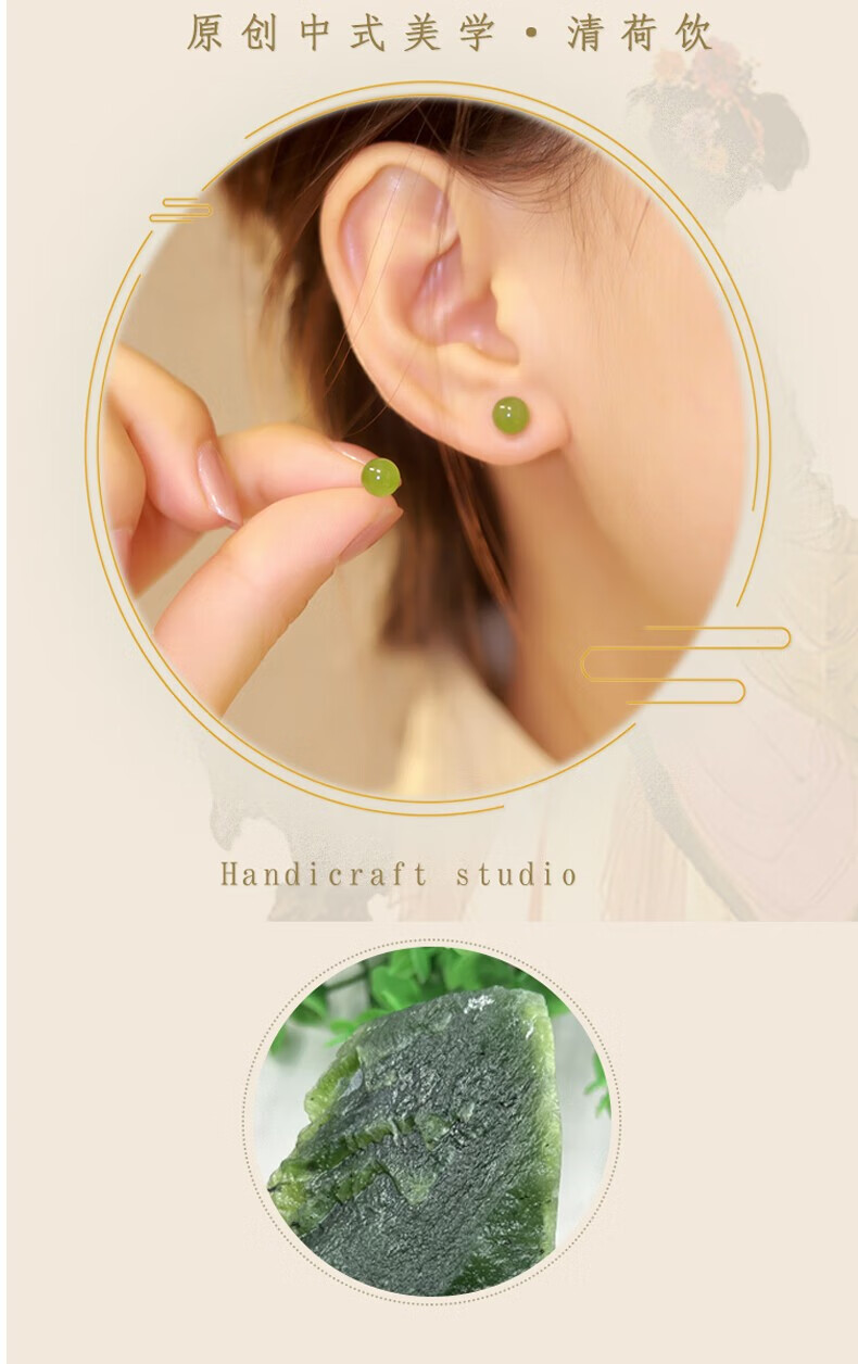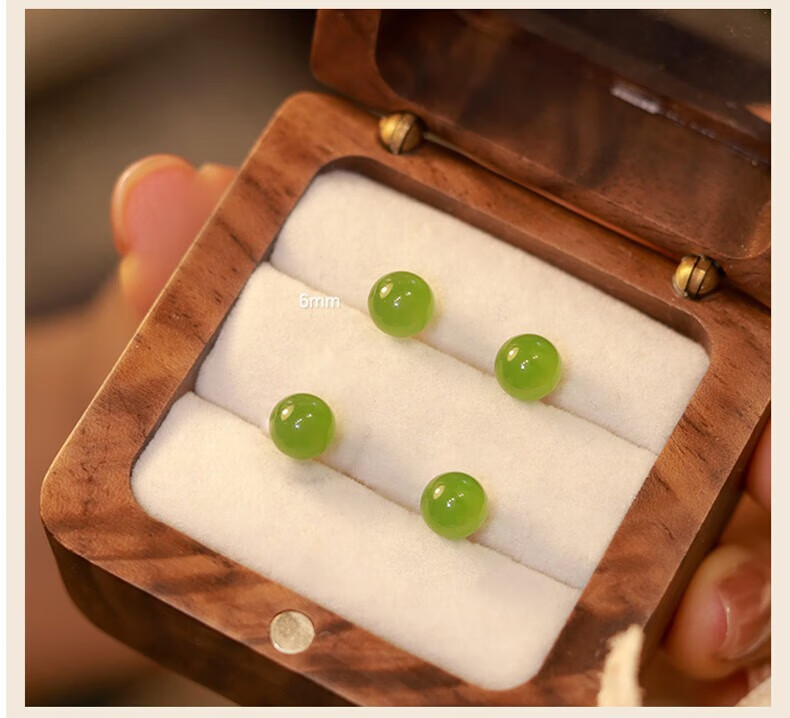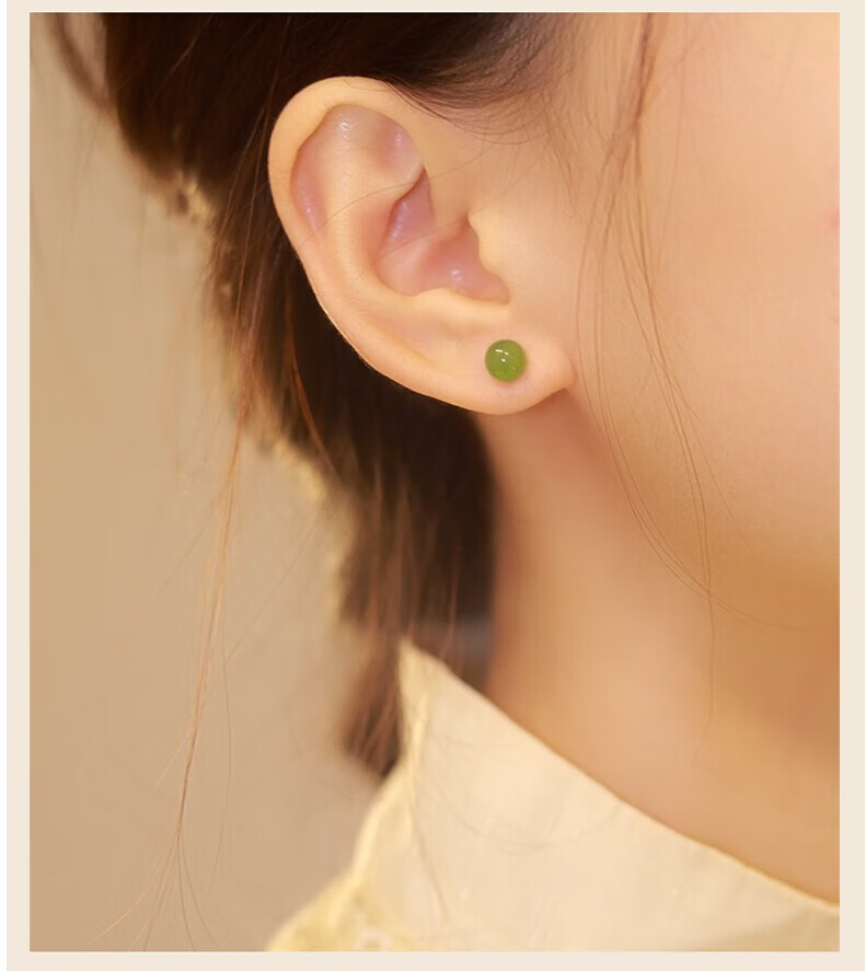 Xiangwan ear piercing, retro jade, antique silver earrings, women's fashion jewelry, earrings, female earrings, birthday gift for girlfriend, earrings 6mm