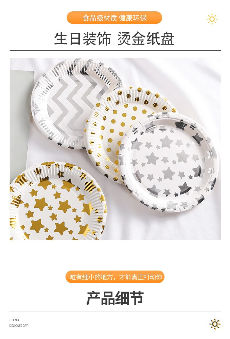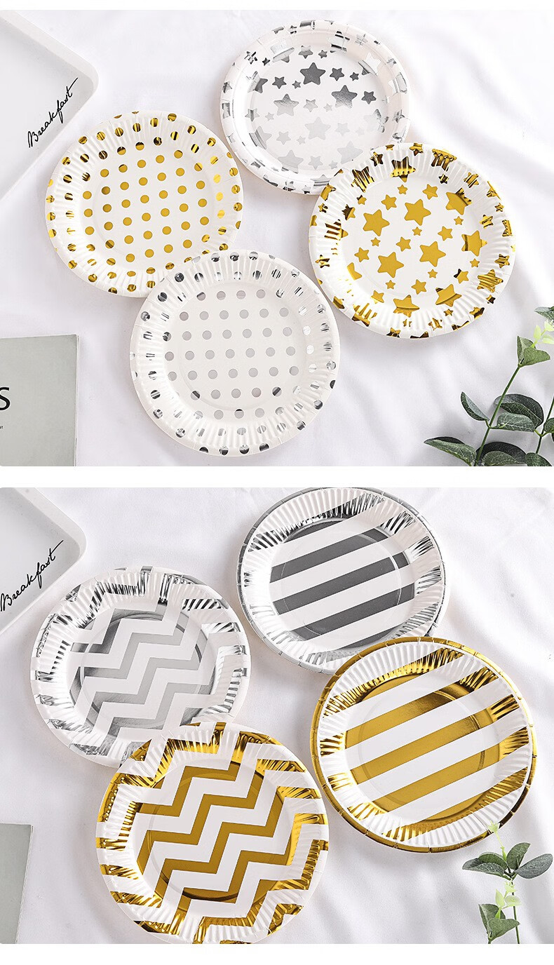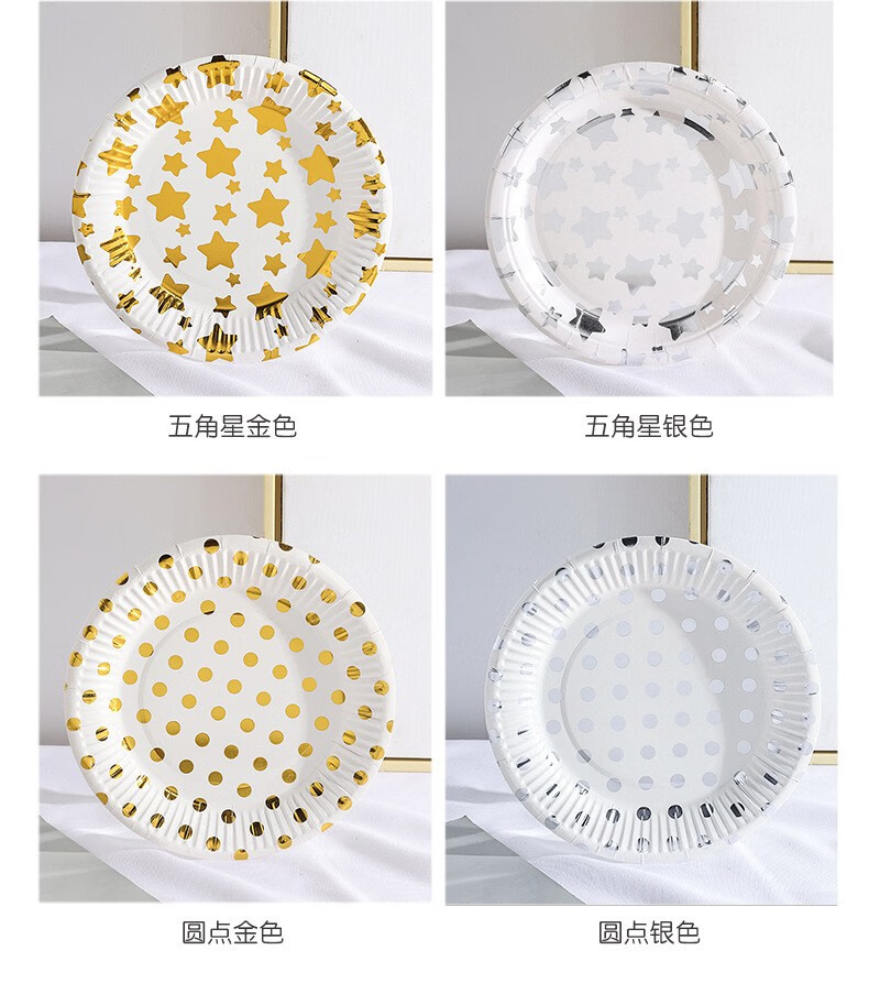 XUNIAN children's birthday party disposable plate picnic plate cake plate large paper plate dessert table decoration tableware 18*18cm golden five-pointed star 10 pieces