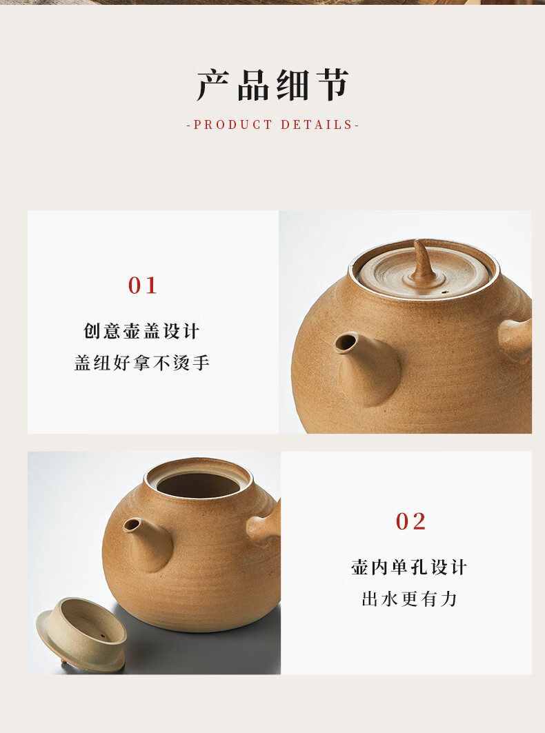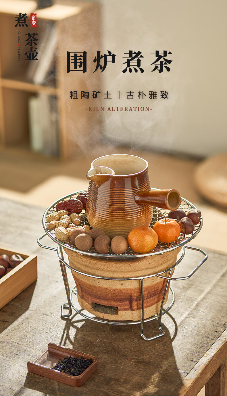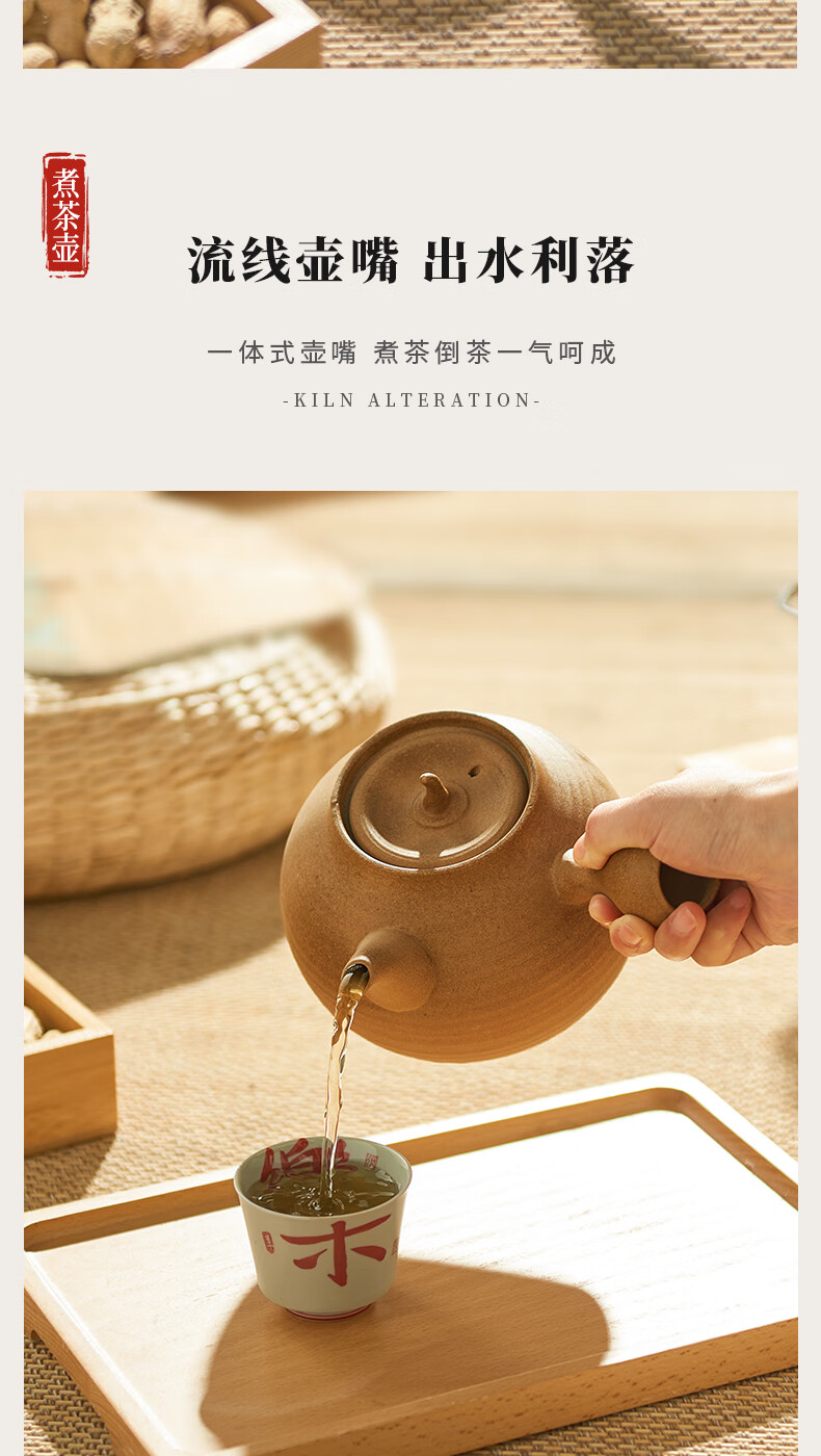 Yihutea (YIHUTEA) stove-cooked teapot, ceramic kettle, kiln-changing teapot, coarse ceramic teapot, household outdoor kettle, heat-resistant kettle, wood-burning four-season side handle kettle 850ml