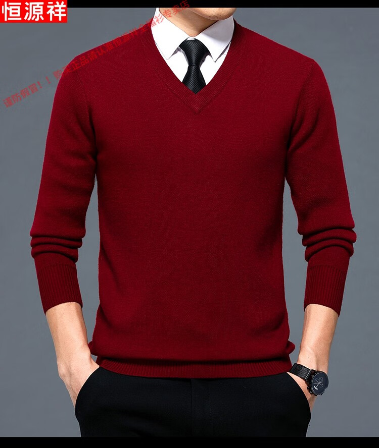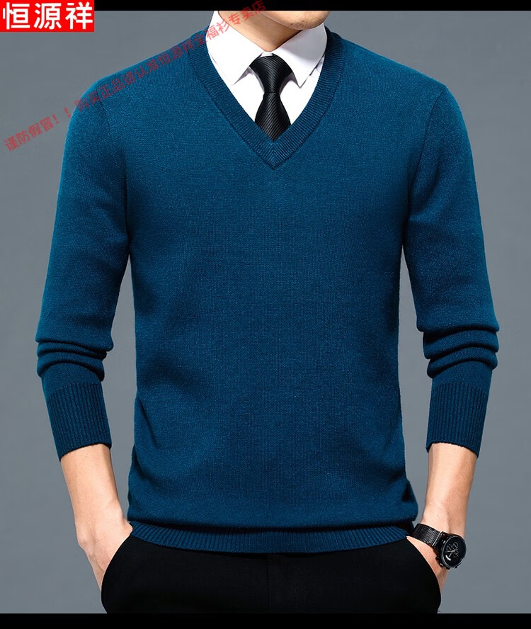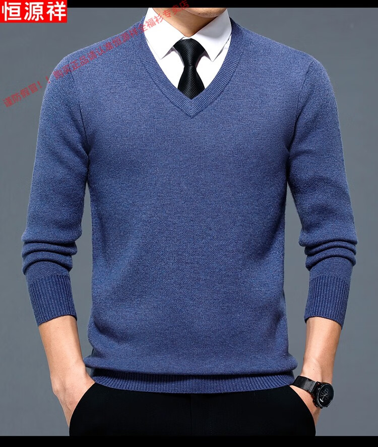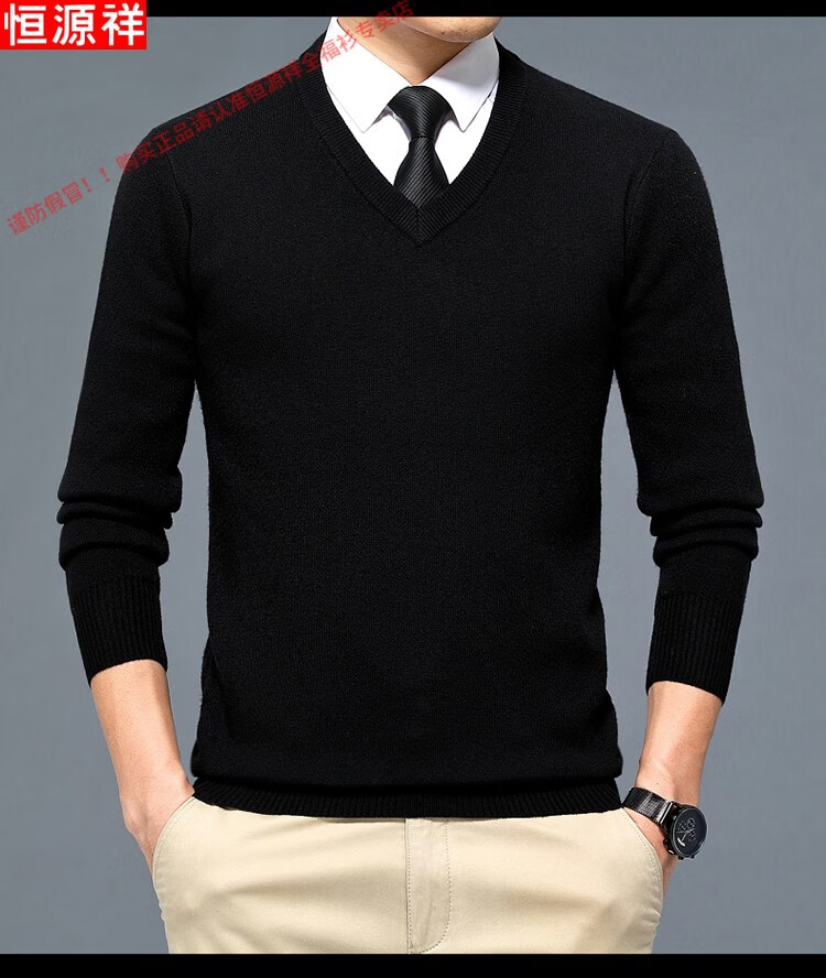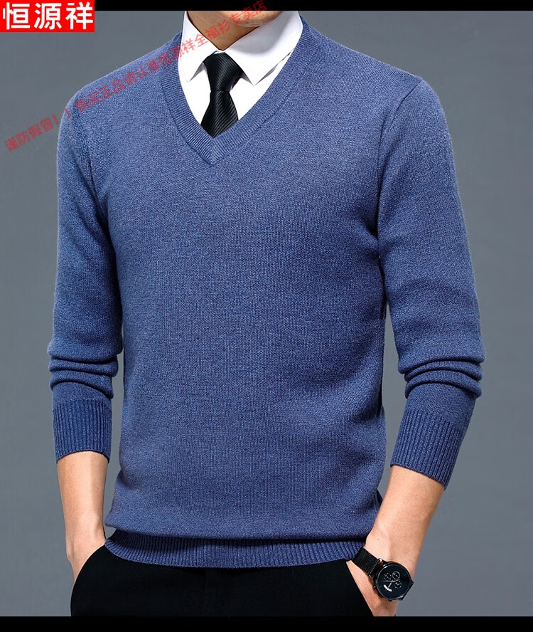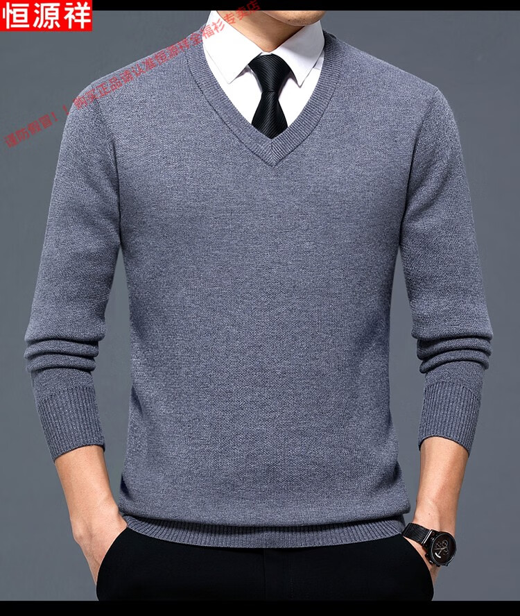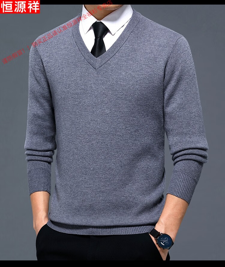 Hengyuanxiang wool fleece sweater 100 non-pilling wool fleece sweater men's thick middle-aged V-neck sweater autumn and winter medium gray 601 170 yards (recommended 125-140 Jin Jin equals 0.5 kg to wear