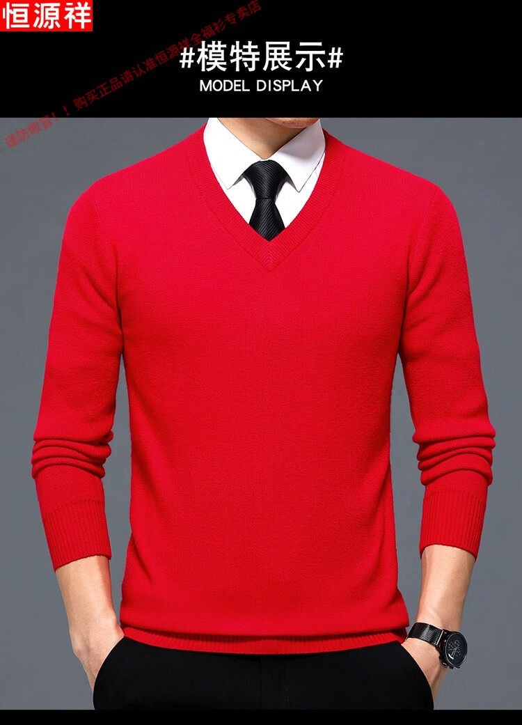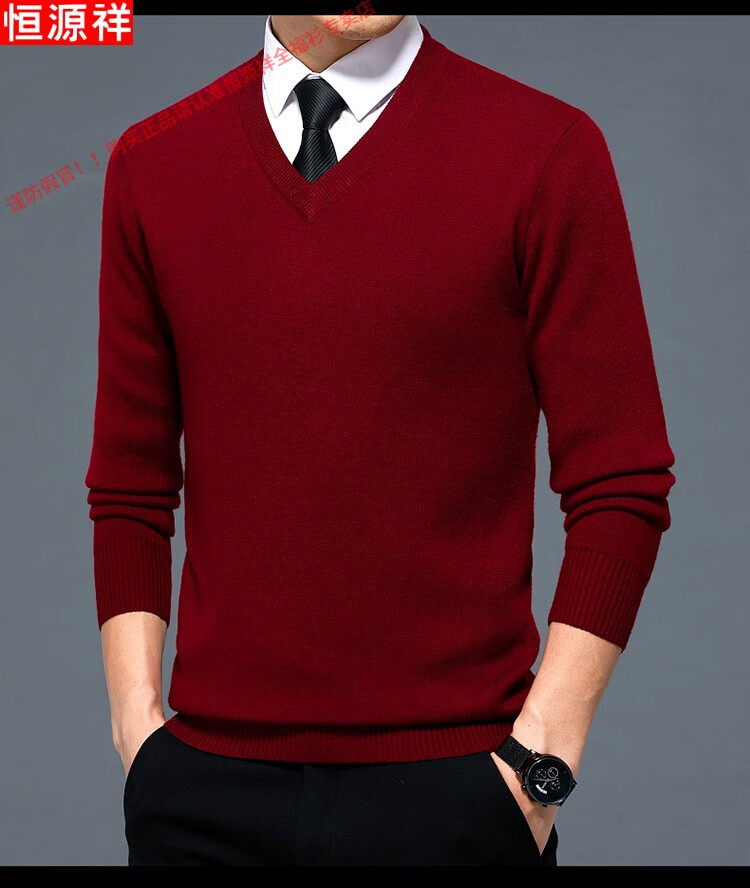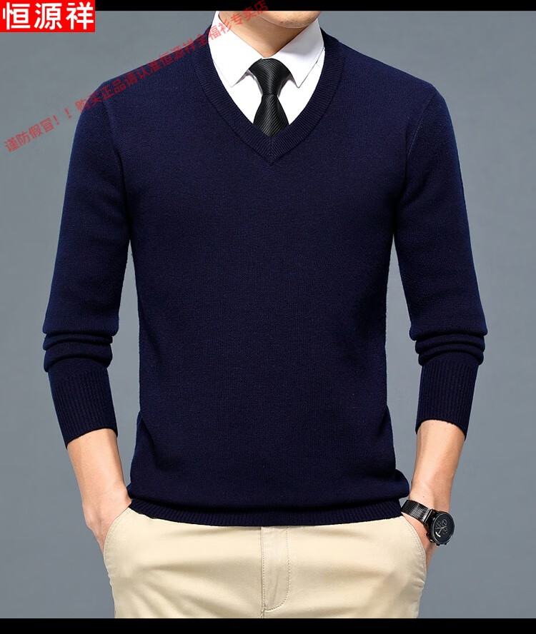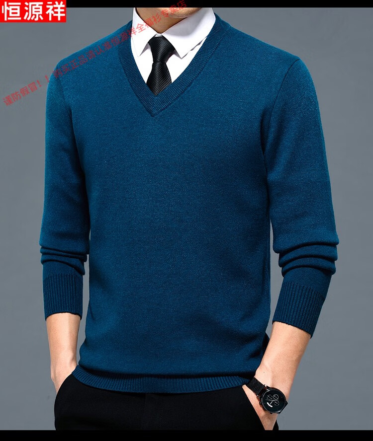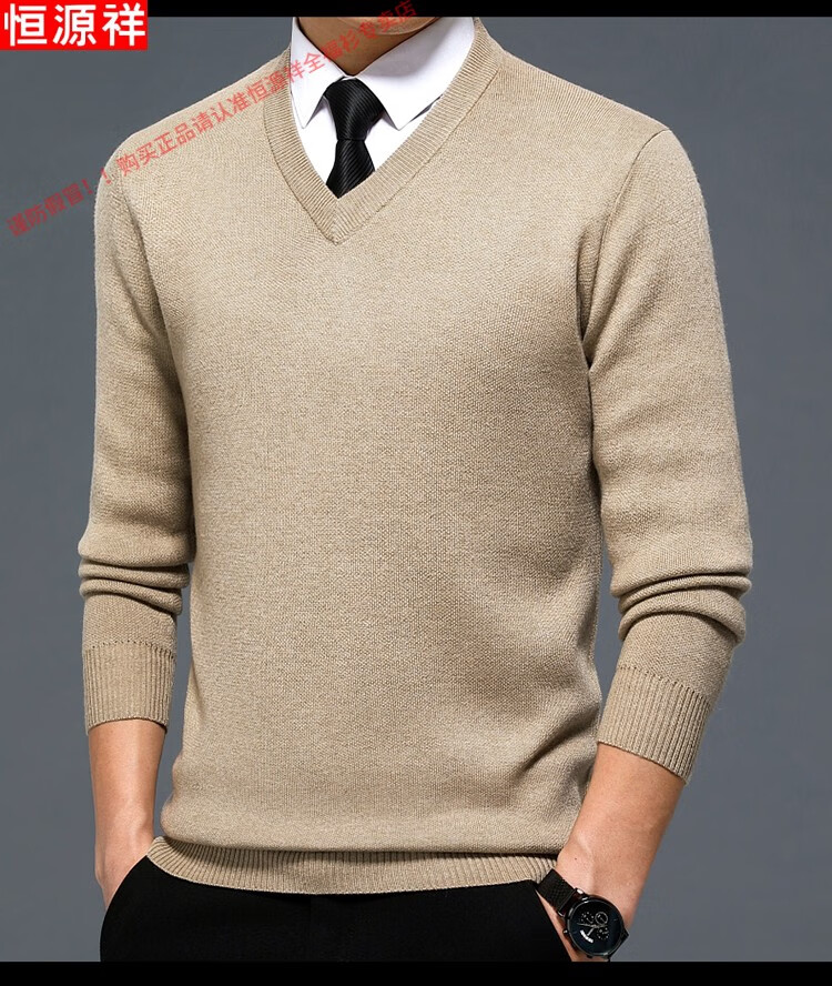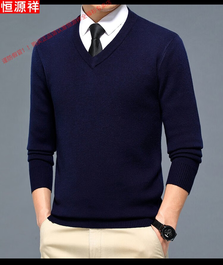 Hengyuanxiang wool fleece sweater 100 non-pilling wool fleece sweater men's thick middle-aged V-neck sweater autumn and winter medium gray 601 170 yards (recommended 125-140 Jin Jin equals 0.5 kg to wear