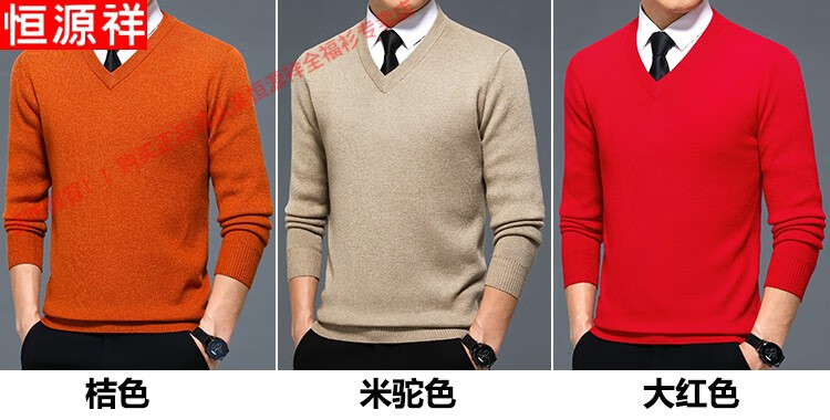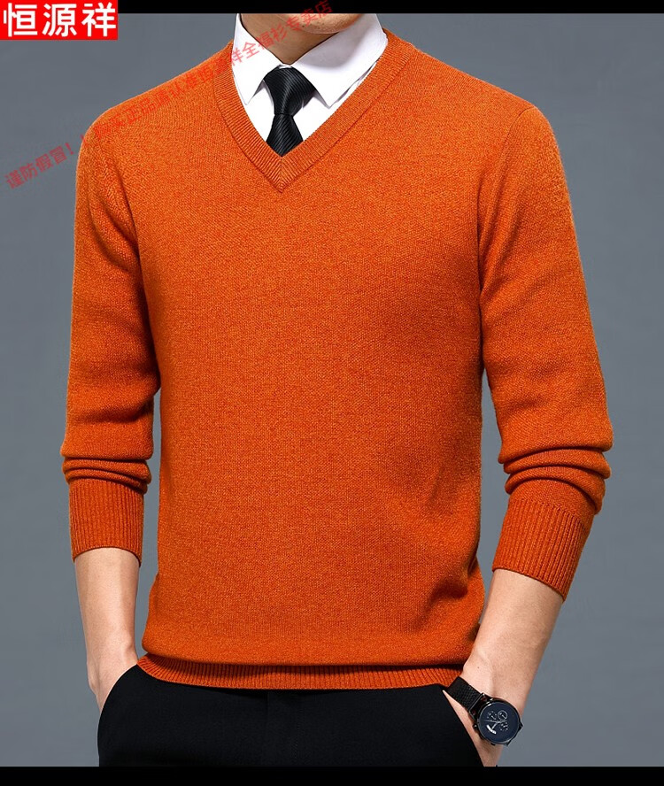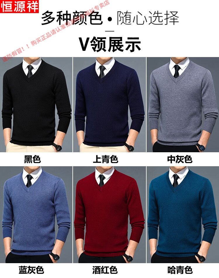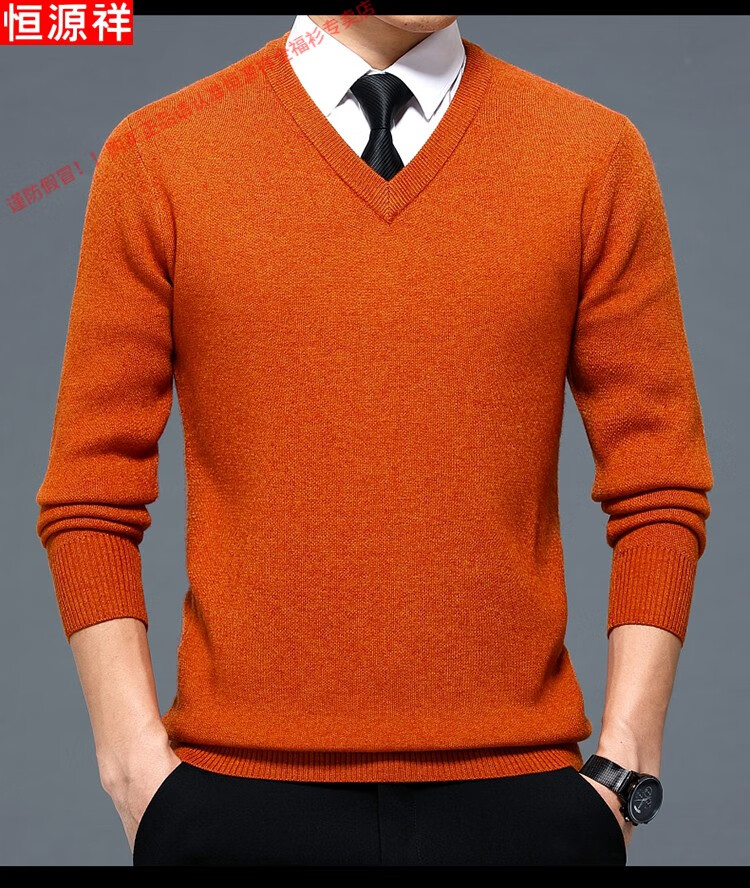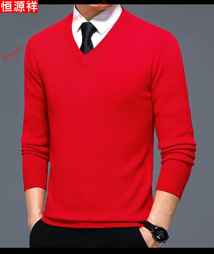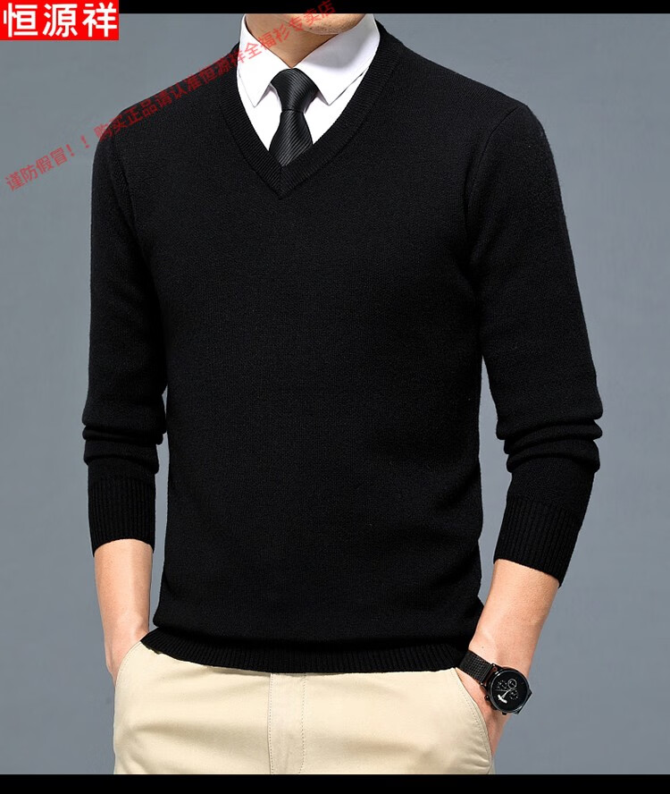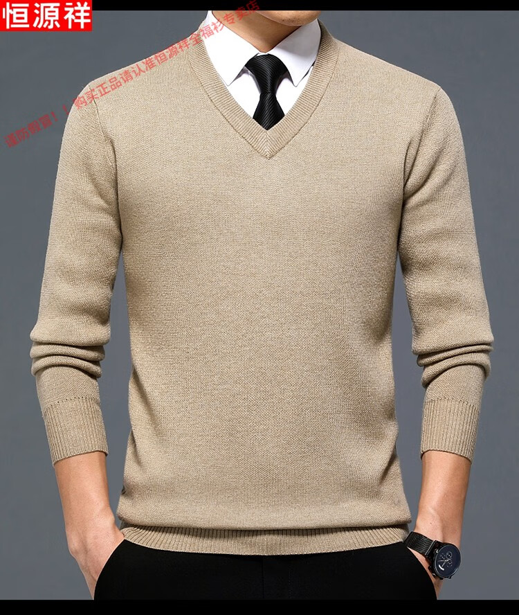 Hengyuanxiang wool fleece sweater 100 non-pilling wool fleece sweater men's thick middle-aged V-neck sweater autumn and winter medium gray 601 170 yards (recommended 125-140 Jin Jin equals 0.5 kg to wear