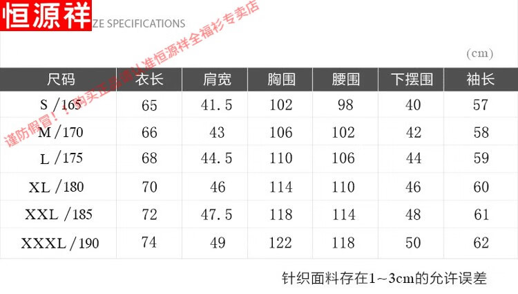 China (cm) 165 / 88-90 170 / 96-98 175 / 108-110 180 / 118-122 185 / 126-130